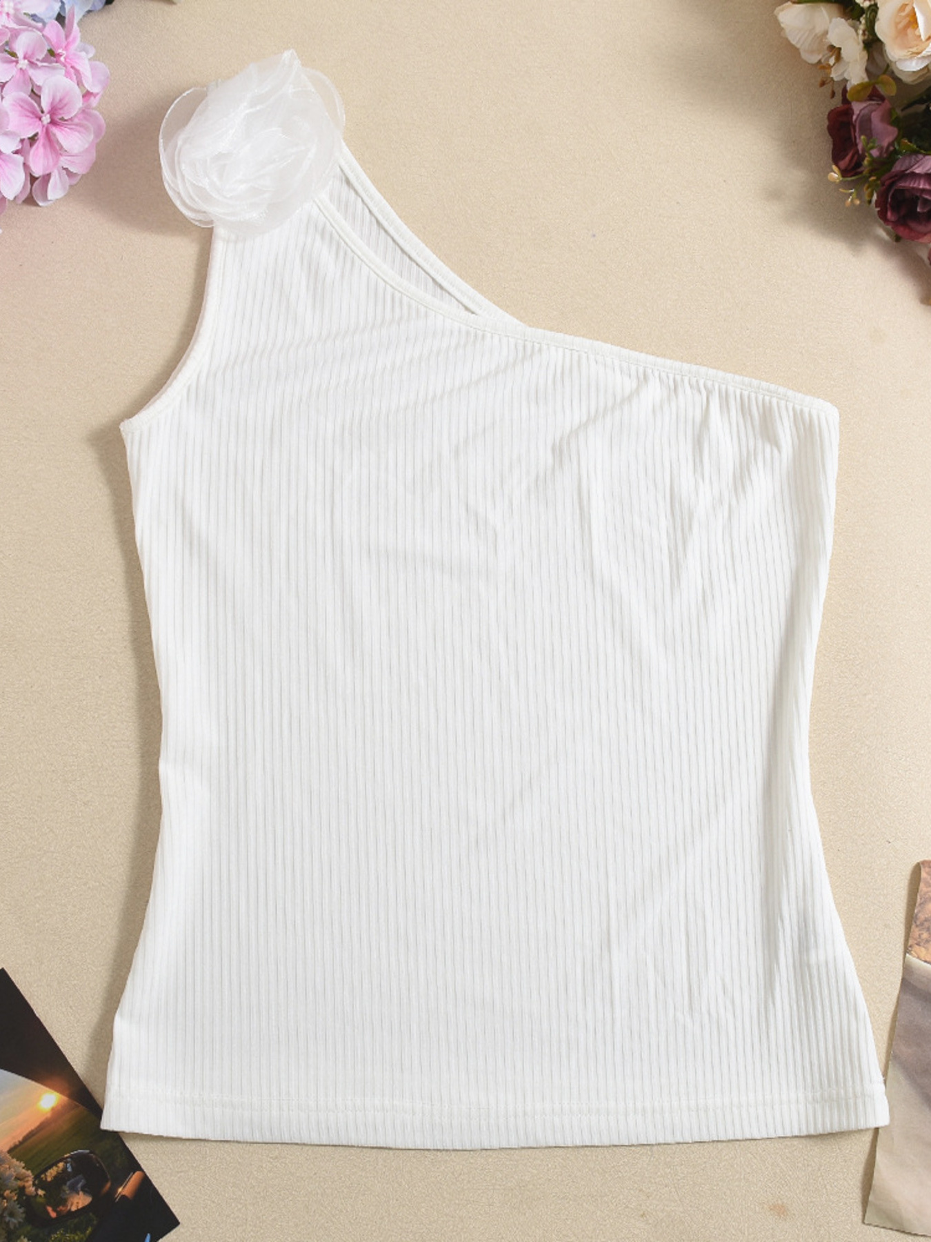 Flower Ribbed Single Shoulder Tank