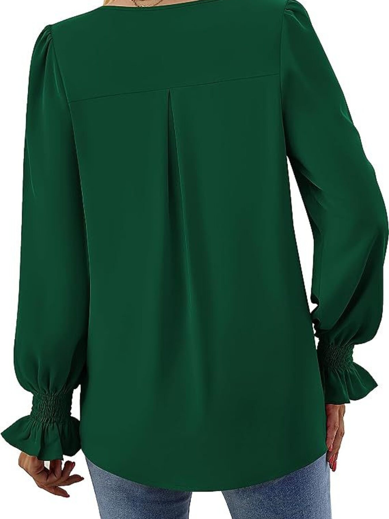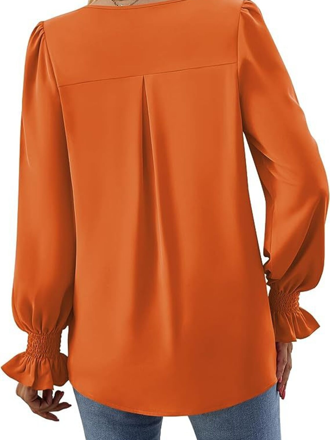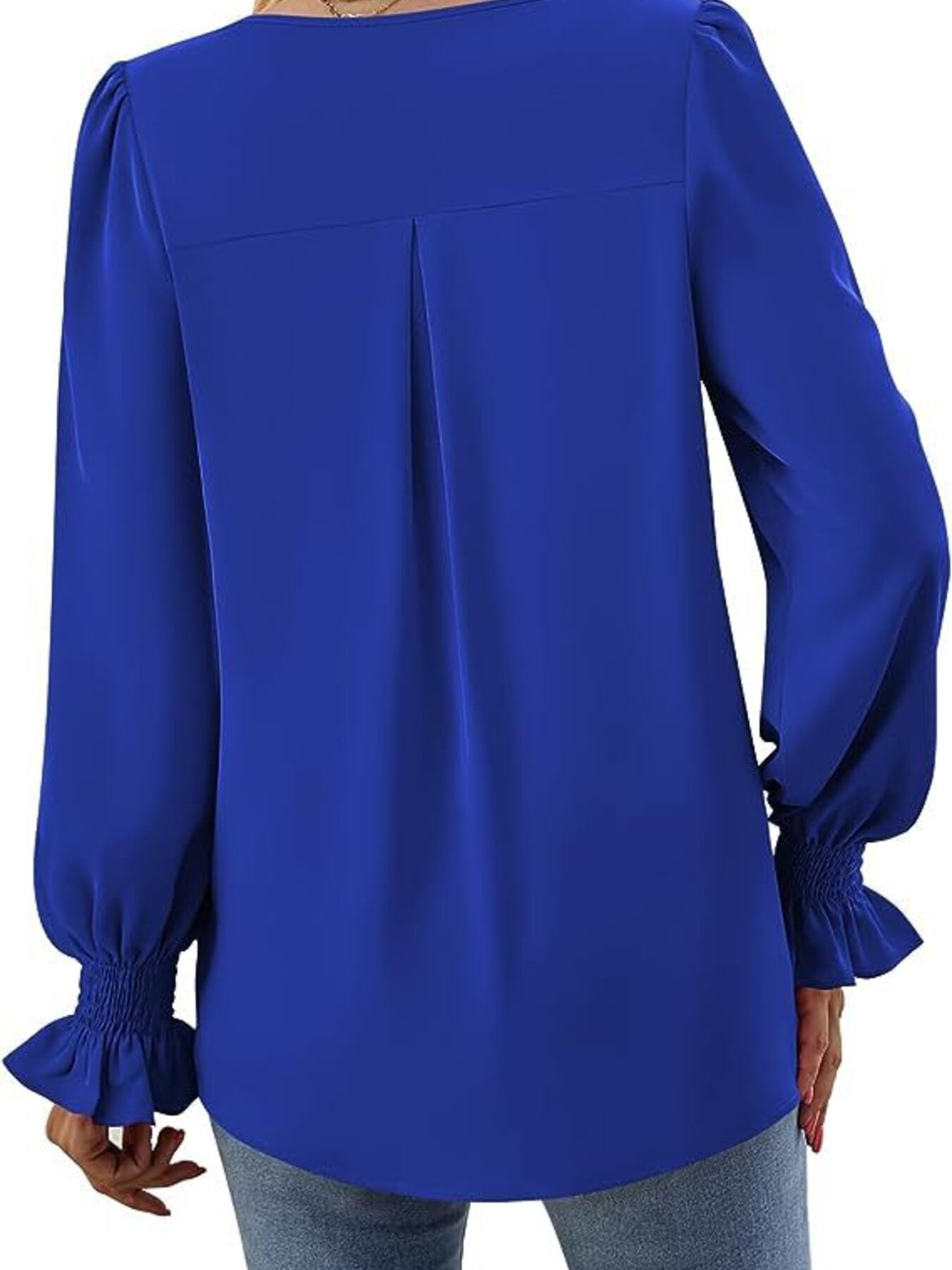 V-Neck Long Sleeve Ruffle Cuff Blouse