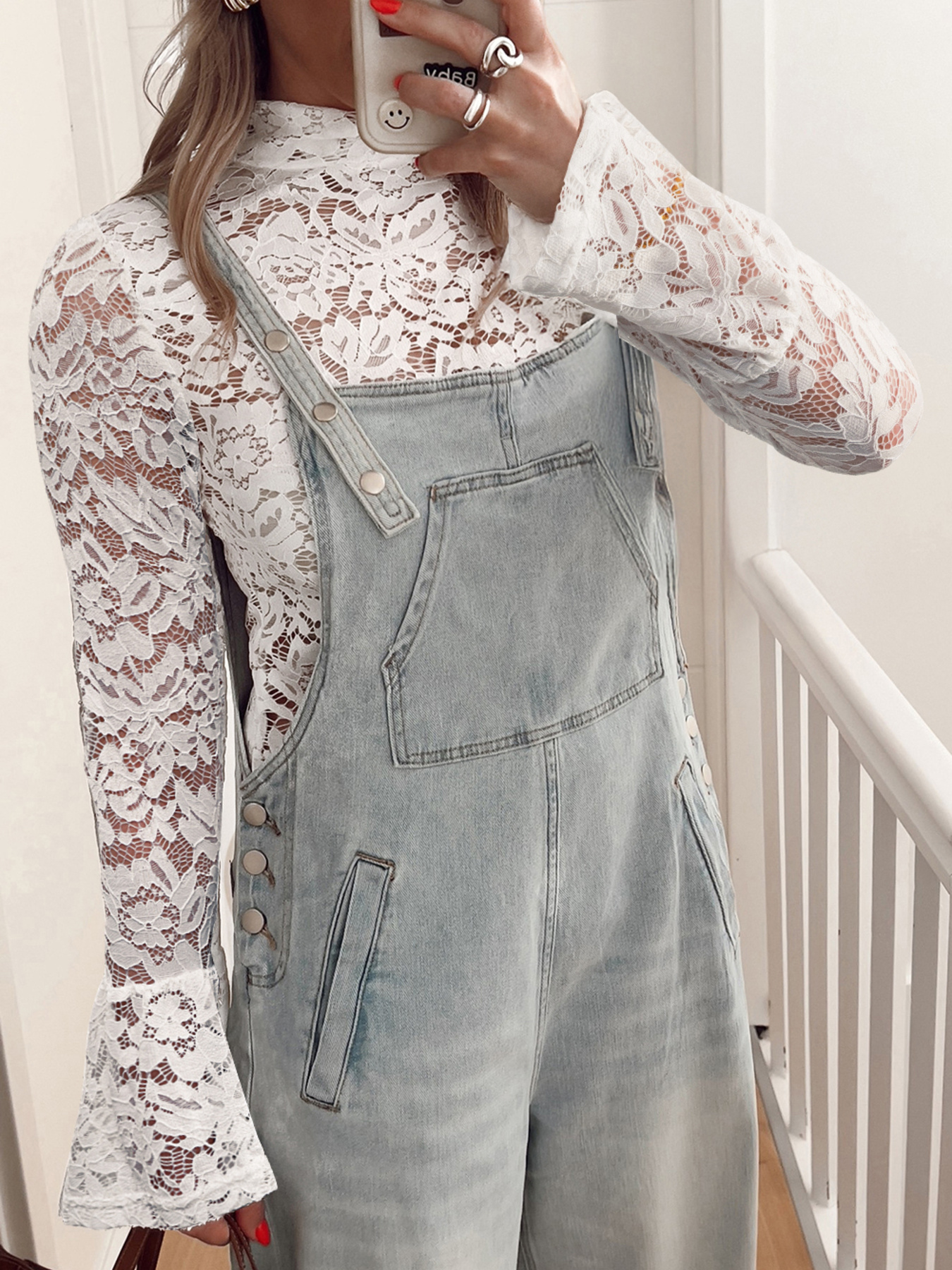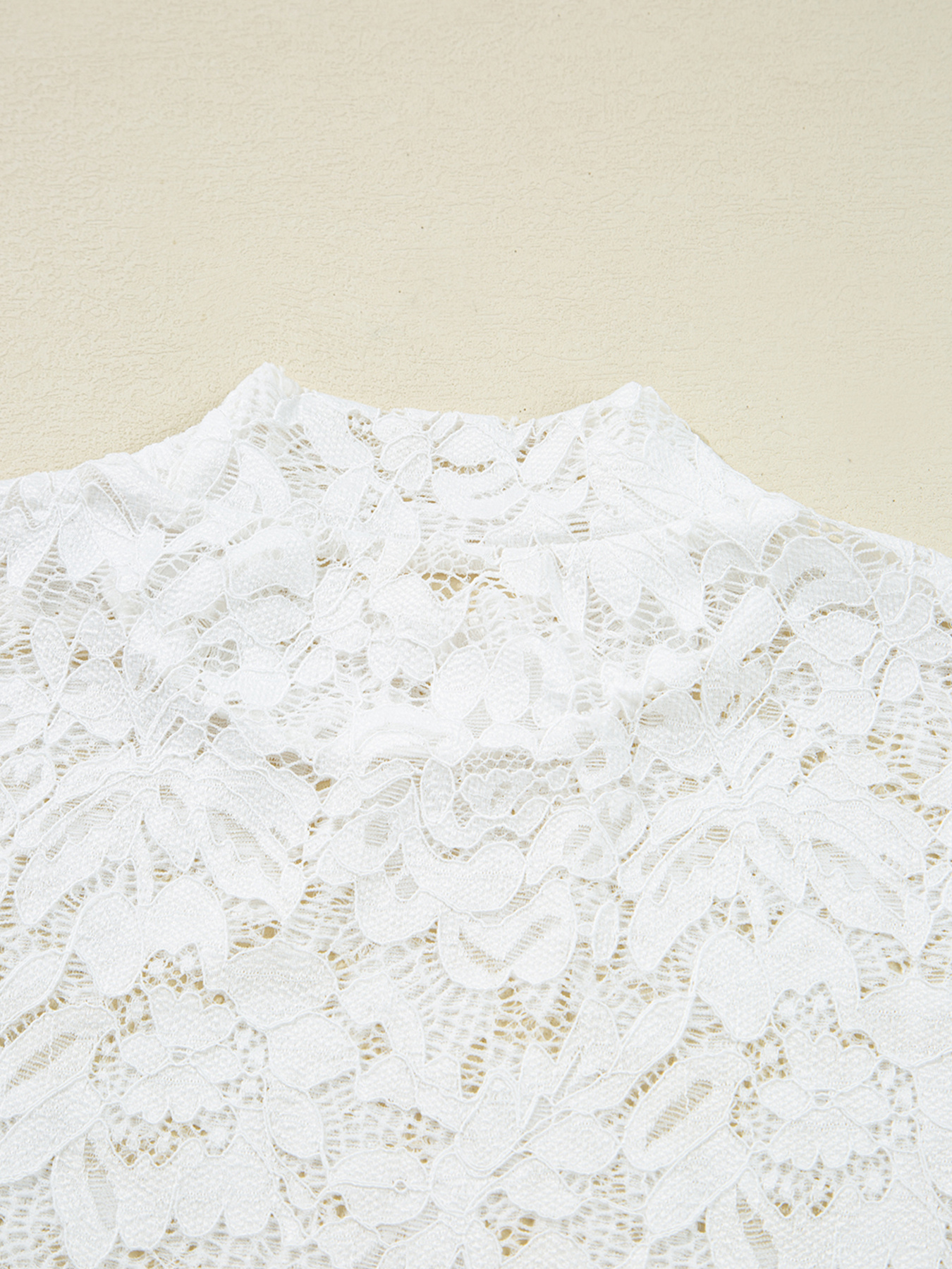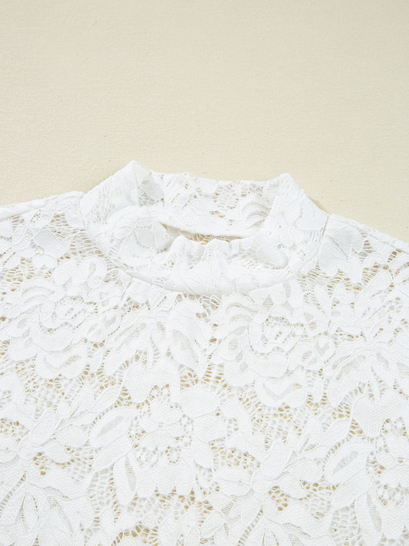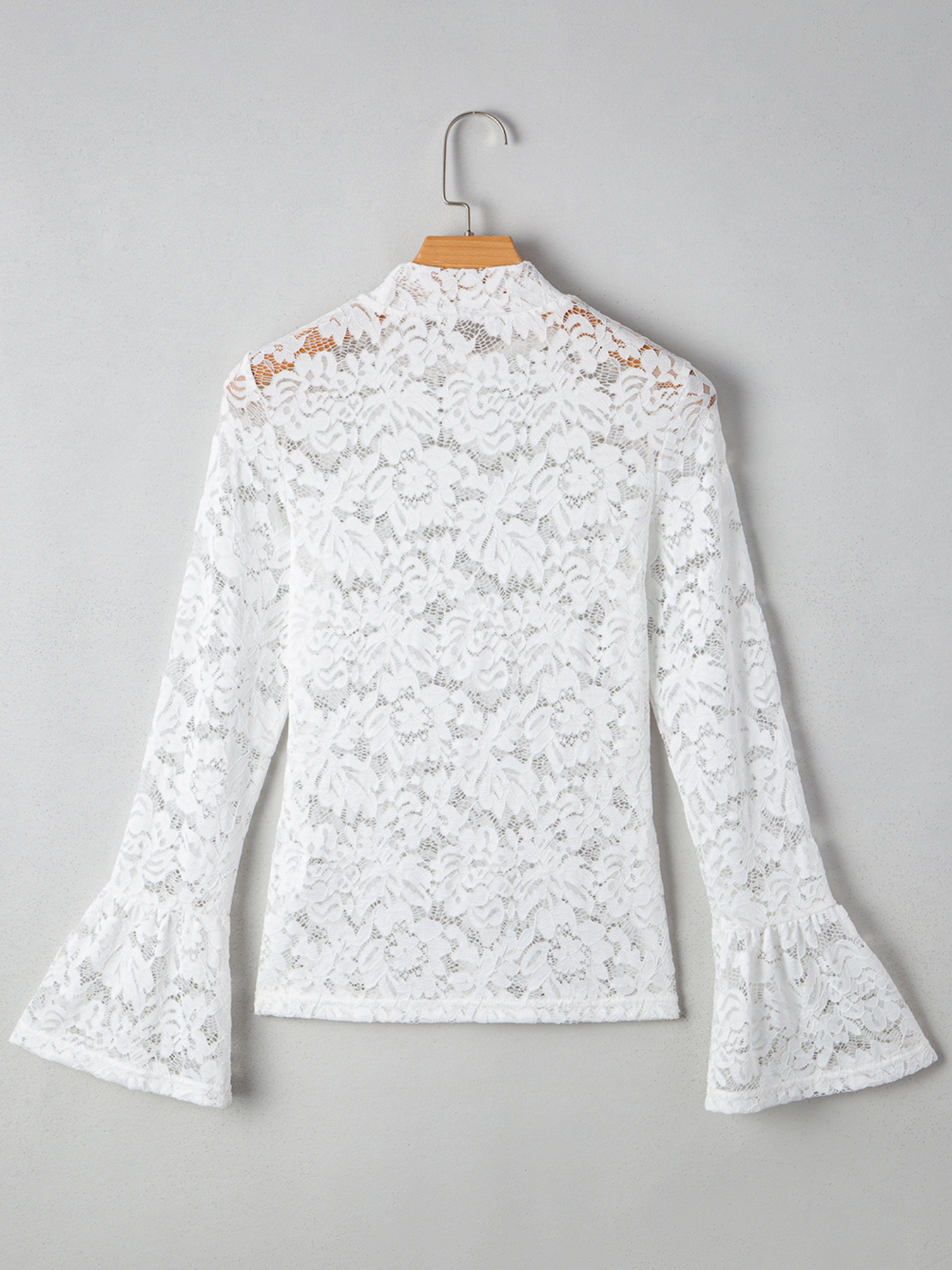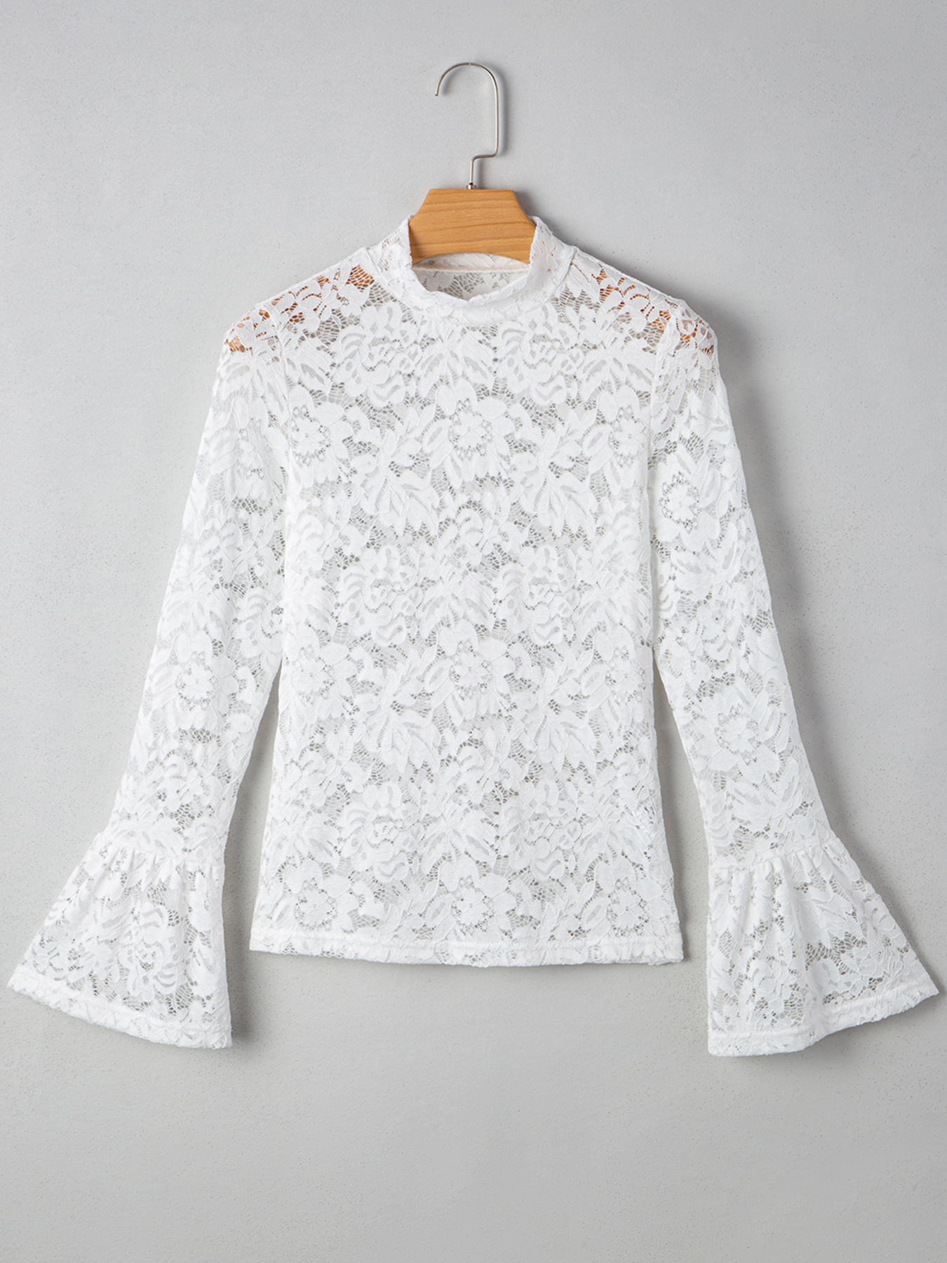 Lace Crochet Bell Sleeve Mock Neck Blouse