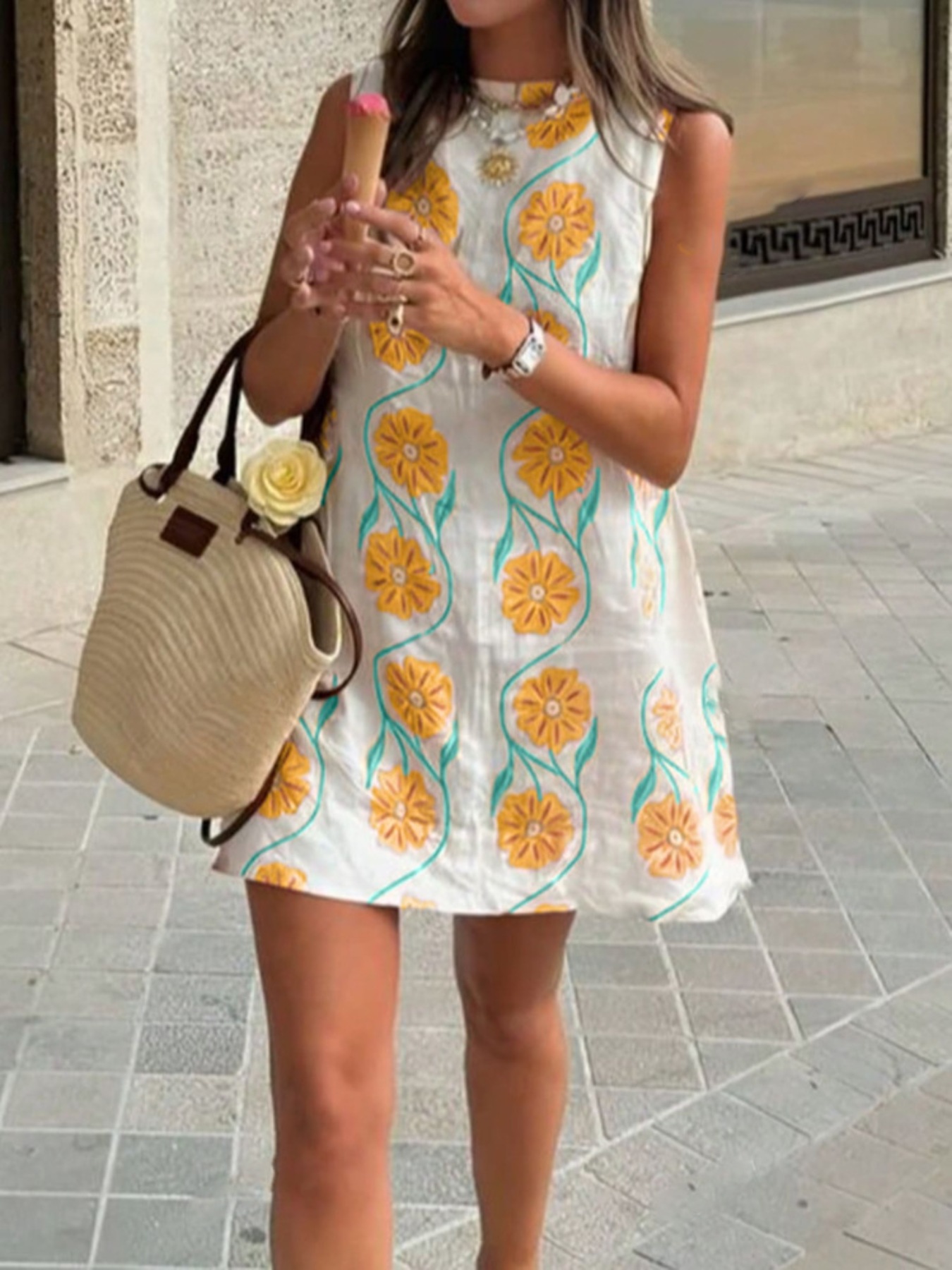 Floral Pattern Sleeveless Mini Dress