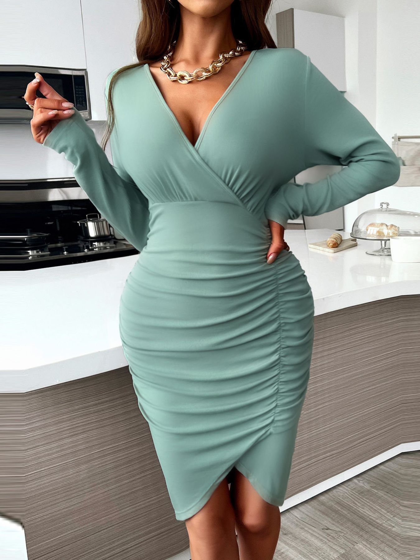 Full Size Ruched Surplice Bodycon Dress Plus Size
