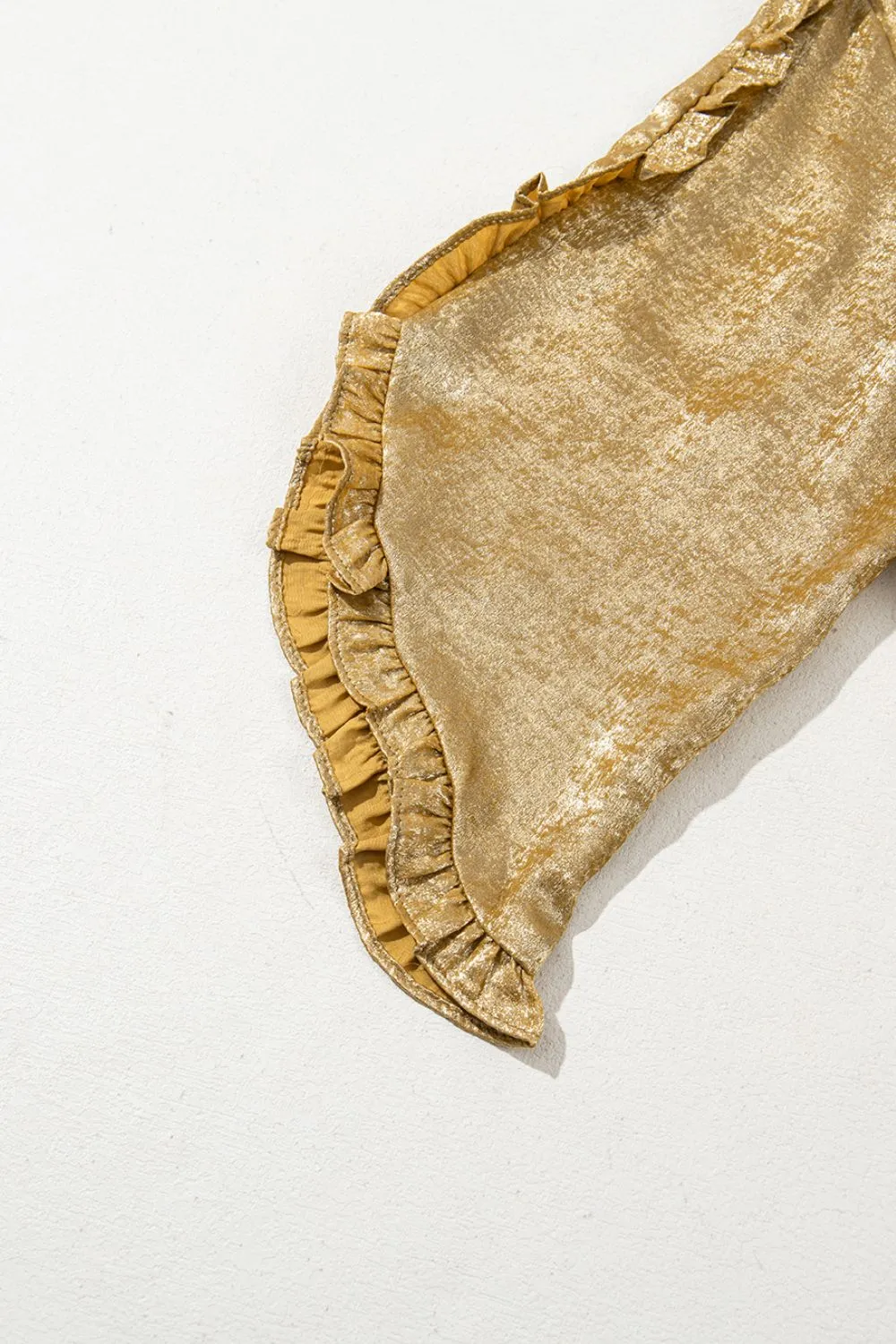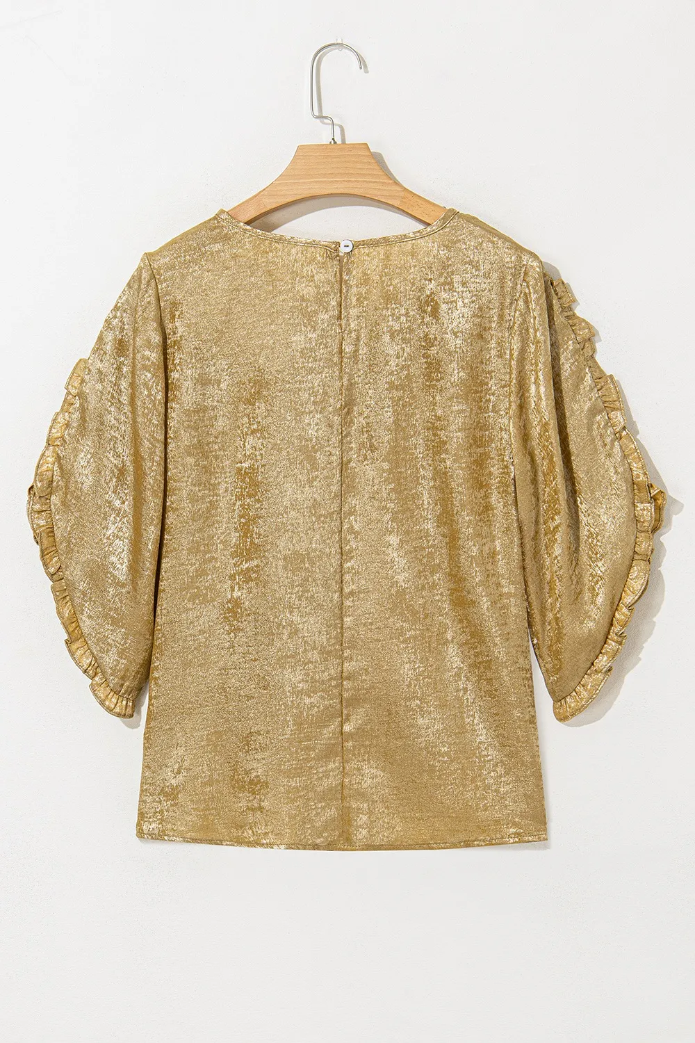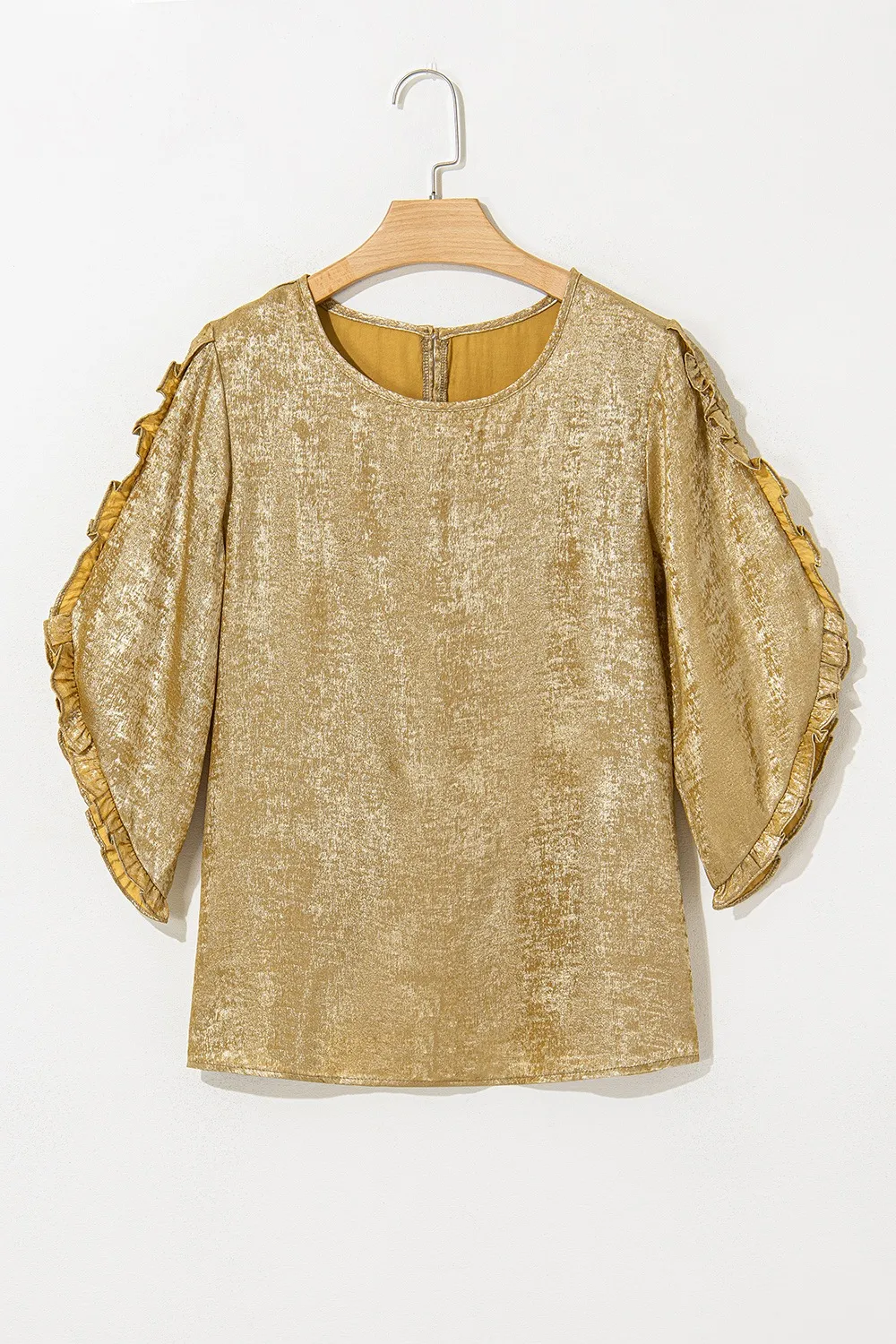 Metallic Luster Round Neck Frill 3/4 Sleeve Blouse