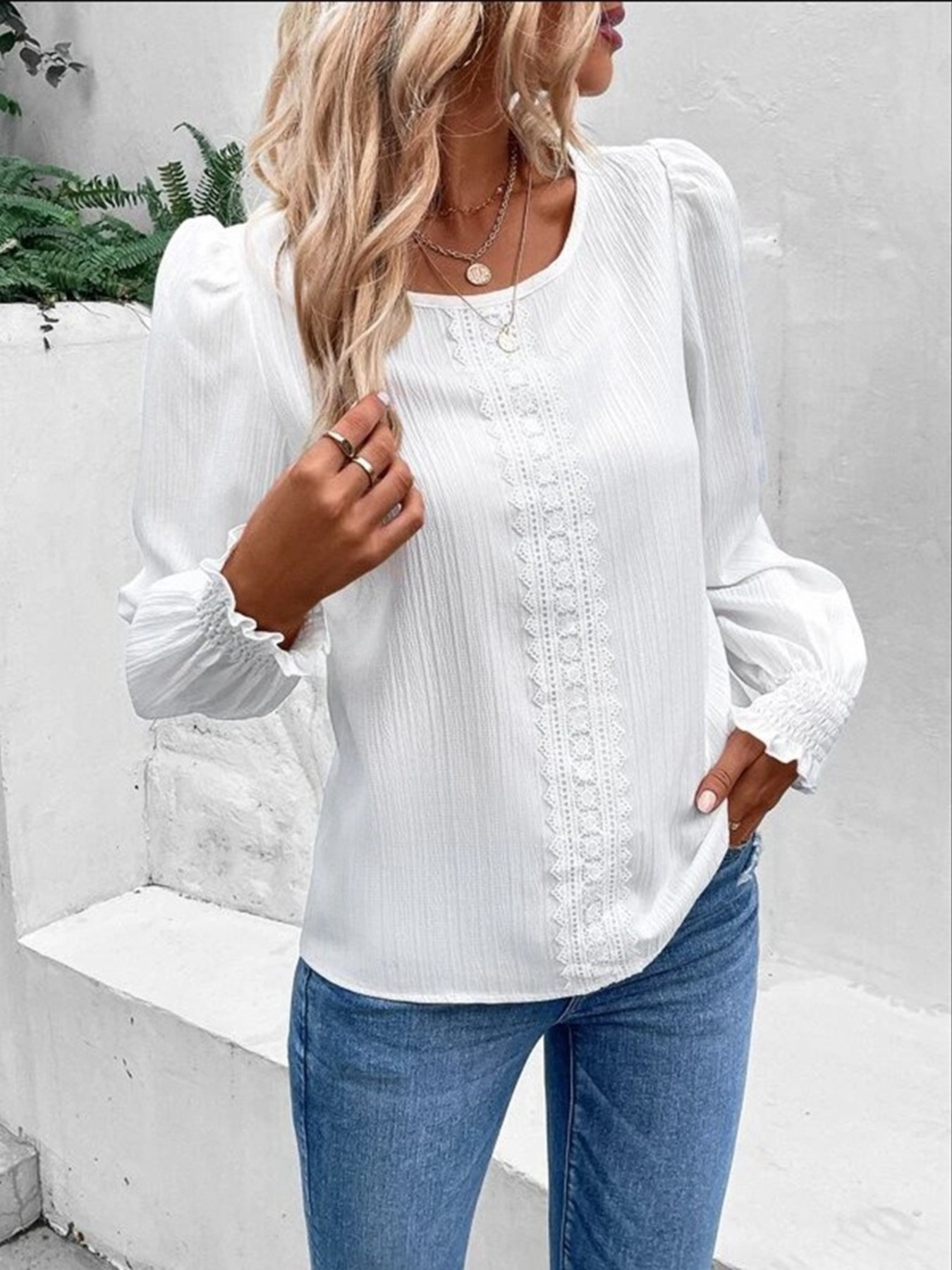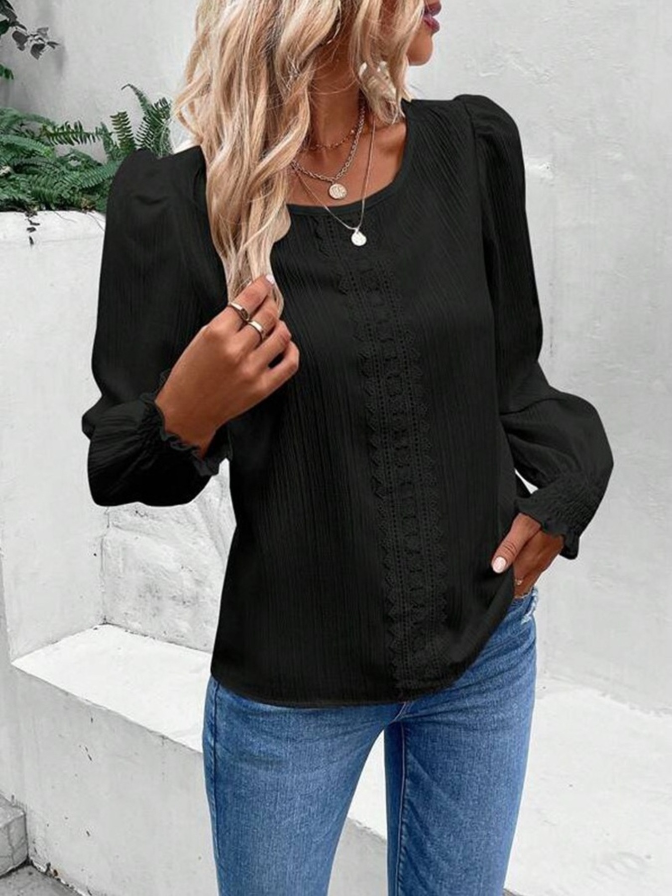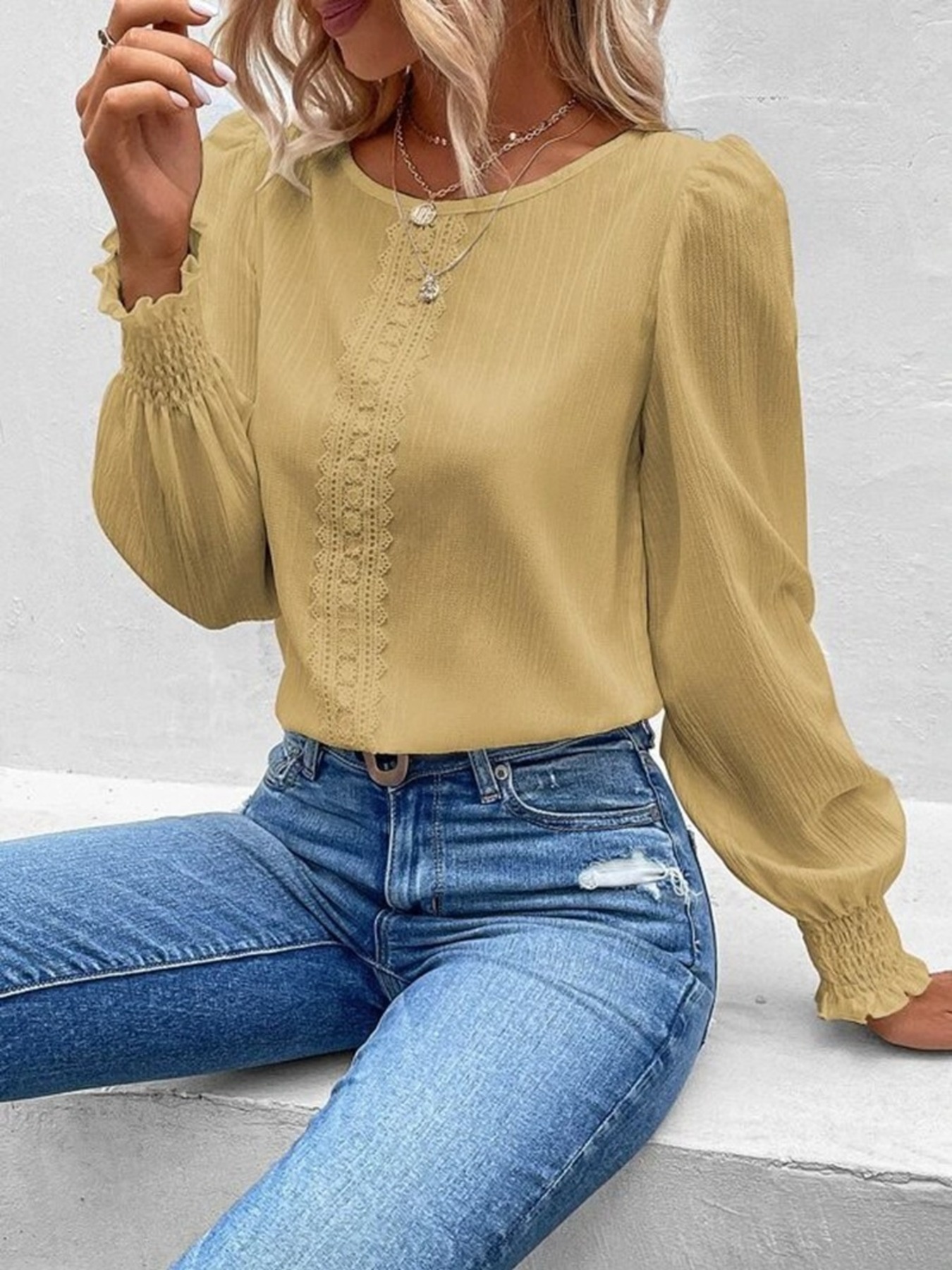 Lace Trim Long Sleeve Blouse