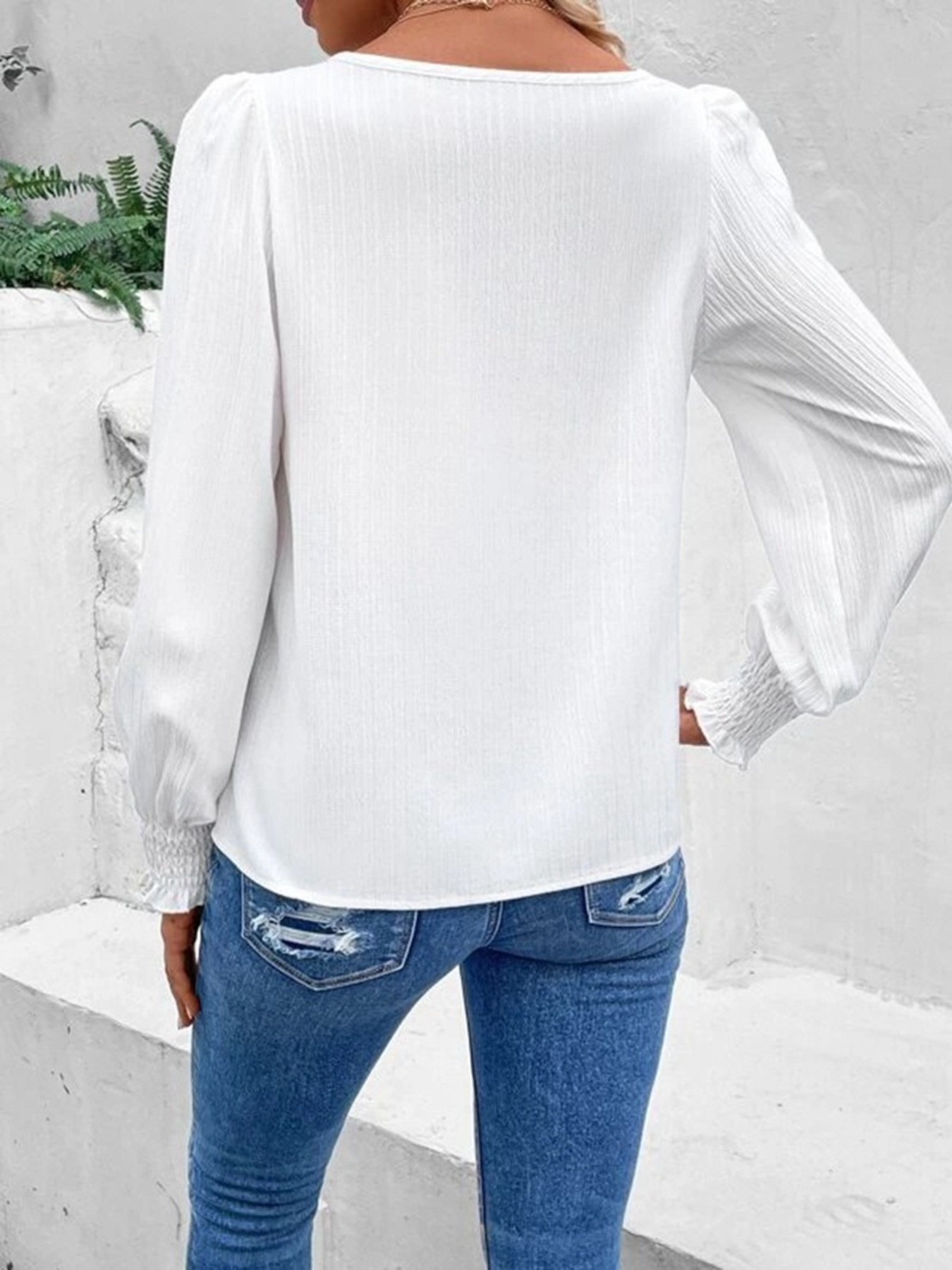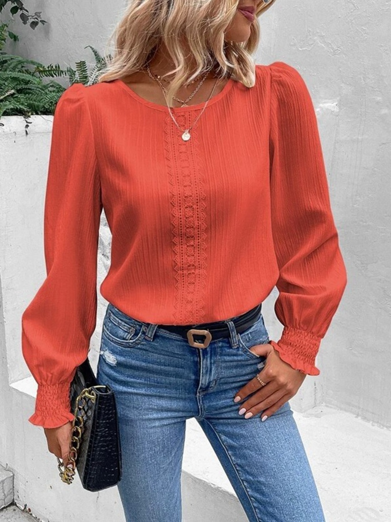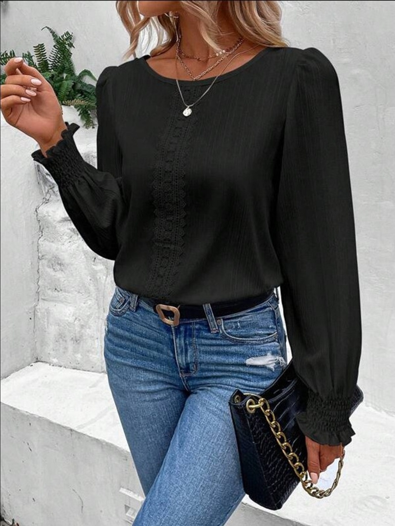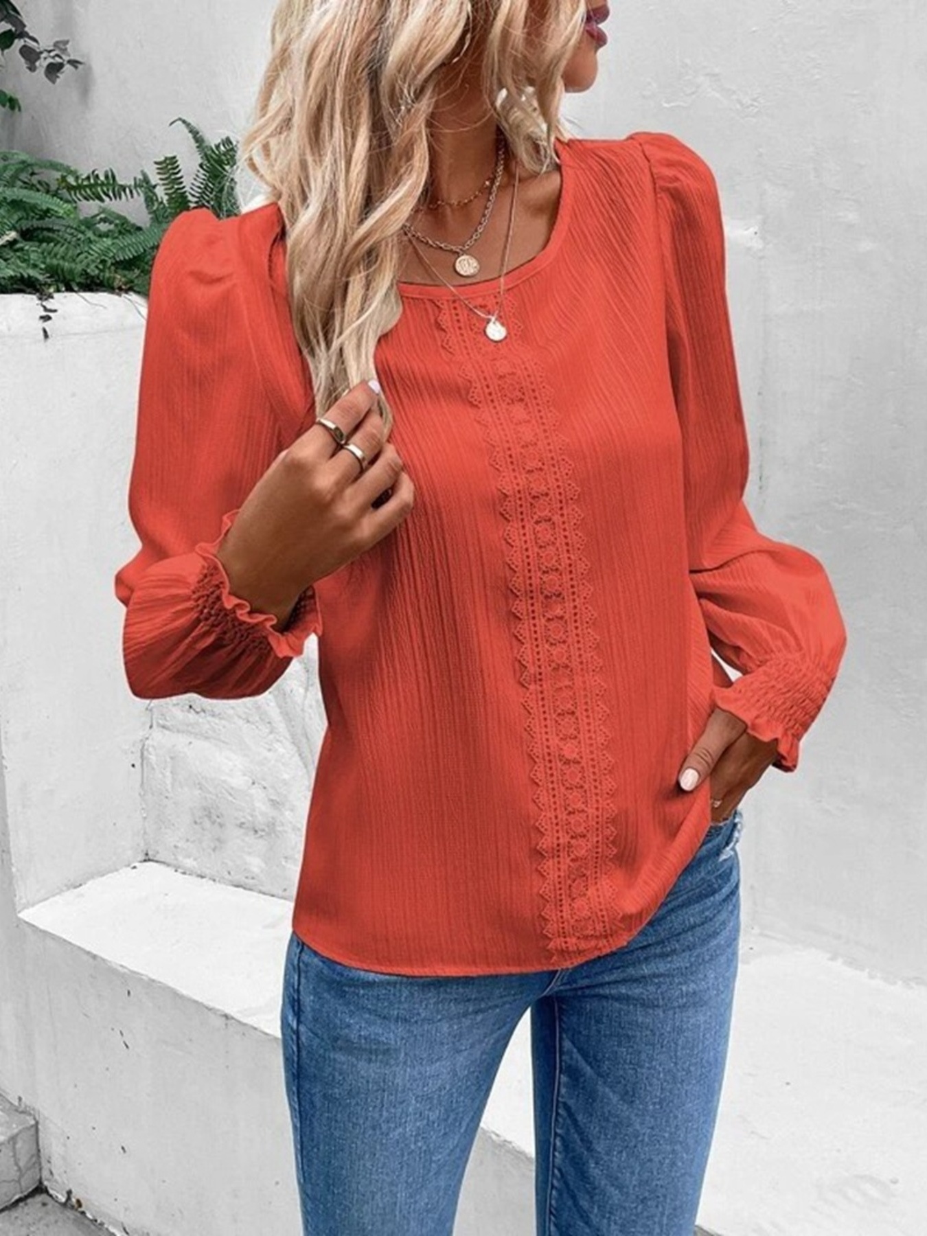 Lace Trim Long Sleeve Blouse