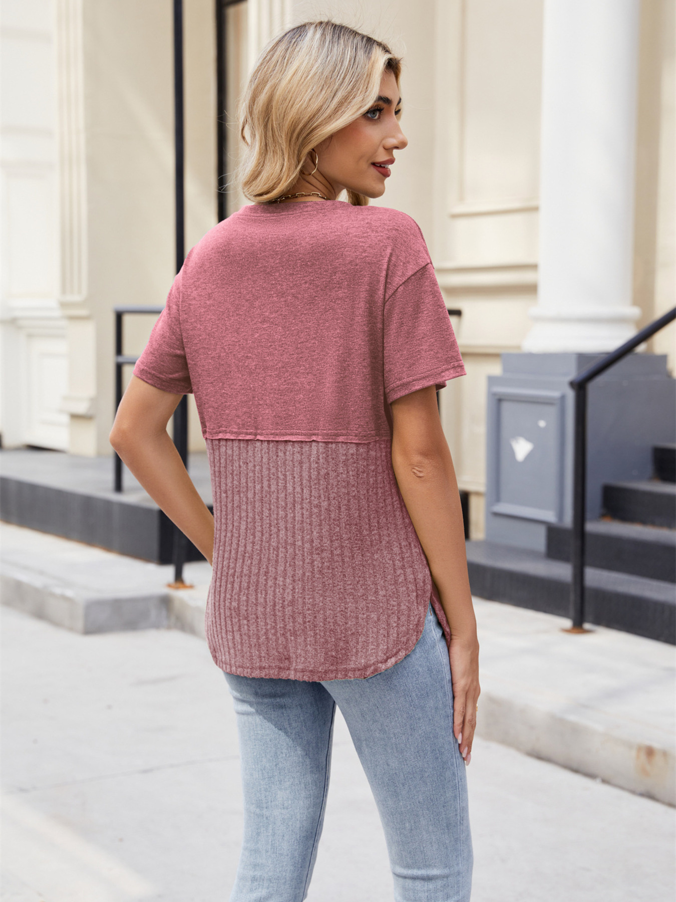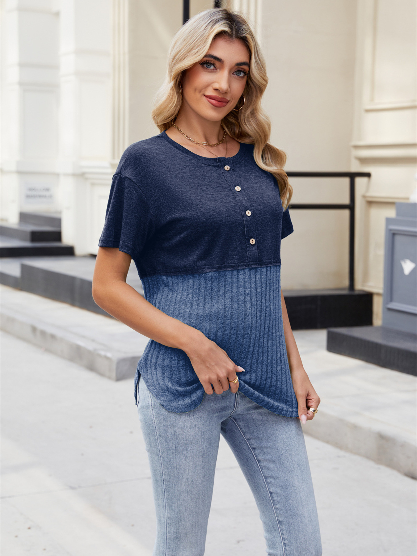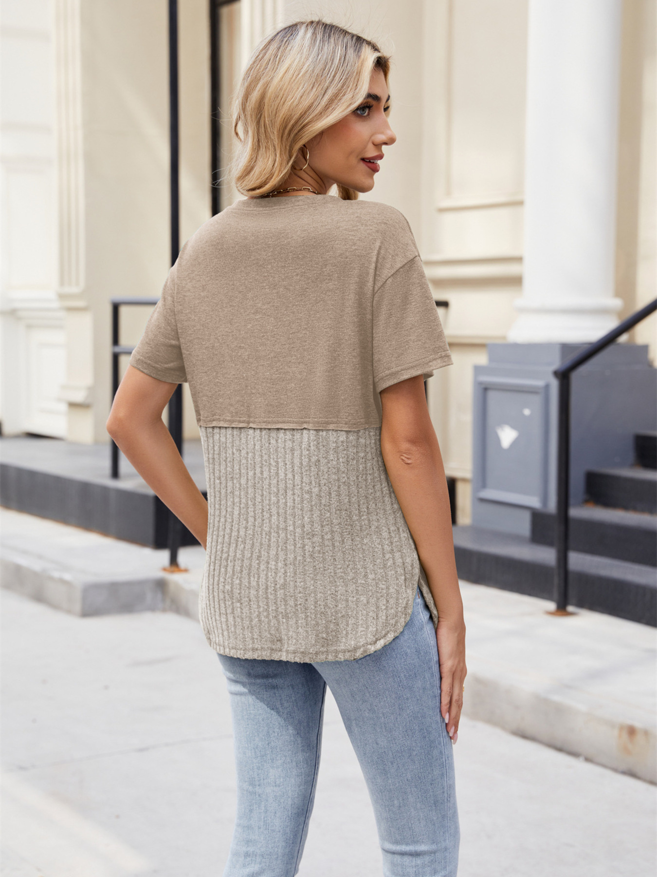 Two-Tone Short Sleeve Top