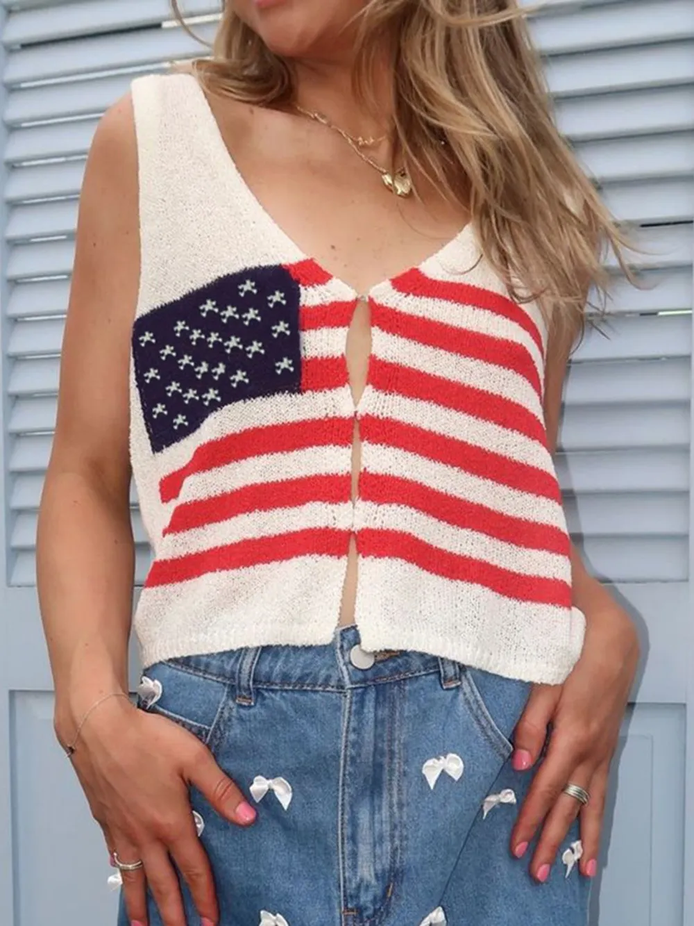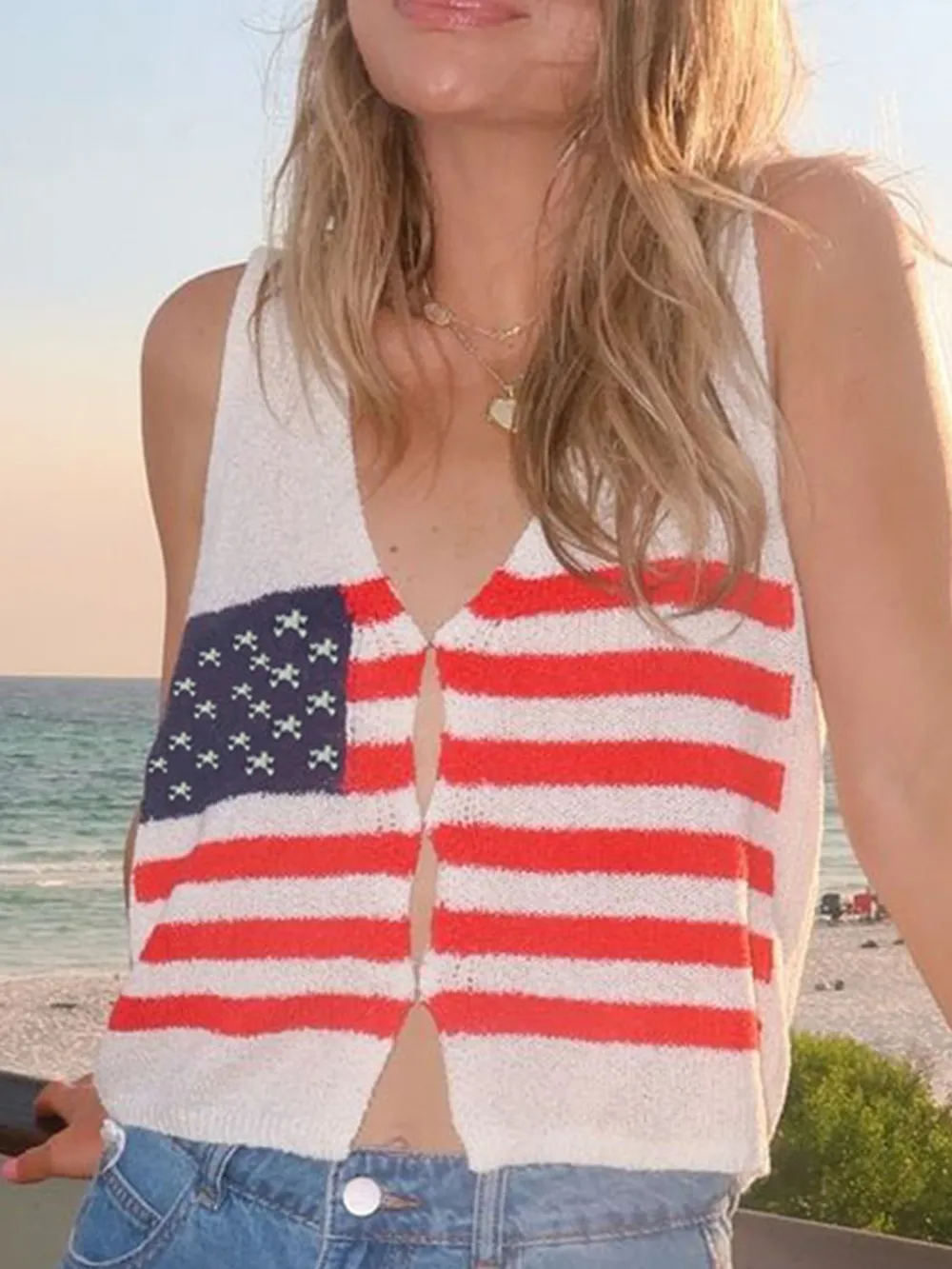 Devine Us Flag Button Front V-Neck Sweater Vest