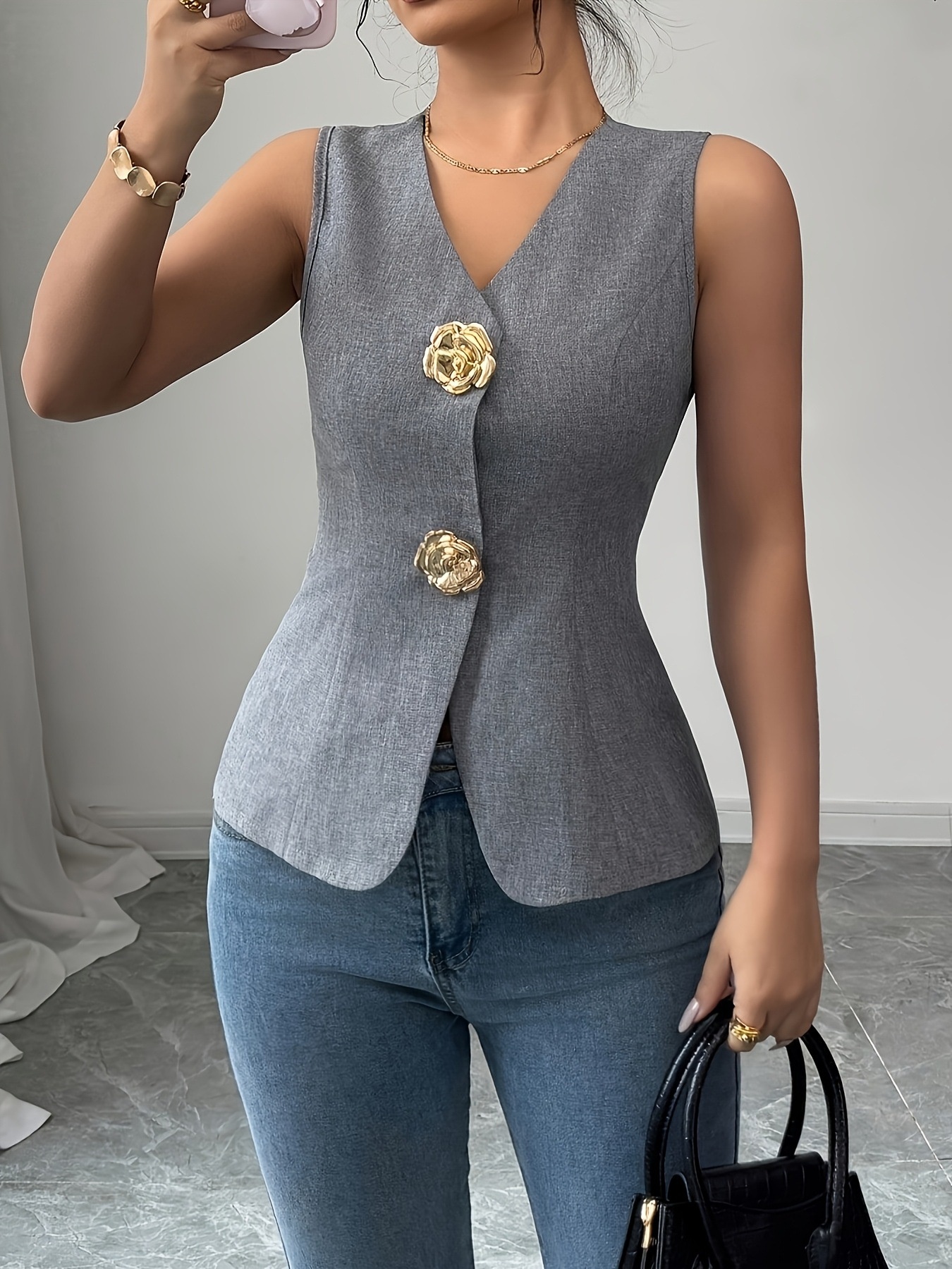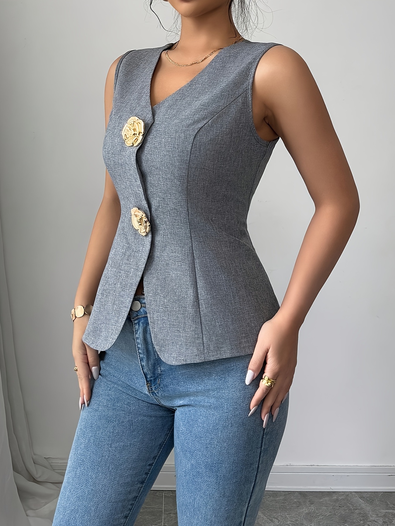 Flower Button Vest Coat