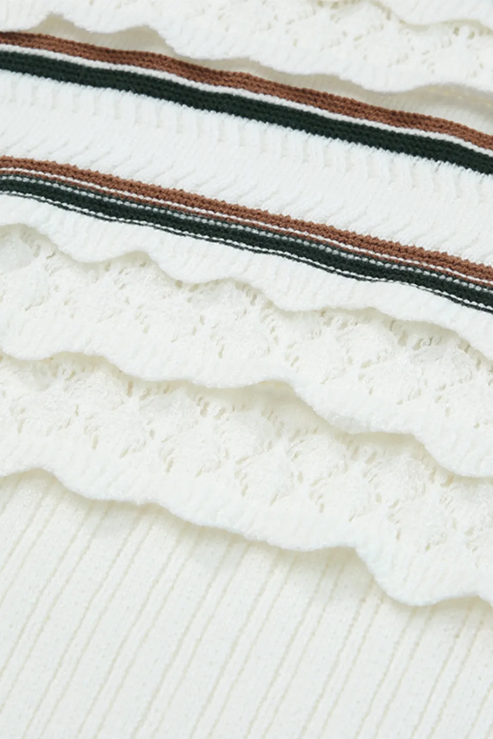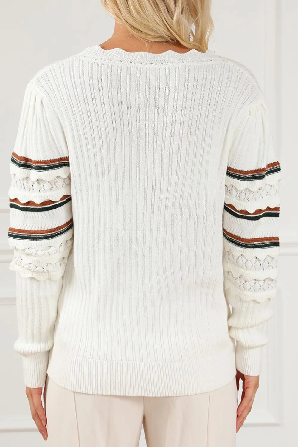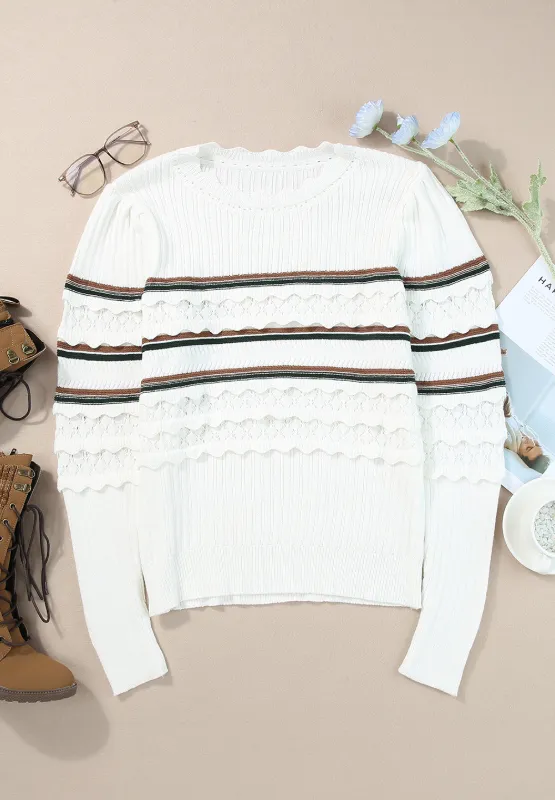 Striped Hollow Out Round Neck Long Sleeve Sweater