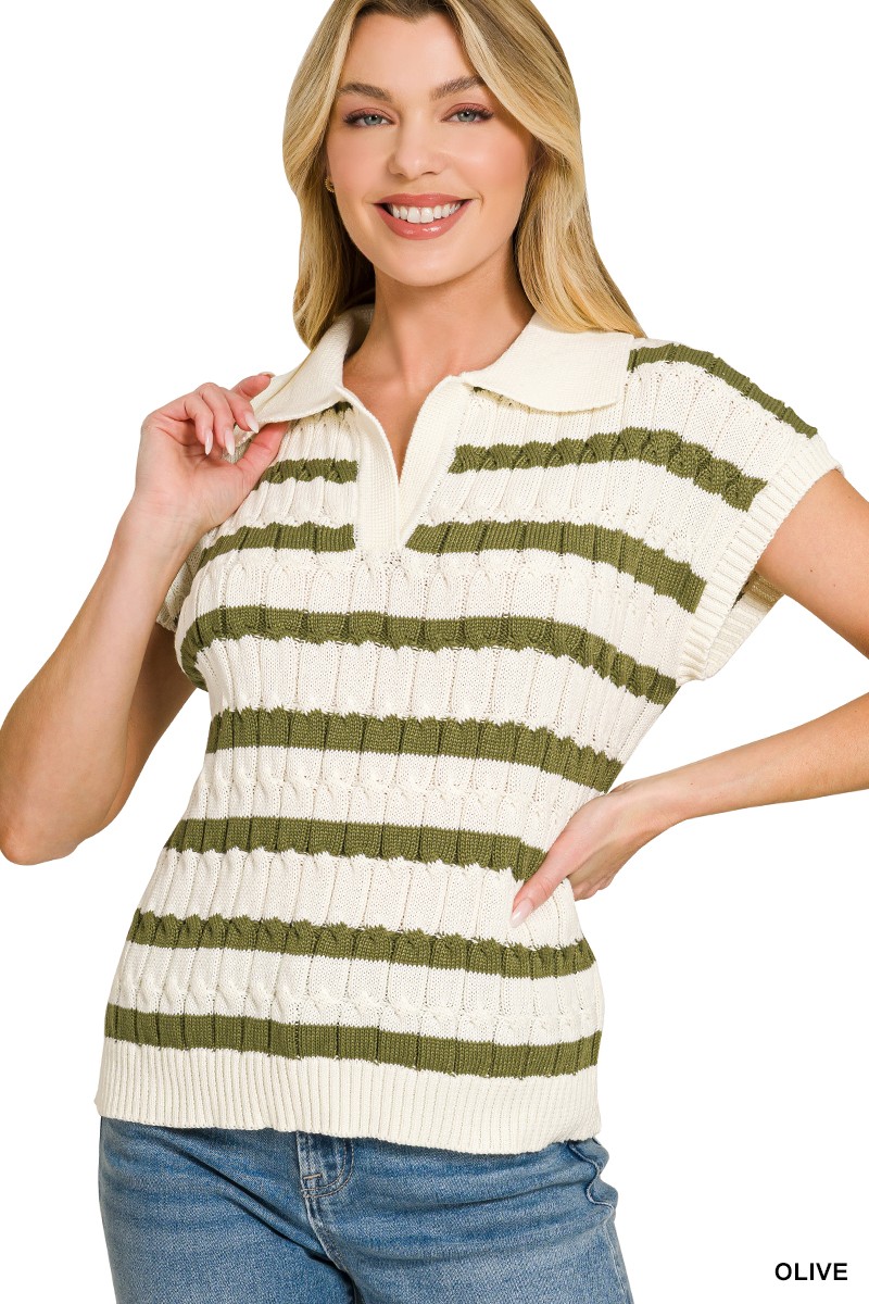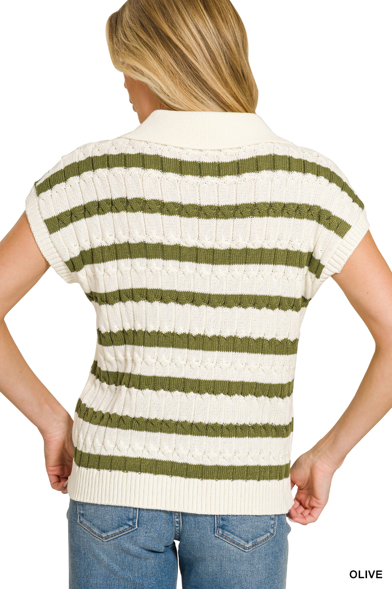 Zenana Textured Stripe Collared Sweater Vest