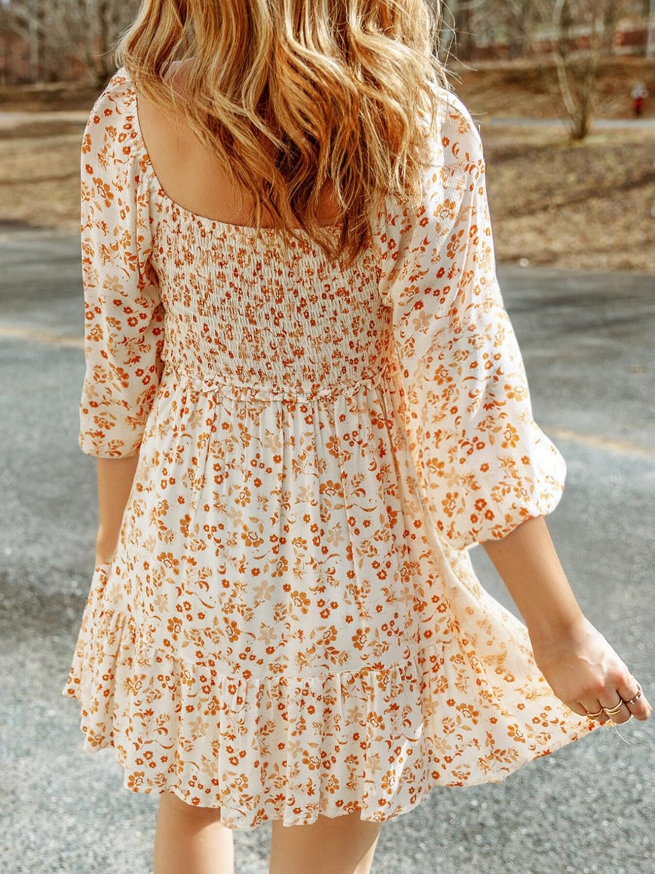 Floral Smocked Square Neck Mini Dress