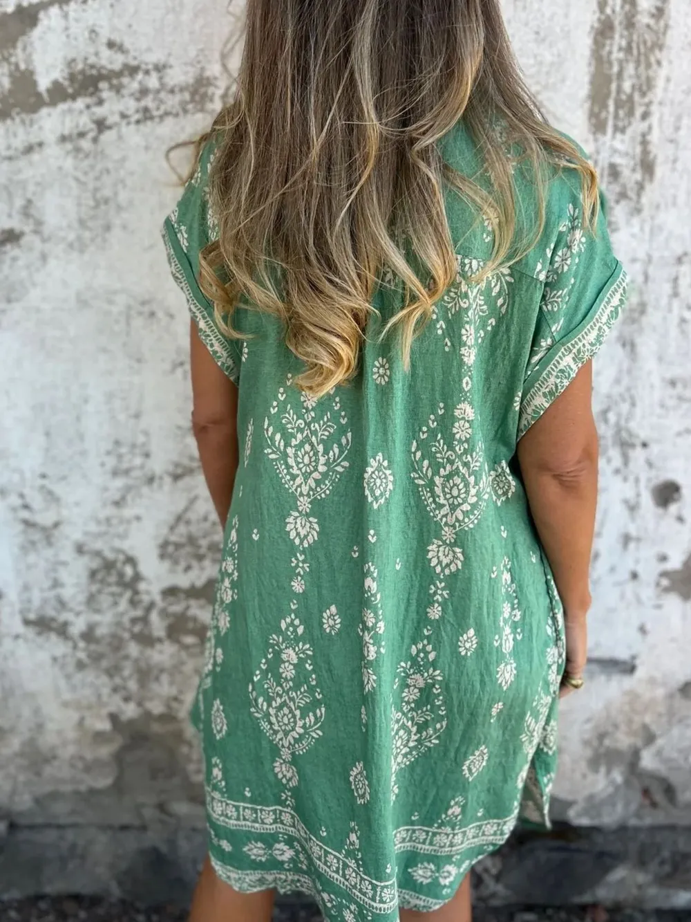 Full Size Printed Short Sleeve Button-Up Shirt Dress Plus Size