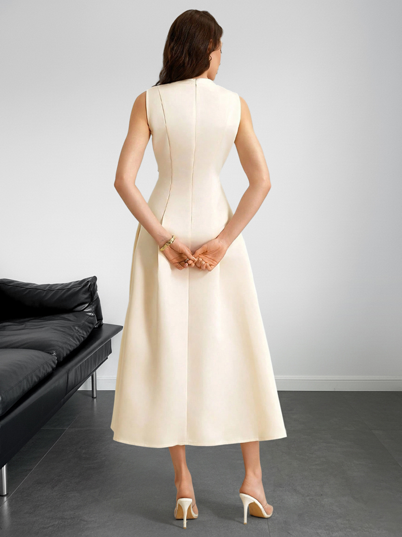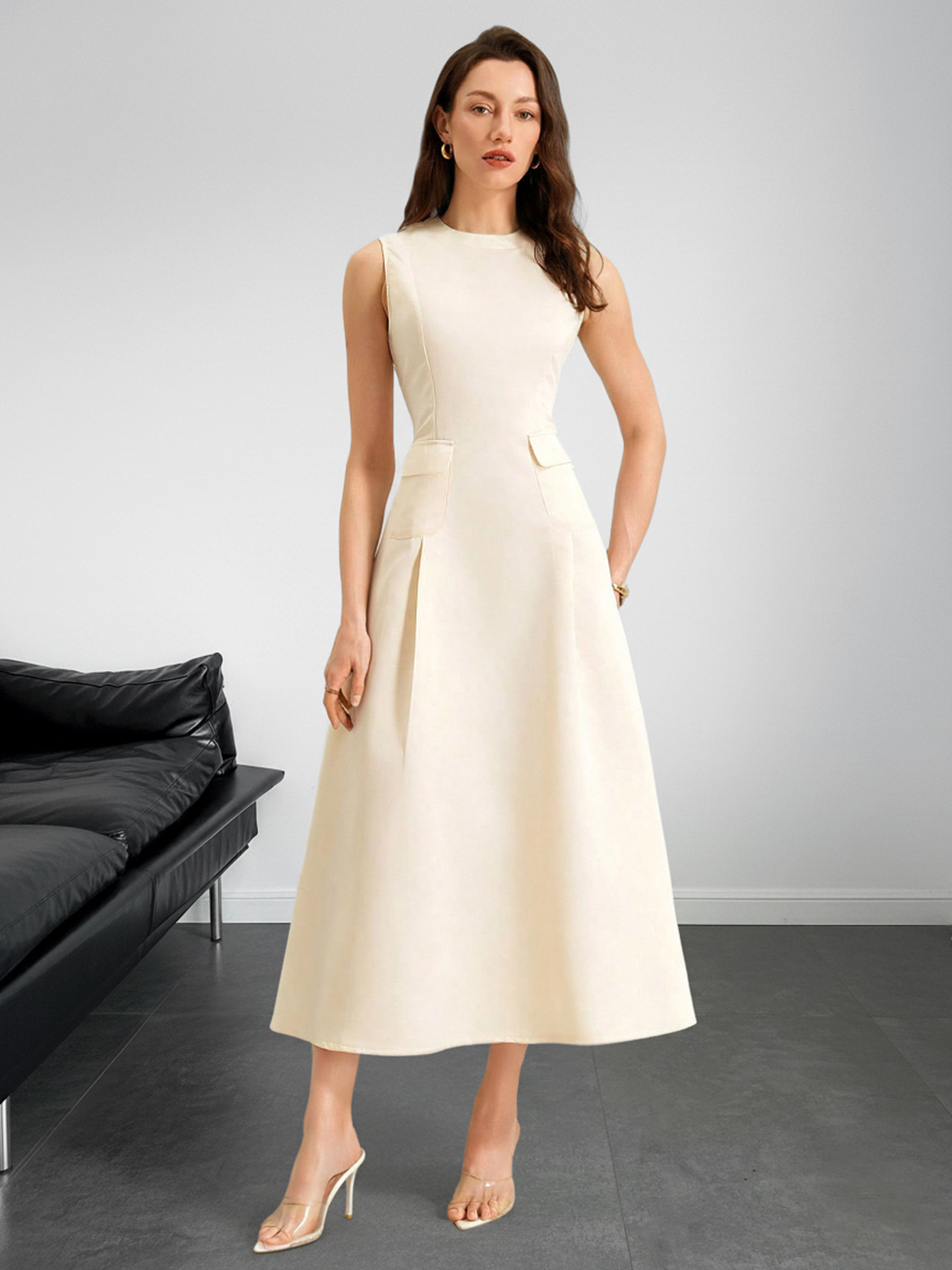 Sleeveless A-Line Midi Dress With Pockets