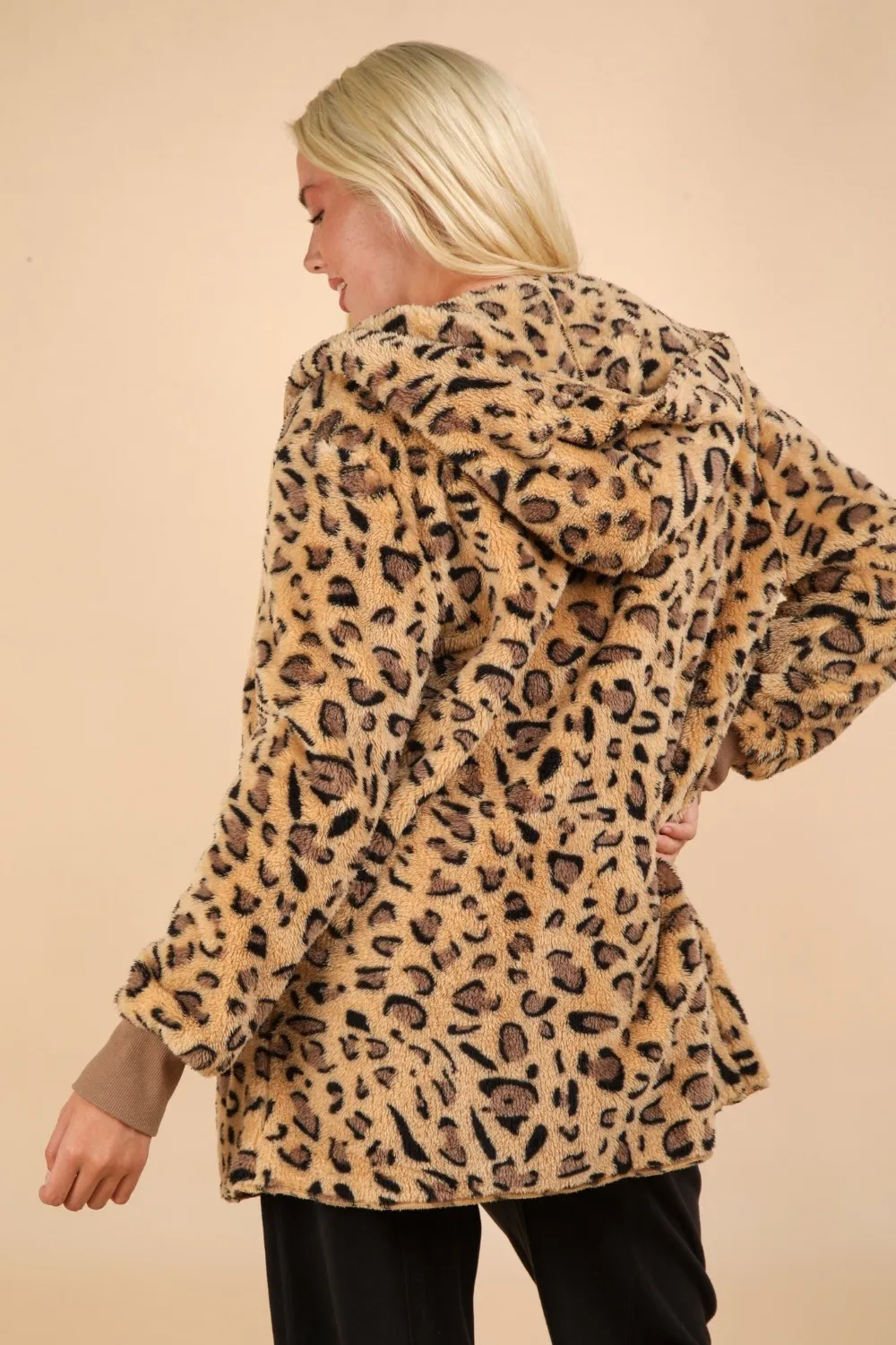 Very J Fuzzy Leopard Long Sleeve Hooded Jacket