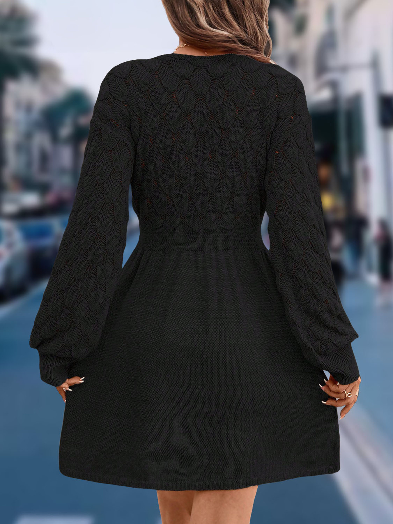 V-Neck Long Sleeve Sweater Dress