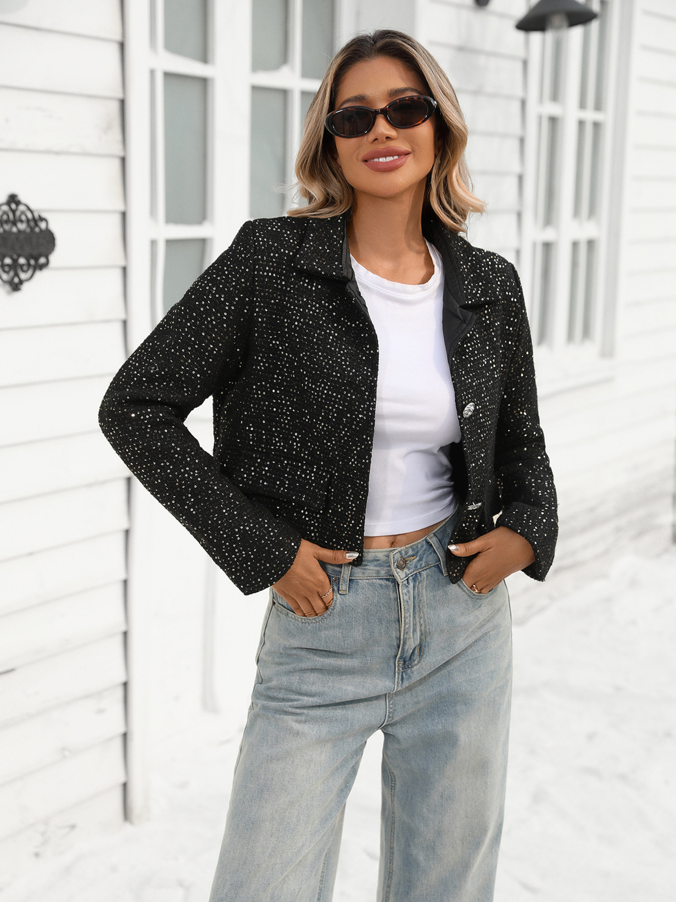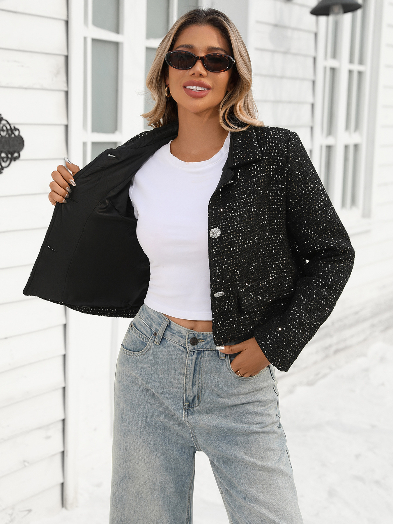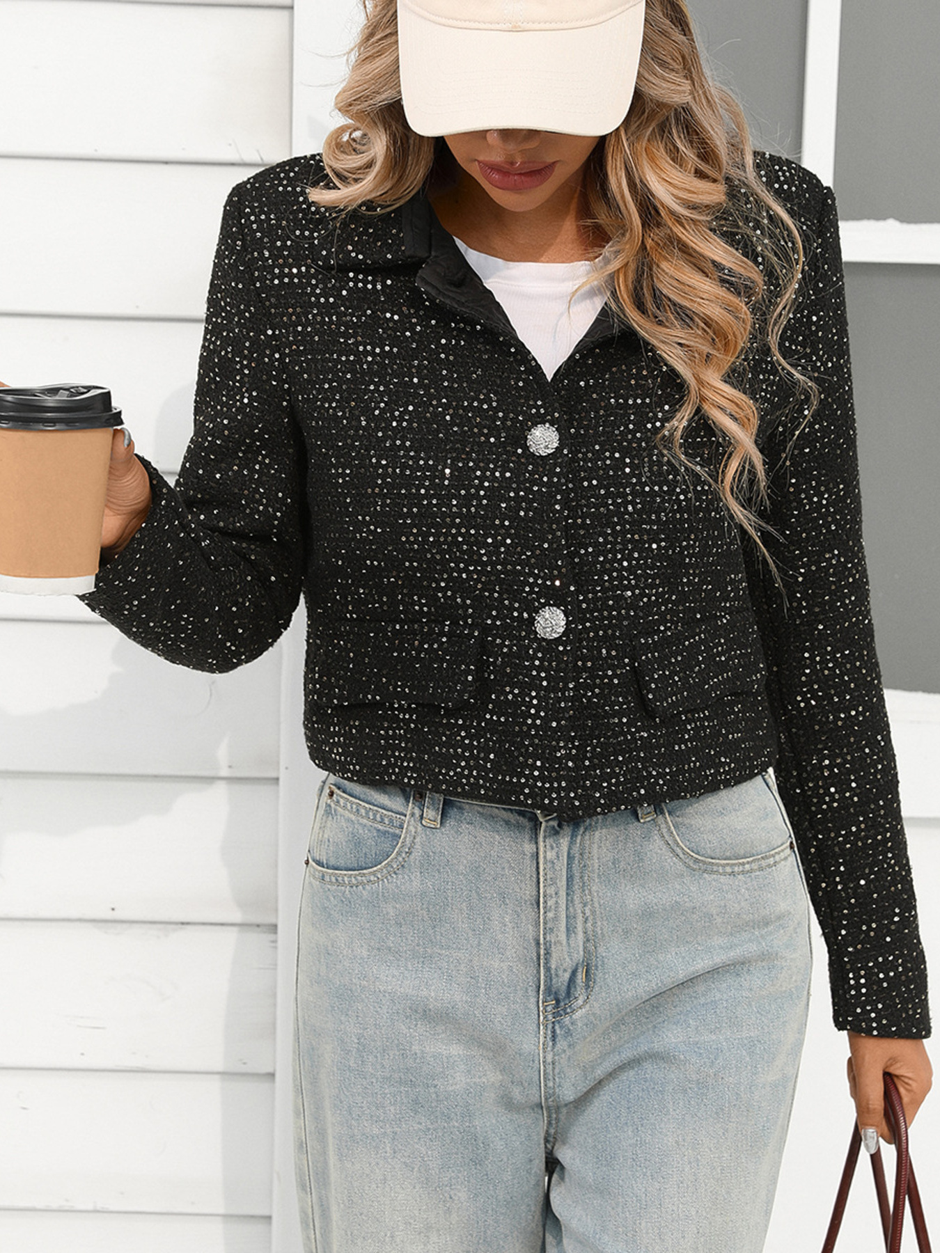 Tweed Button Up Cropped Jacket