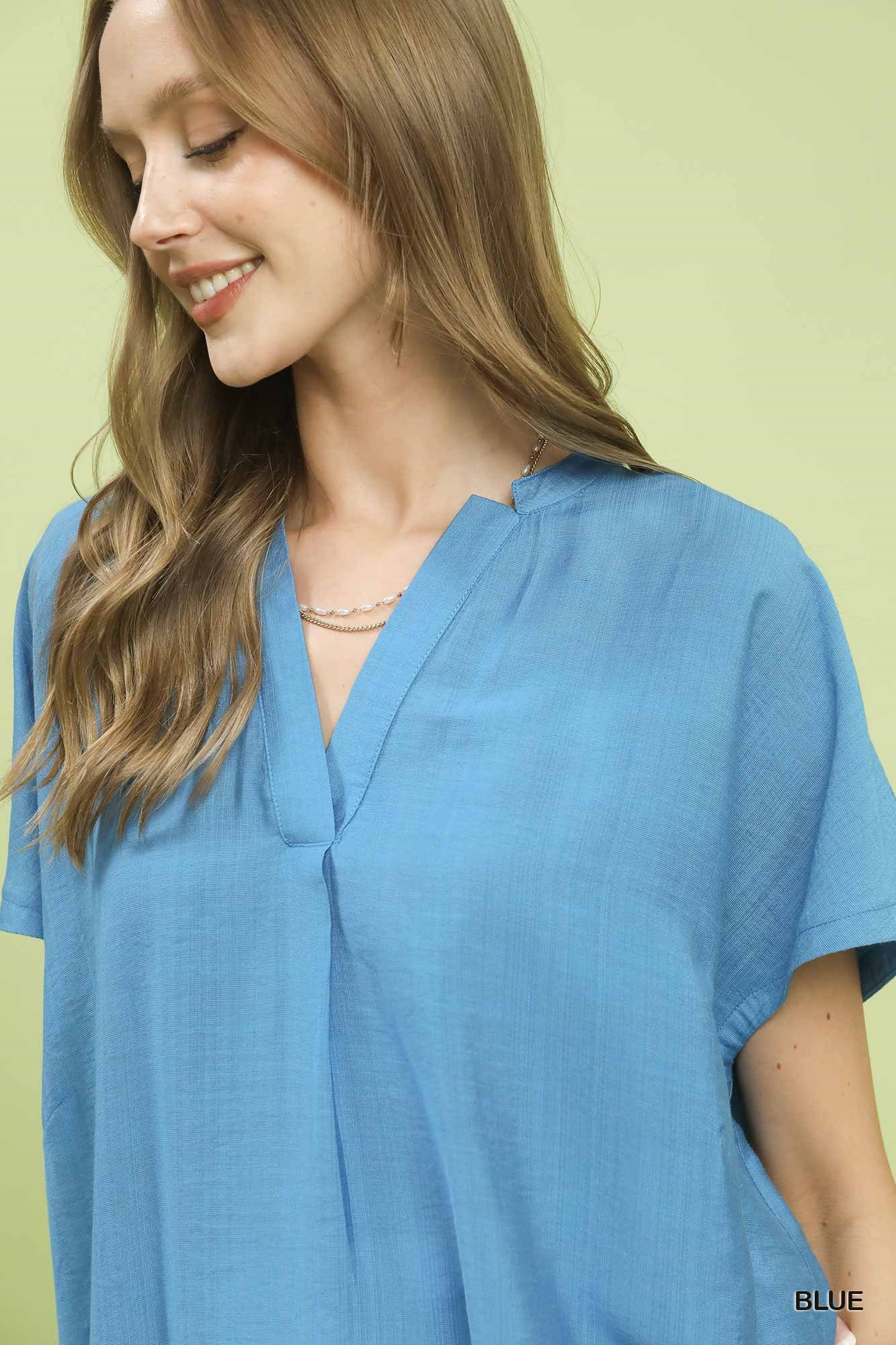 Umgee Flowy V-Neck Short Sleeve Blouse
