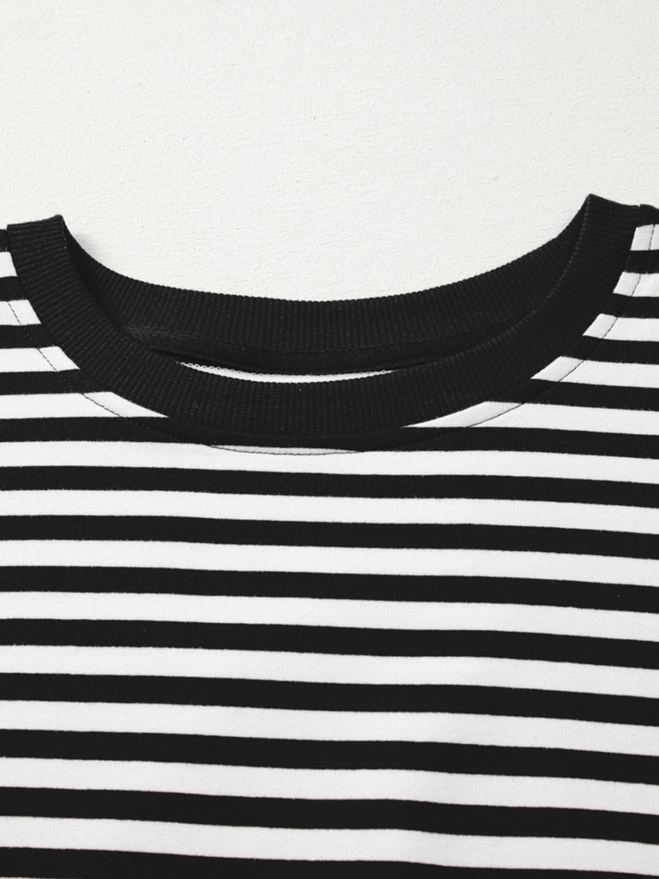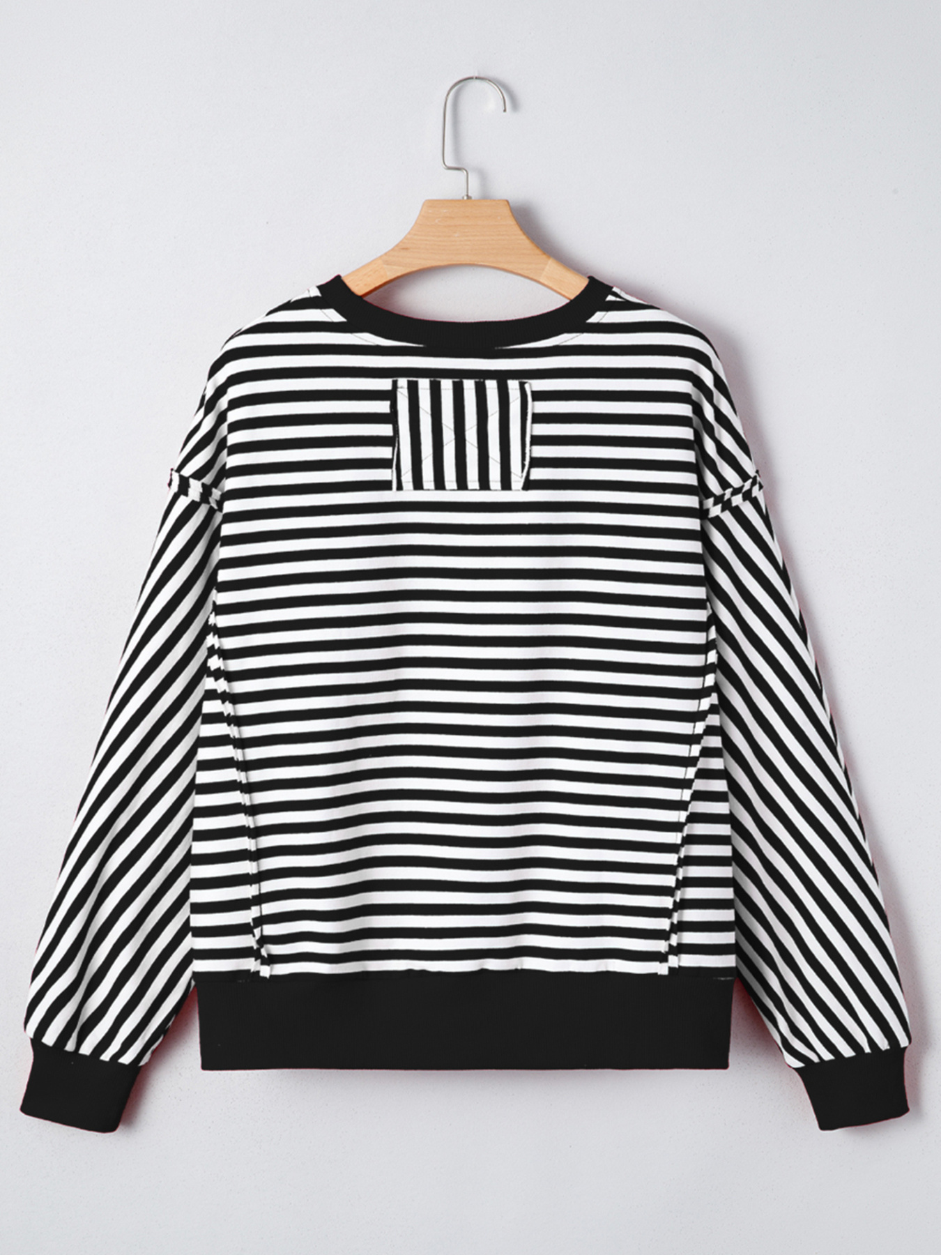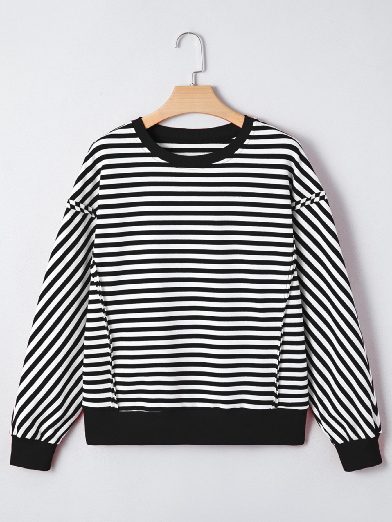 Stripe Exposed Seam Drop Shoulder Casual Pullover Top