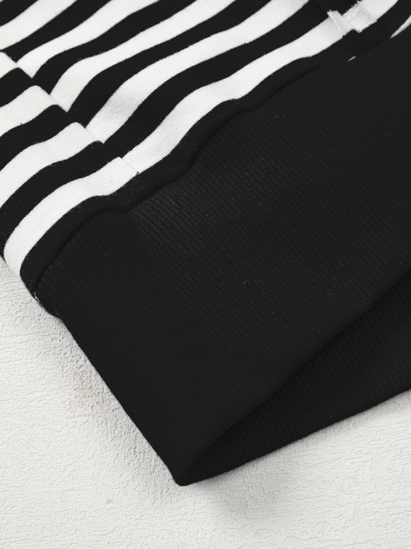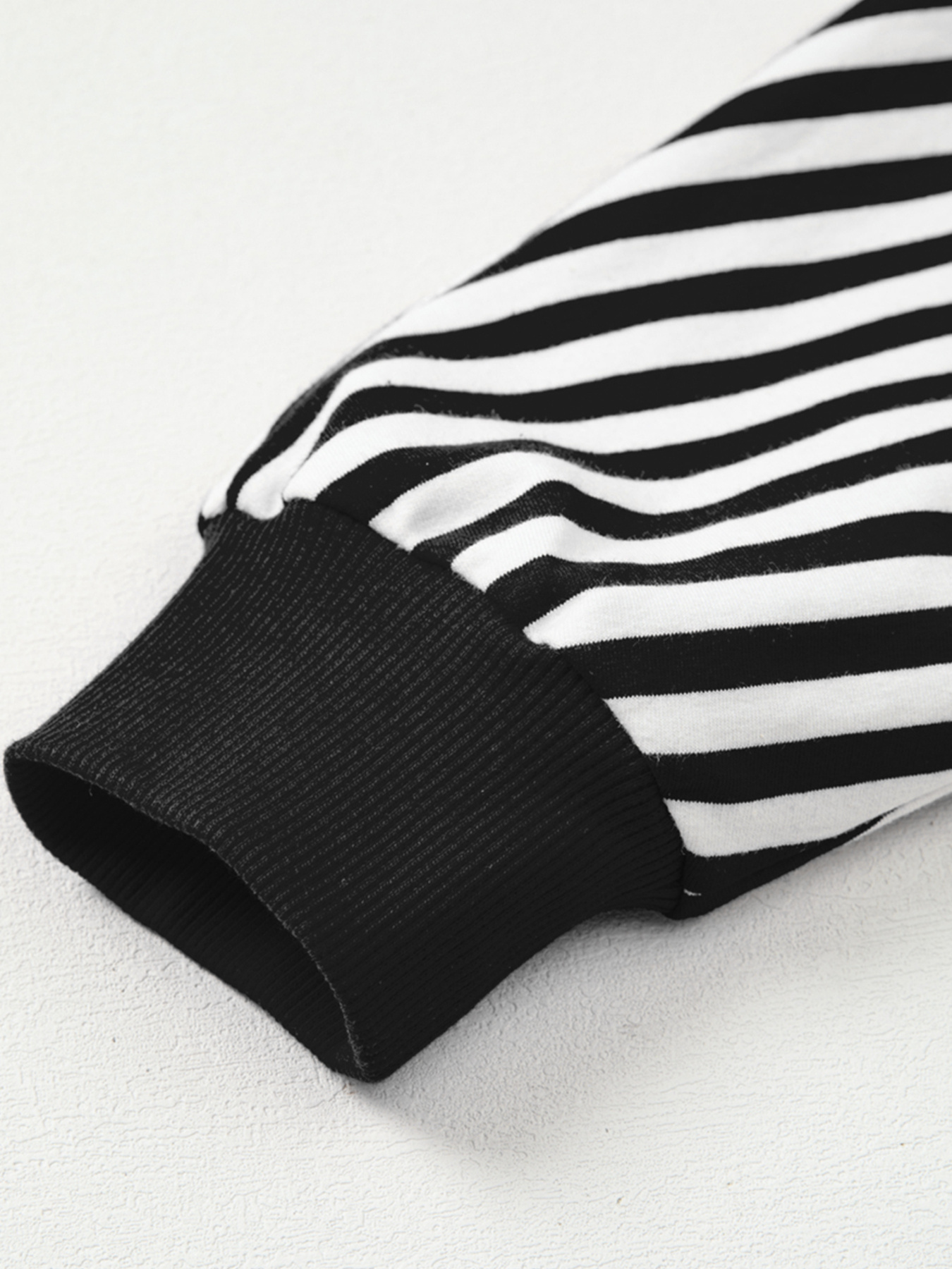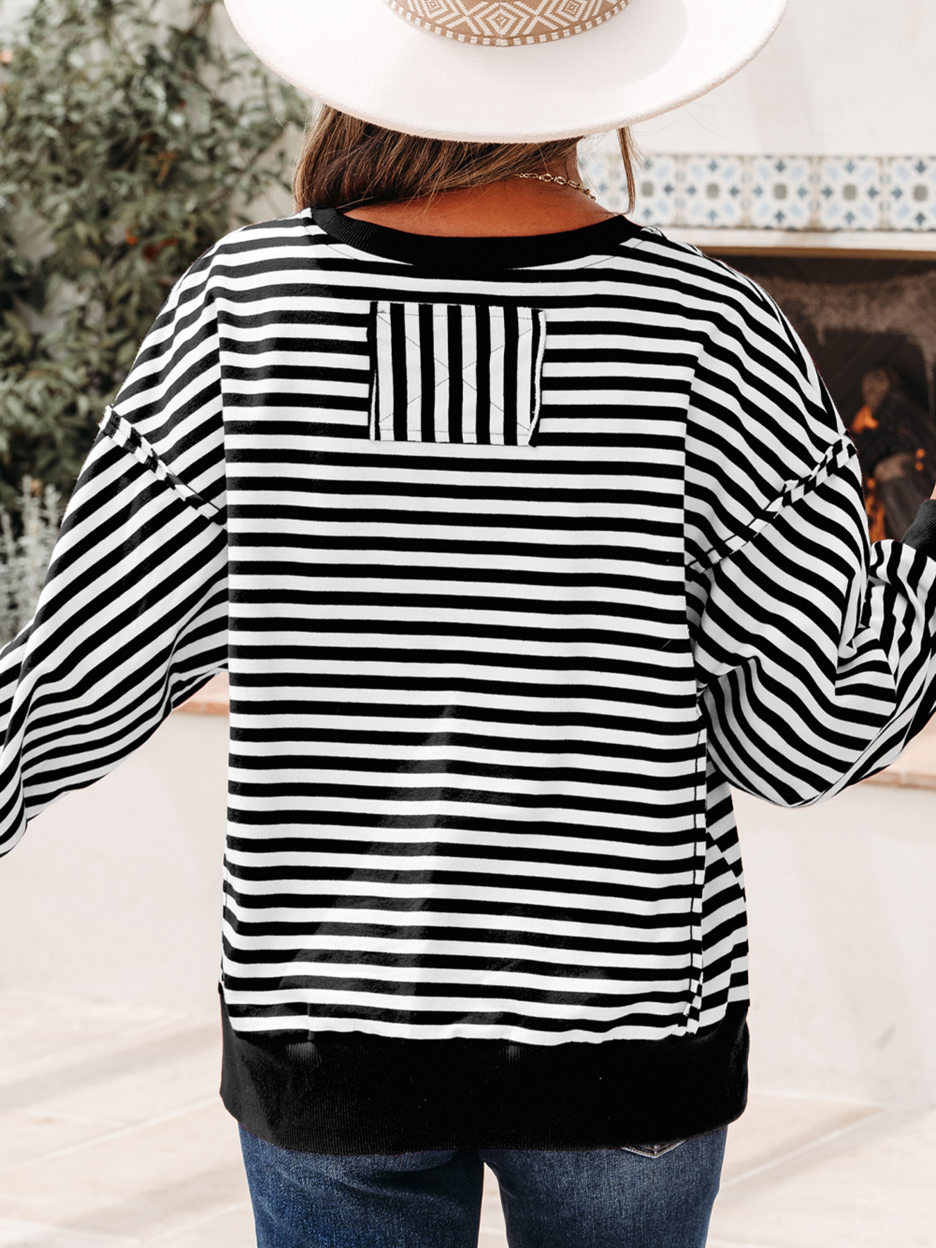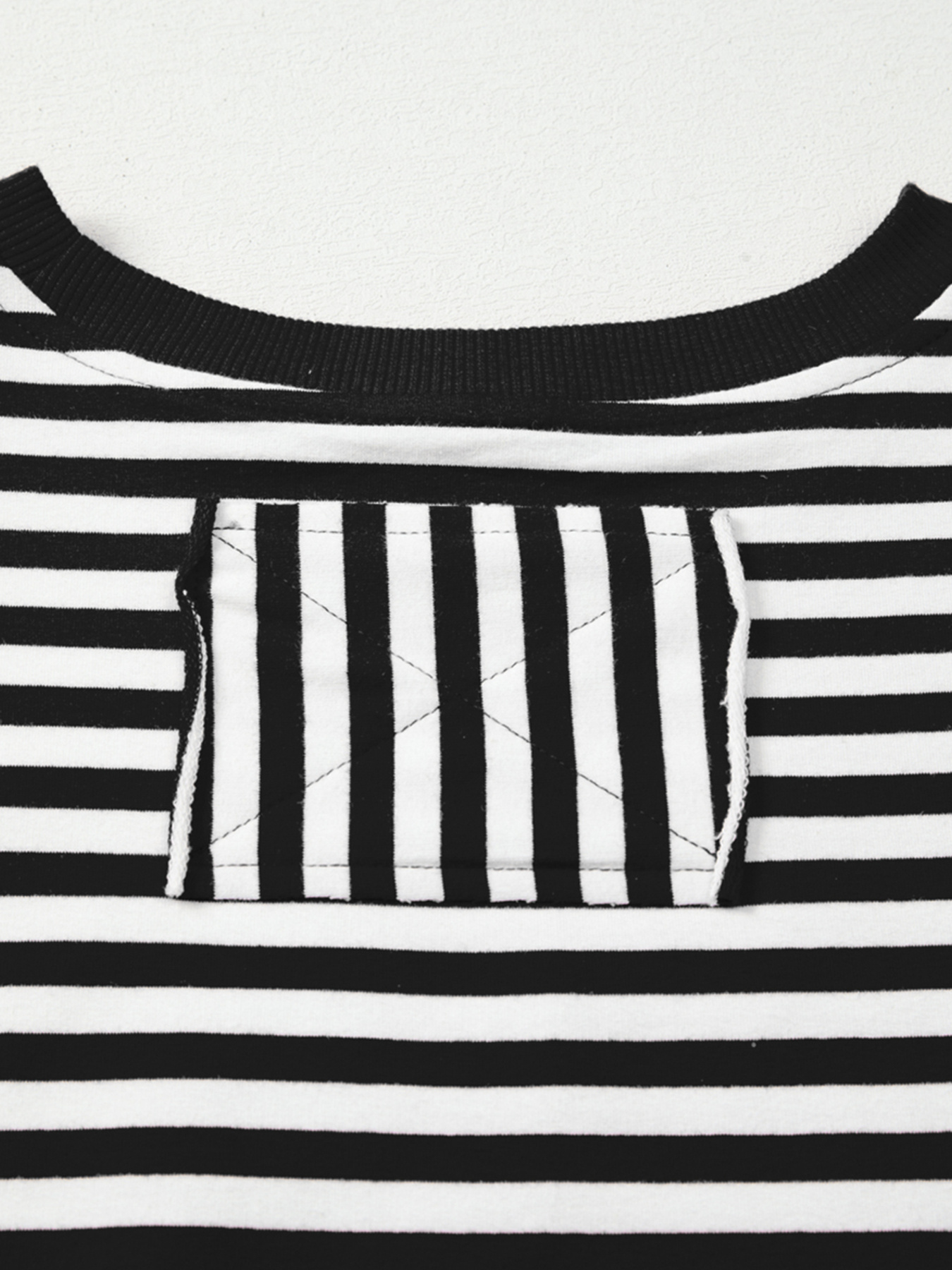 Stripe Exposed Seam Drop Shoulder Casual Pullover Top