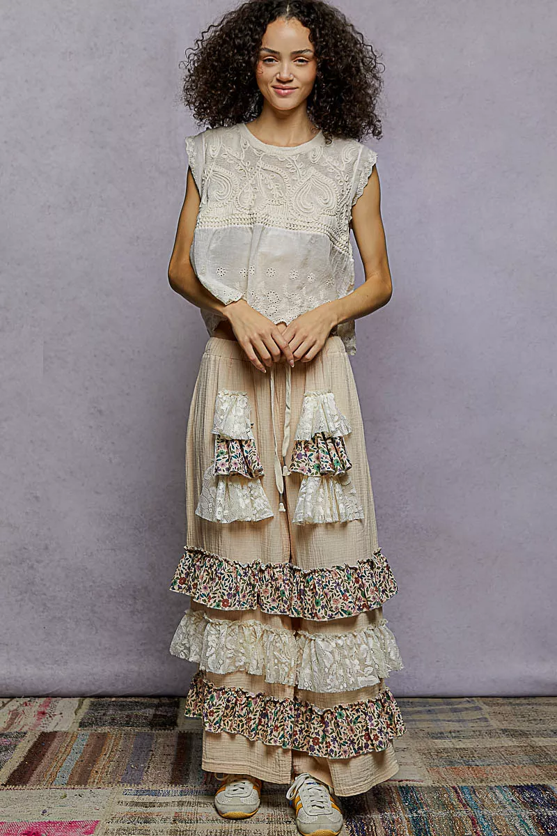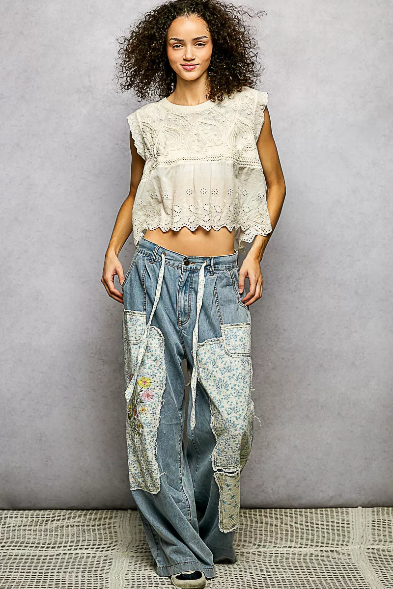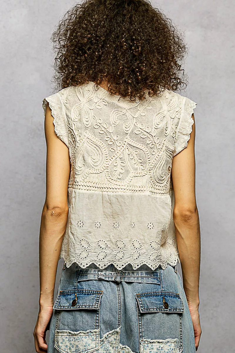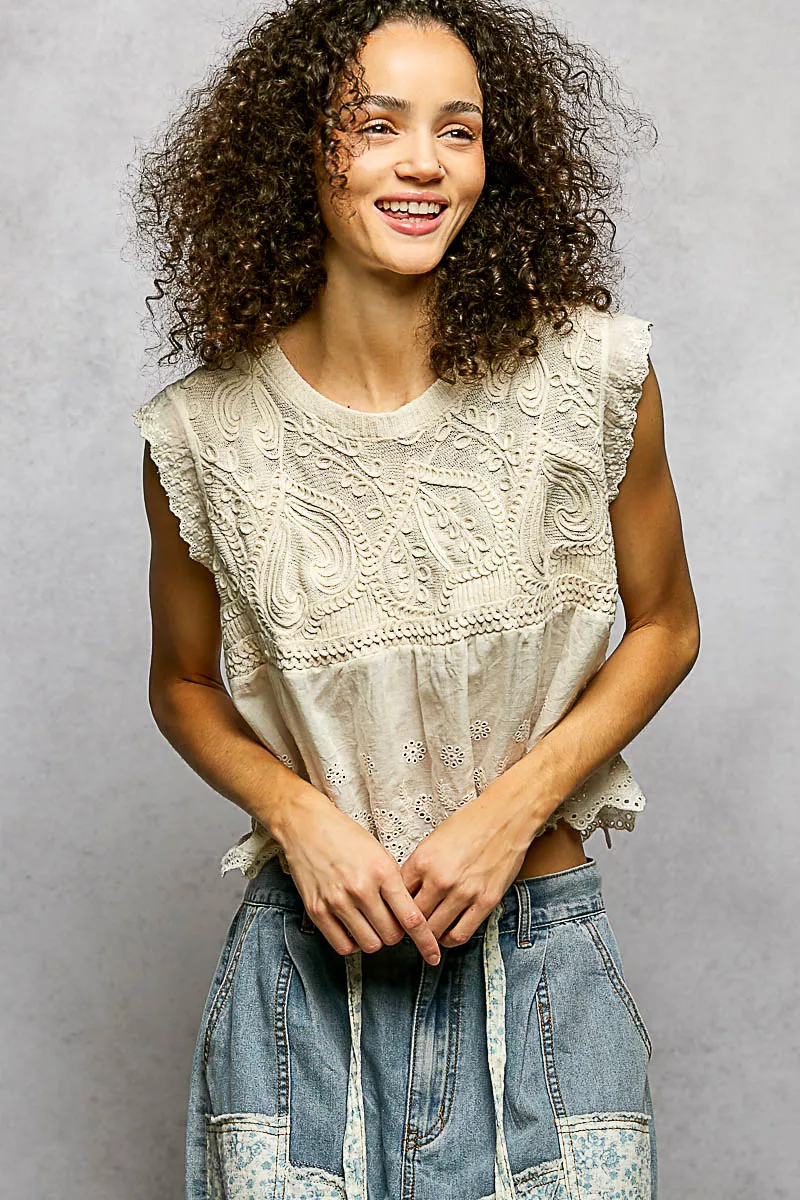 Pol Round Neck Sleeveless Crochet Flowy Fit Top