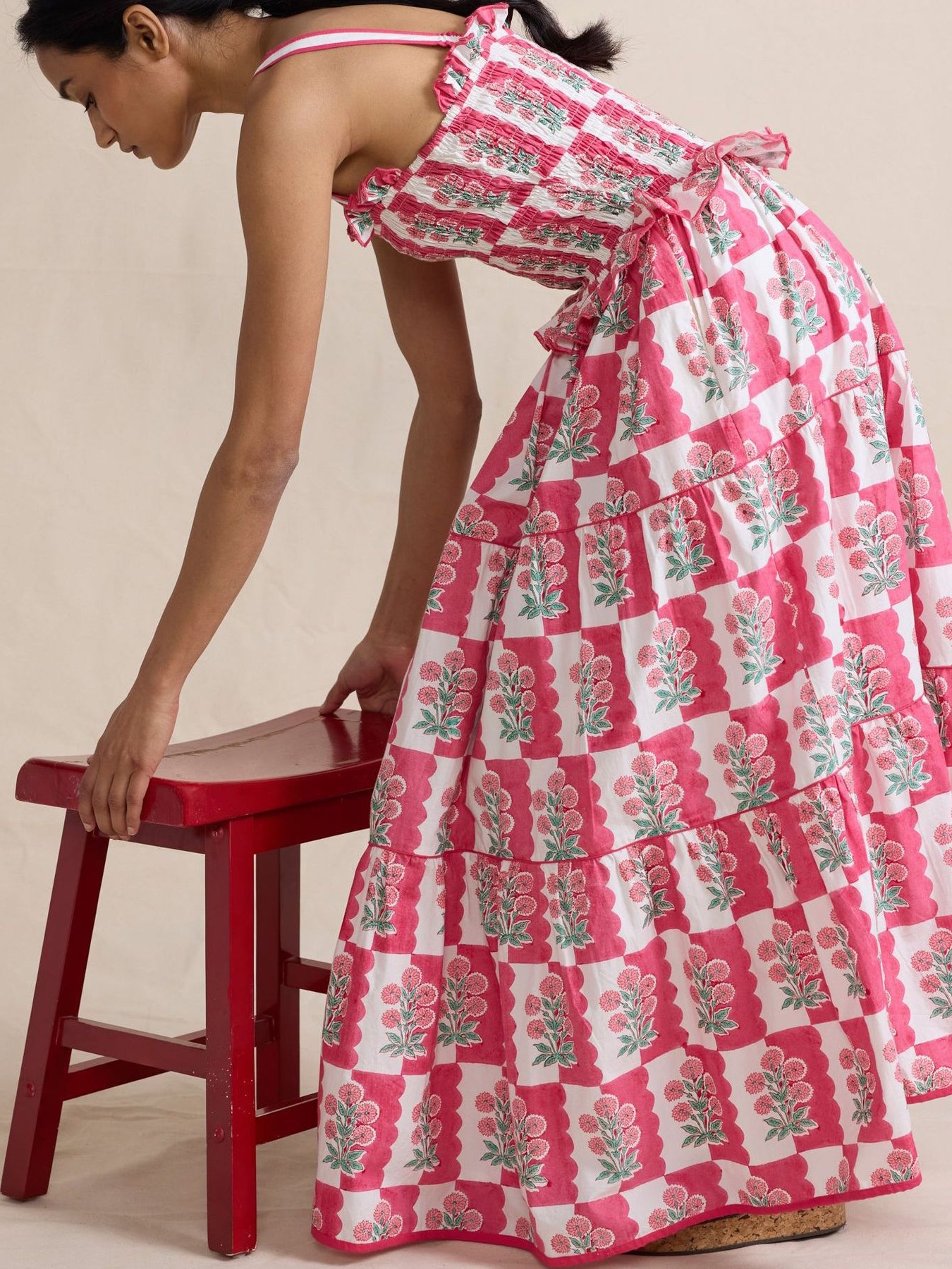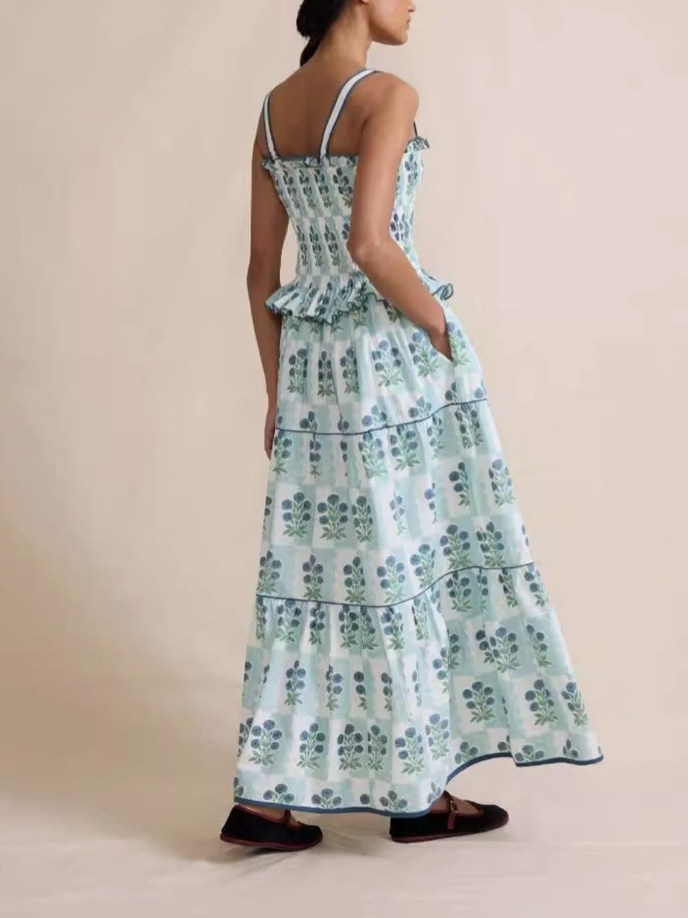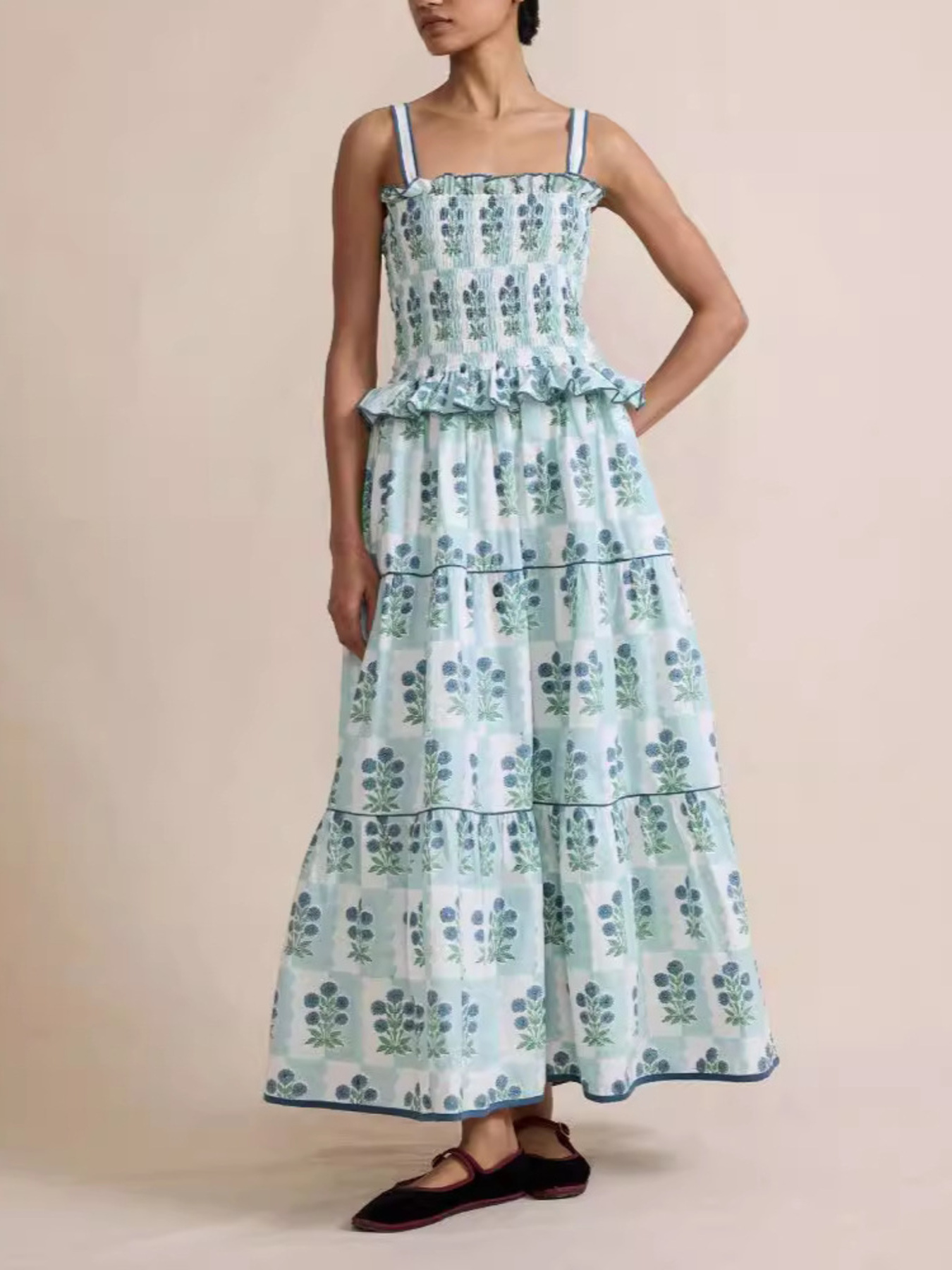 Bohemian Floral Print Smocked Tiered Maxi Dress