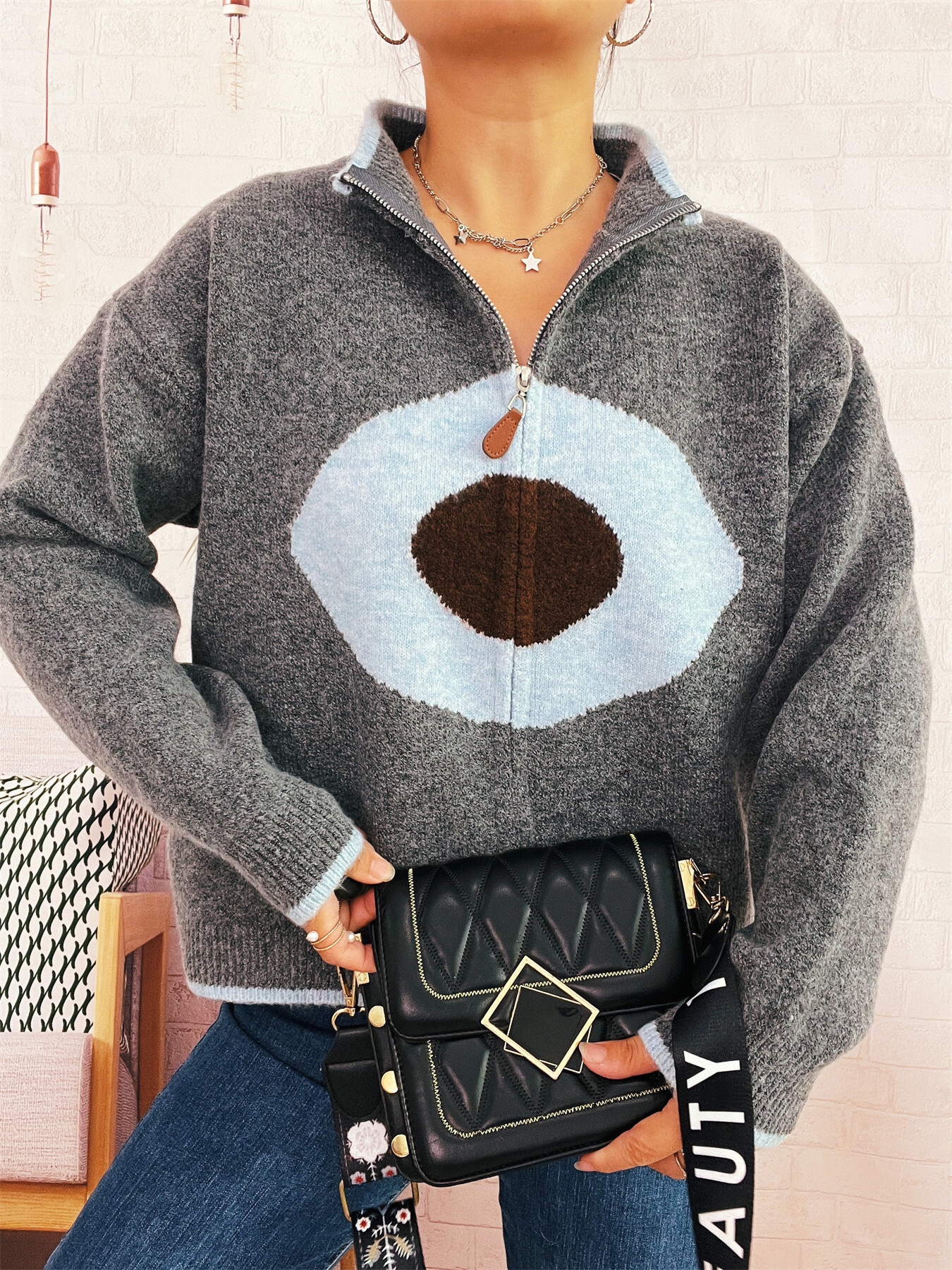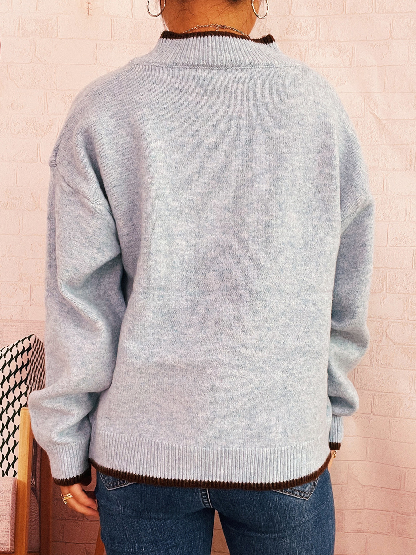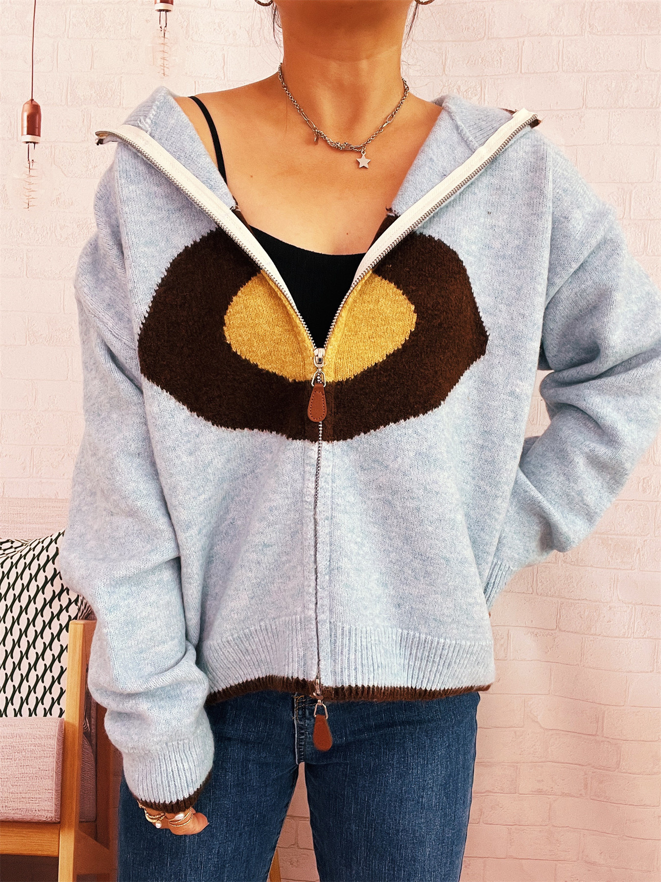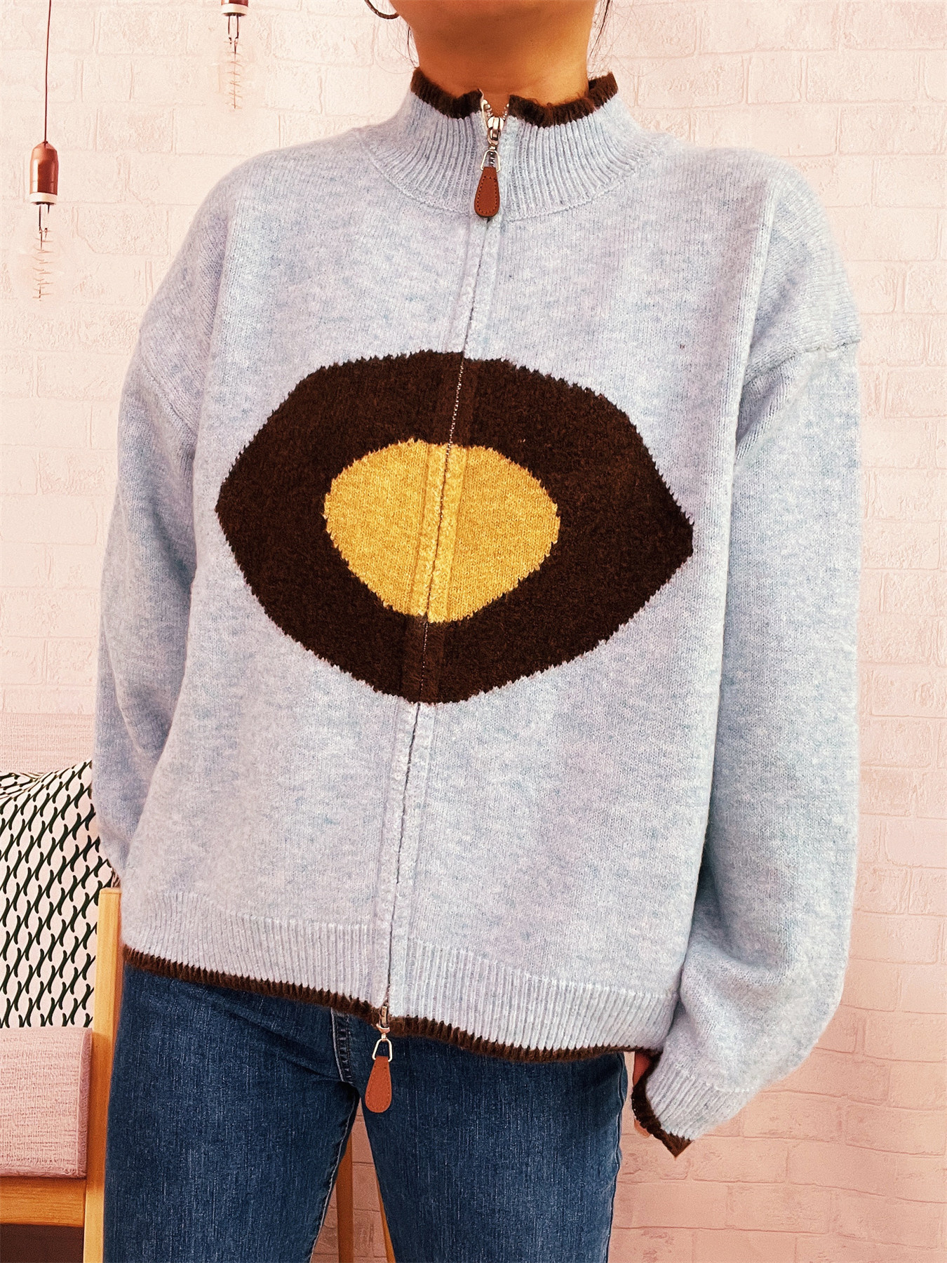 Zip-Up Contrast Trim Cardigan