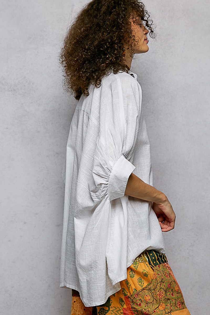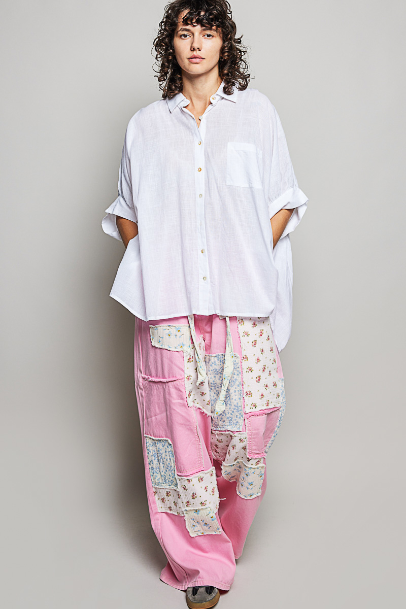 Pol Button Down Half Dolman Sleeve Shirt