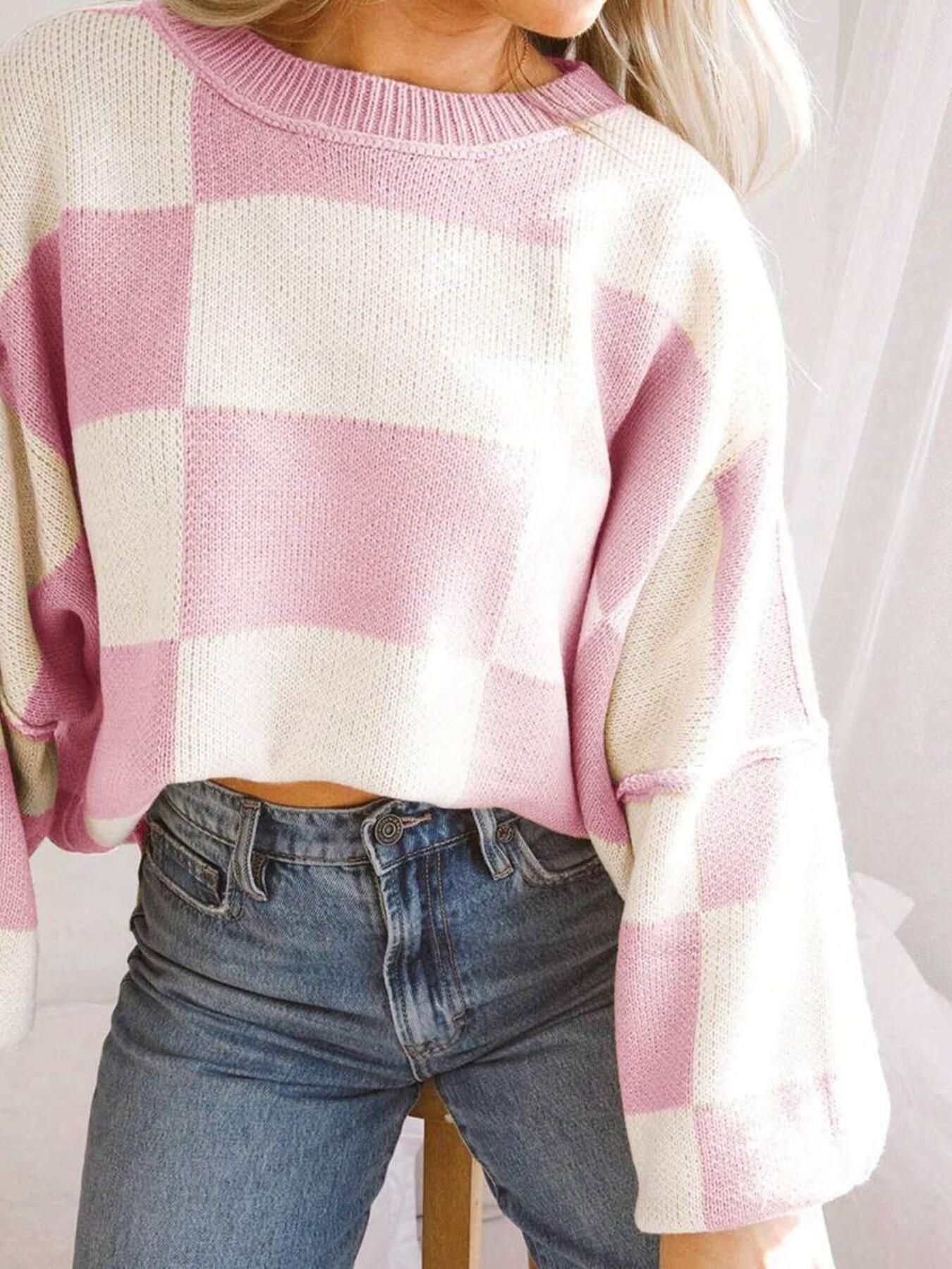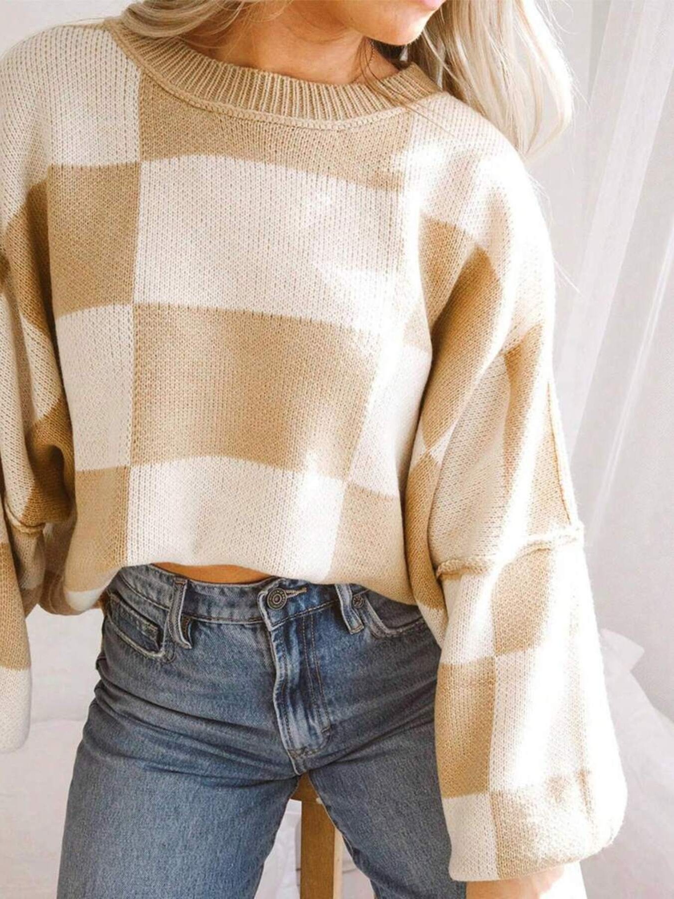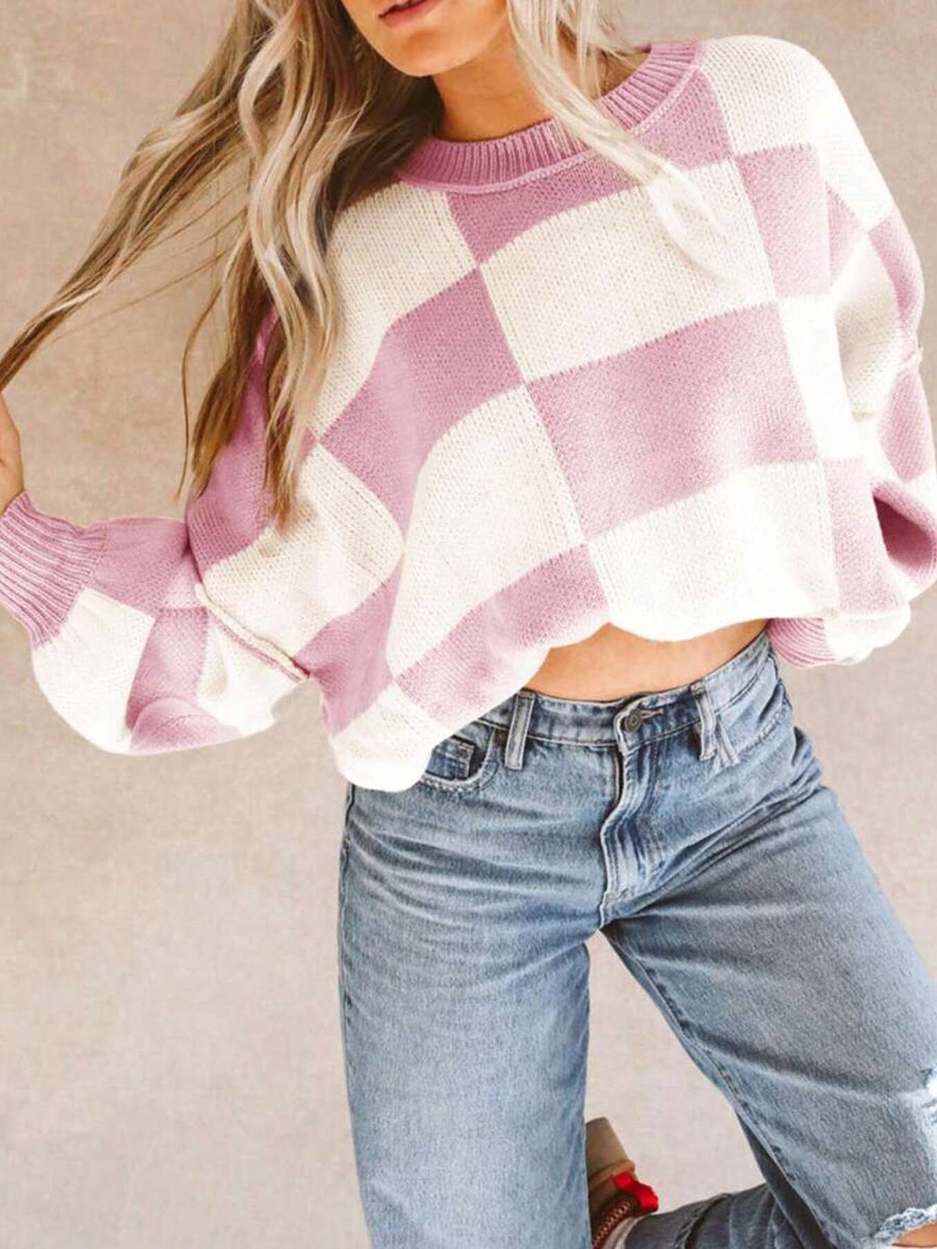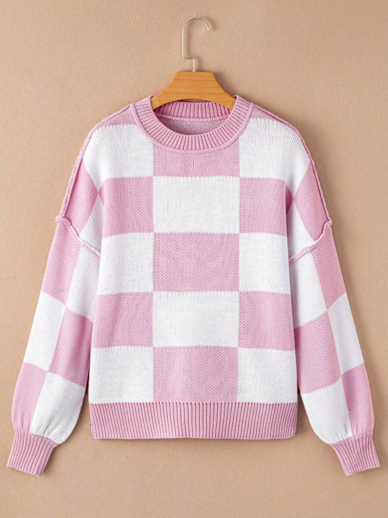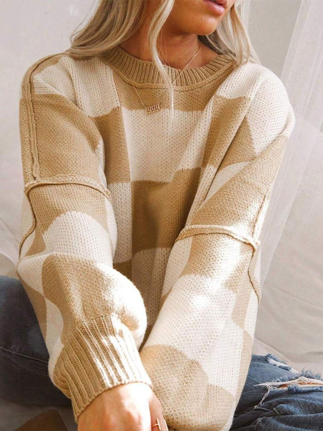 Checkered Pattern Oversized Sweater