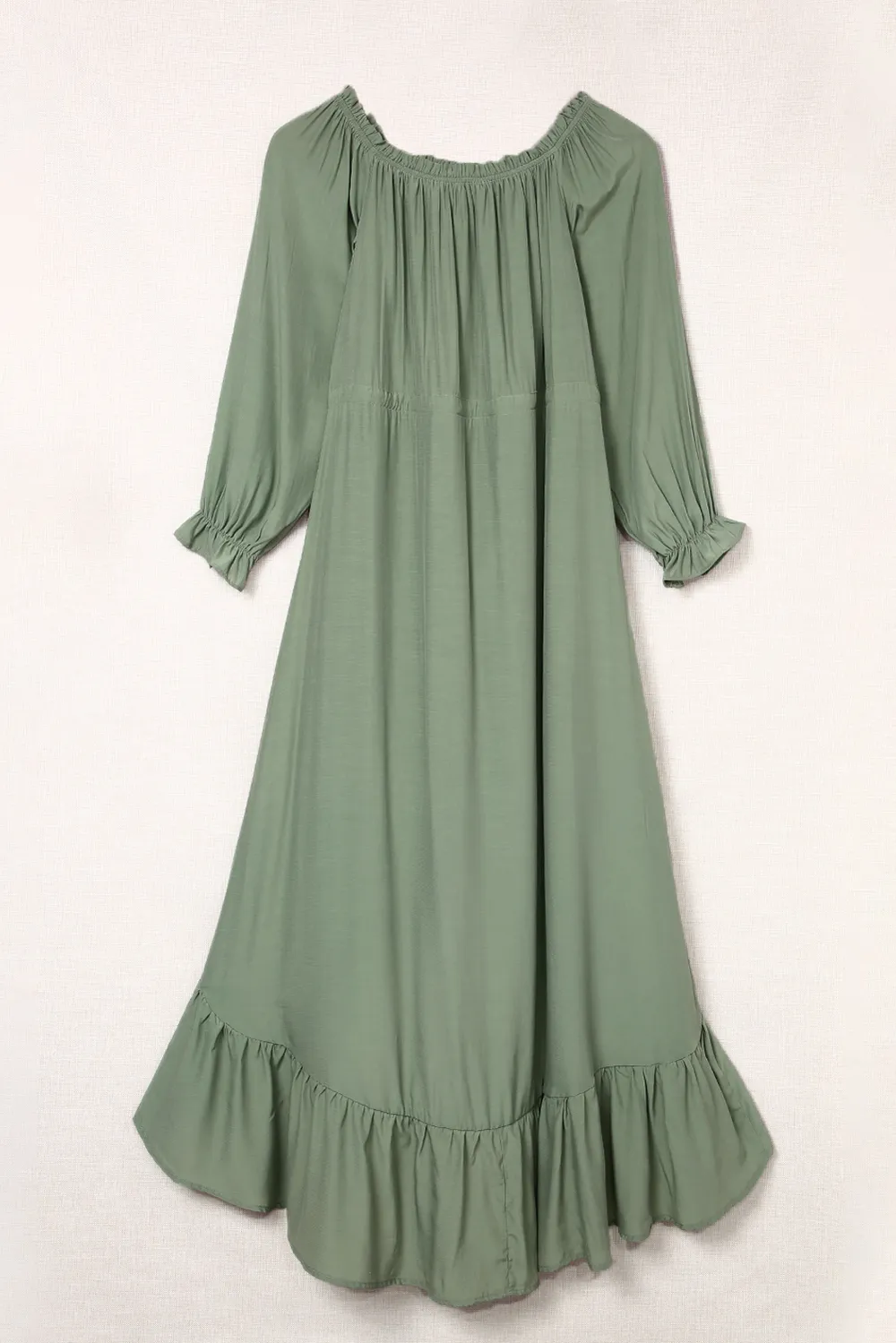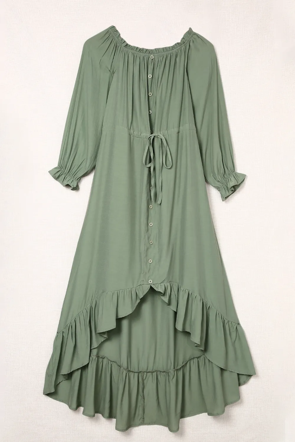 Drawstring Off-Shoulder Flounce Sleeve Dress