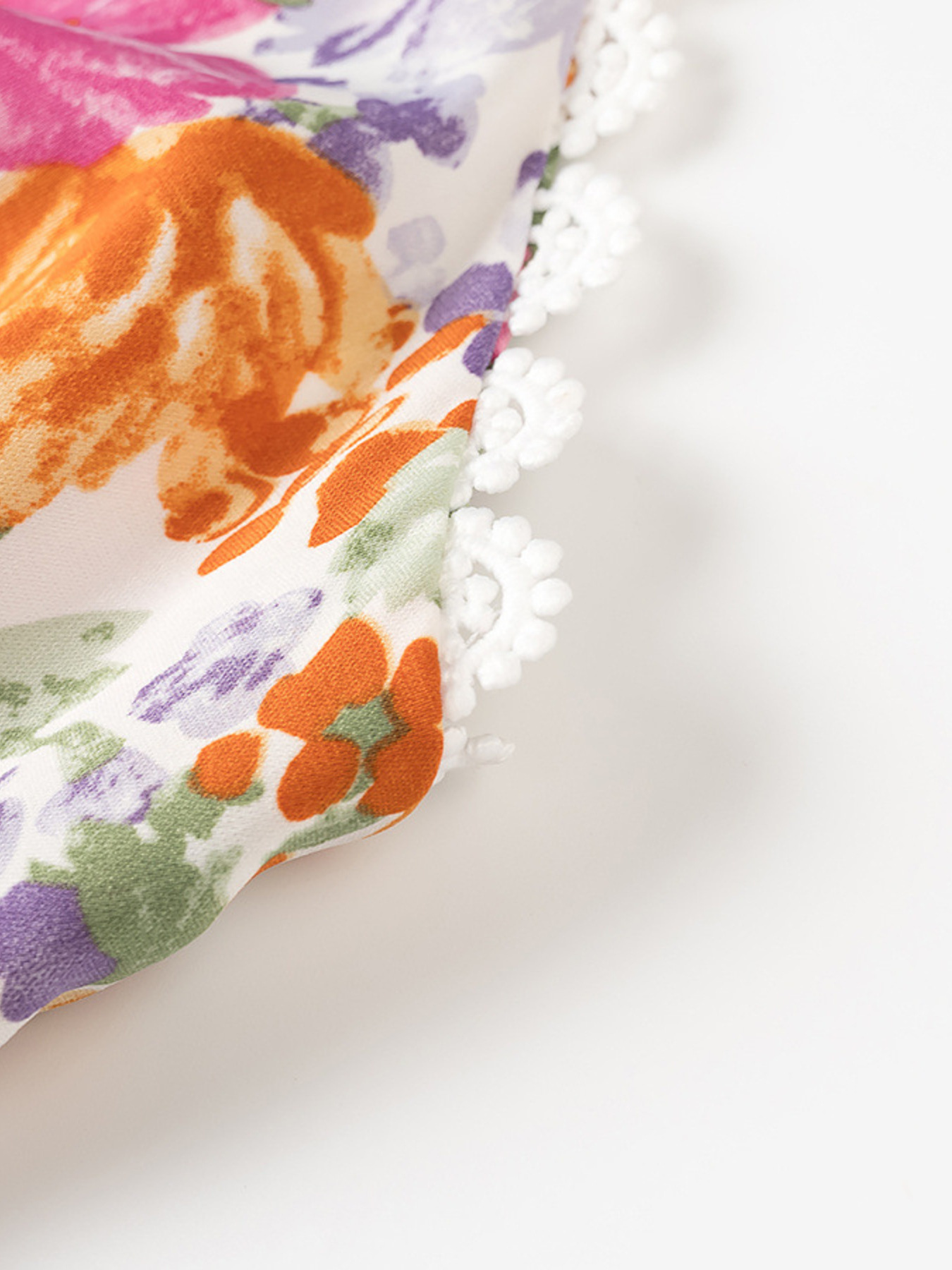 Floral Print Tie-Front Cami Dress With Lace Trim