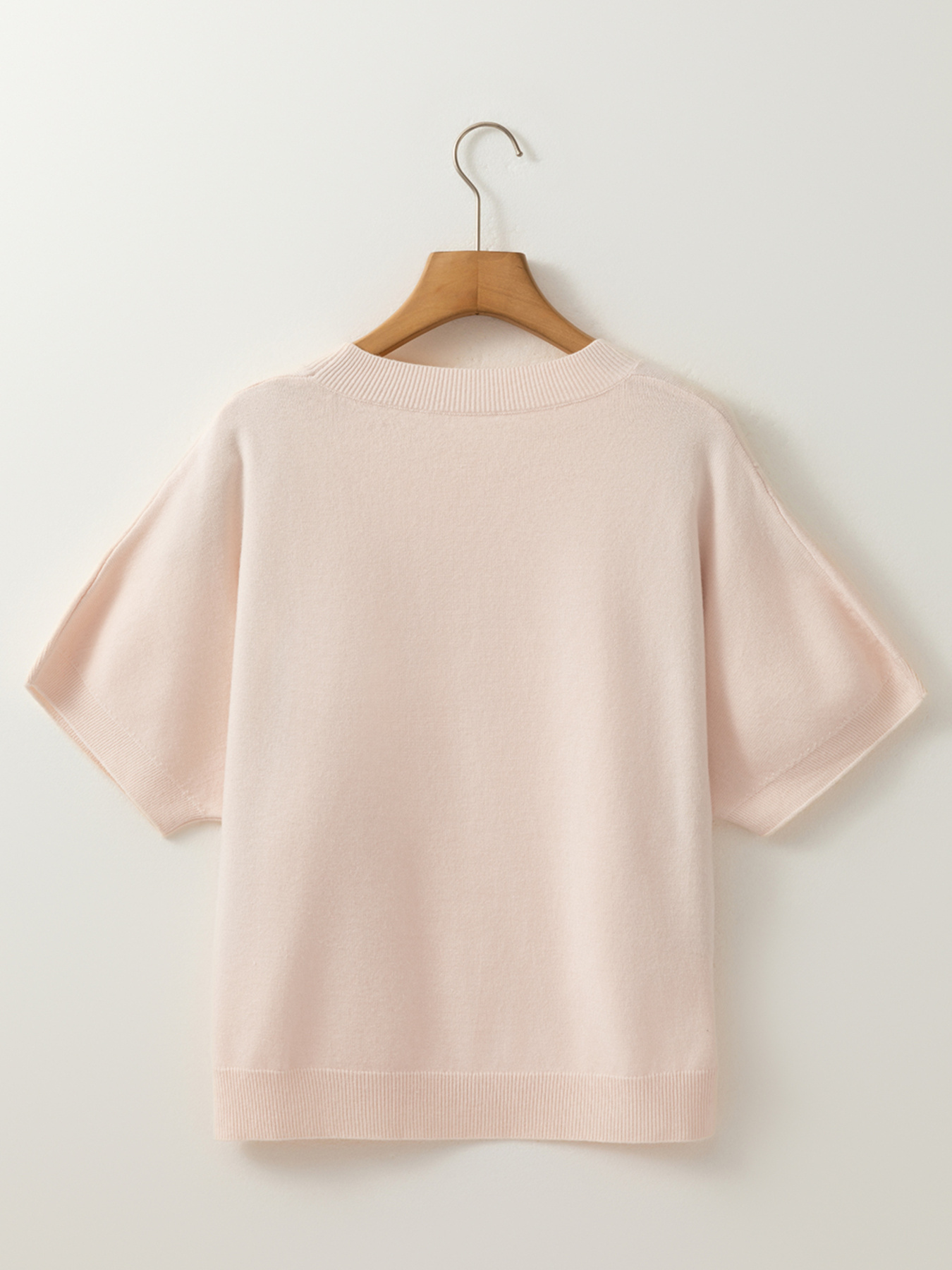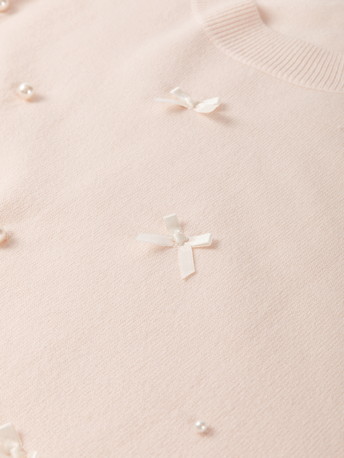 Pearl Embellished Bow Detail Short Sleeve Sweater