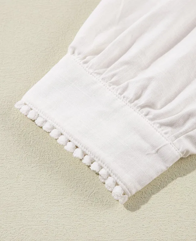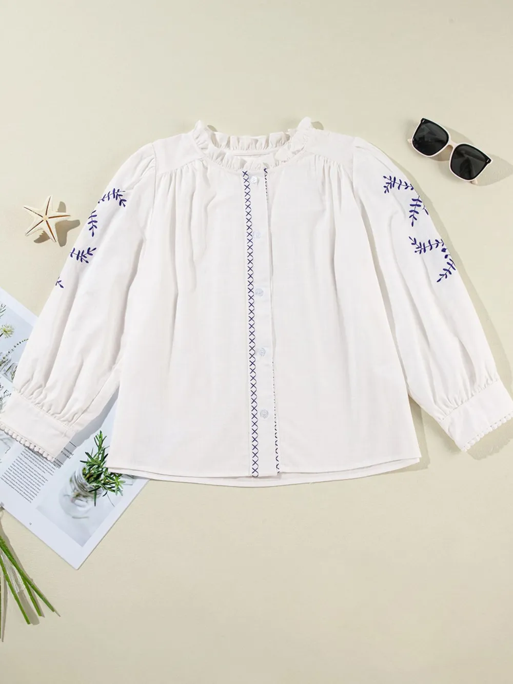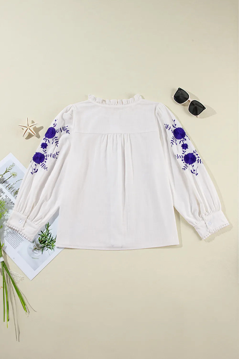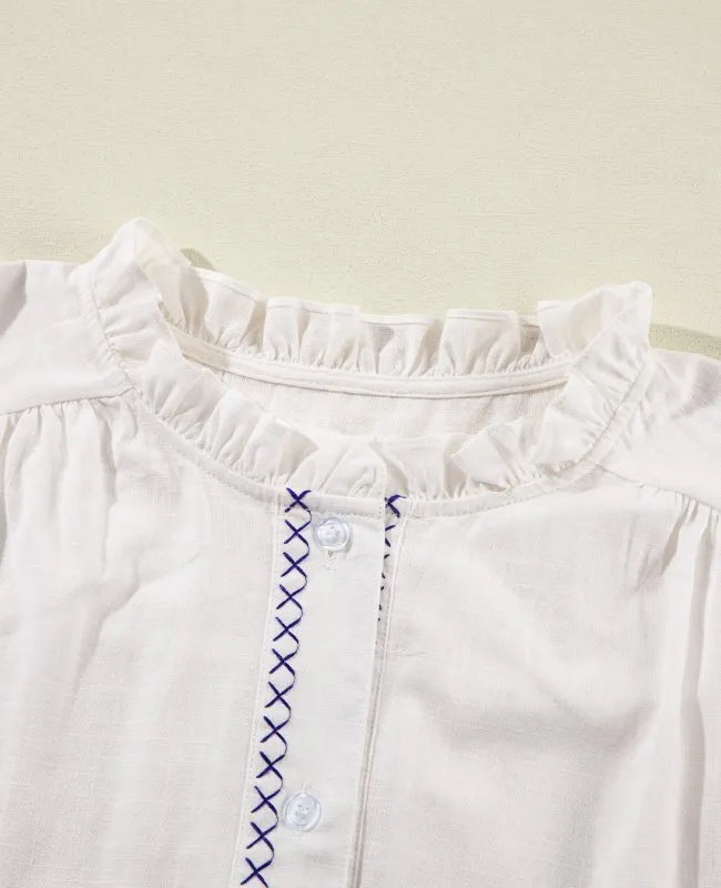 Frill Floral Embroidered Sleeve Shirt