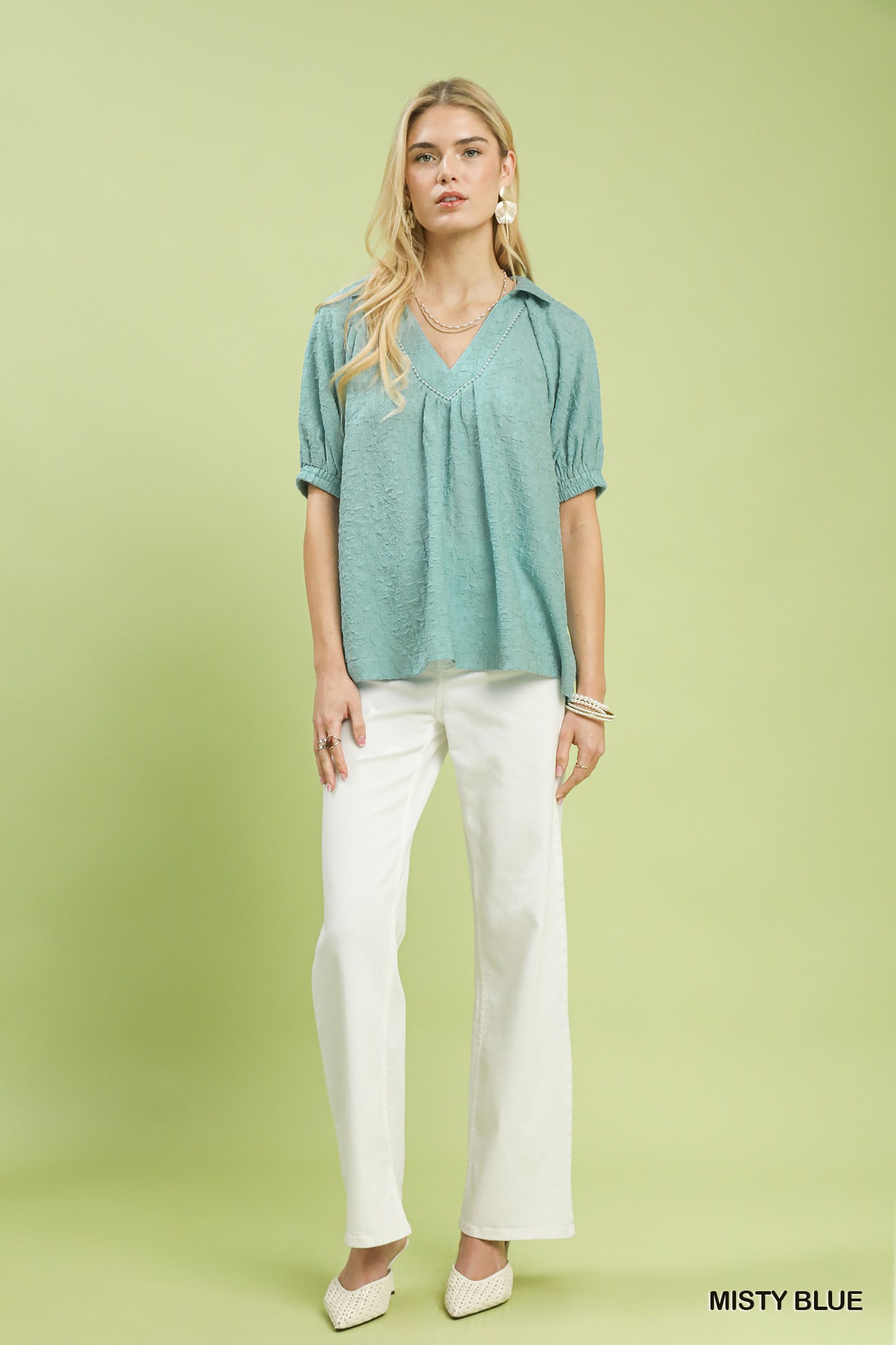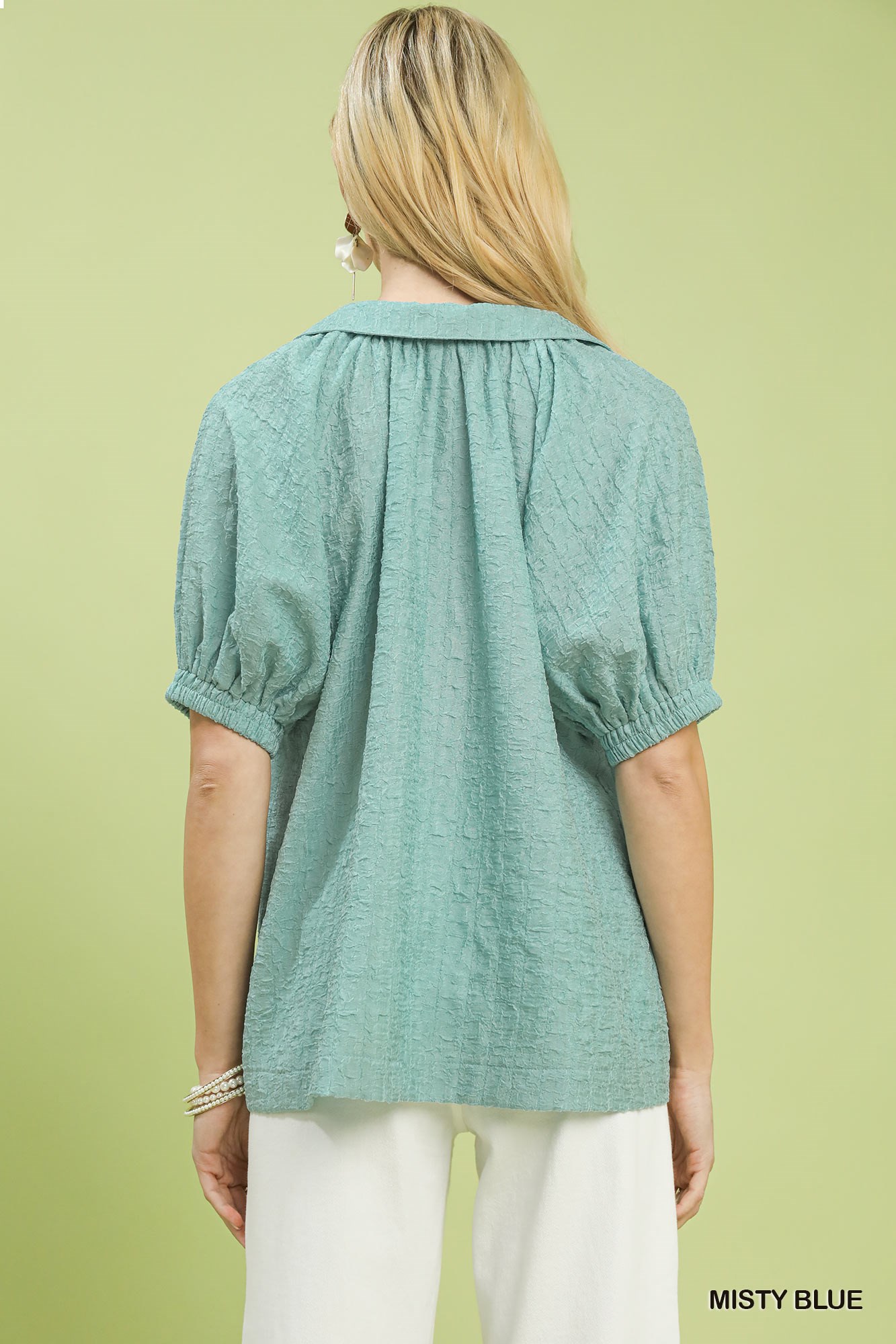 Umgee Textured Trim Detail Short Sleeve Top