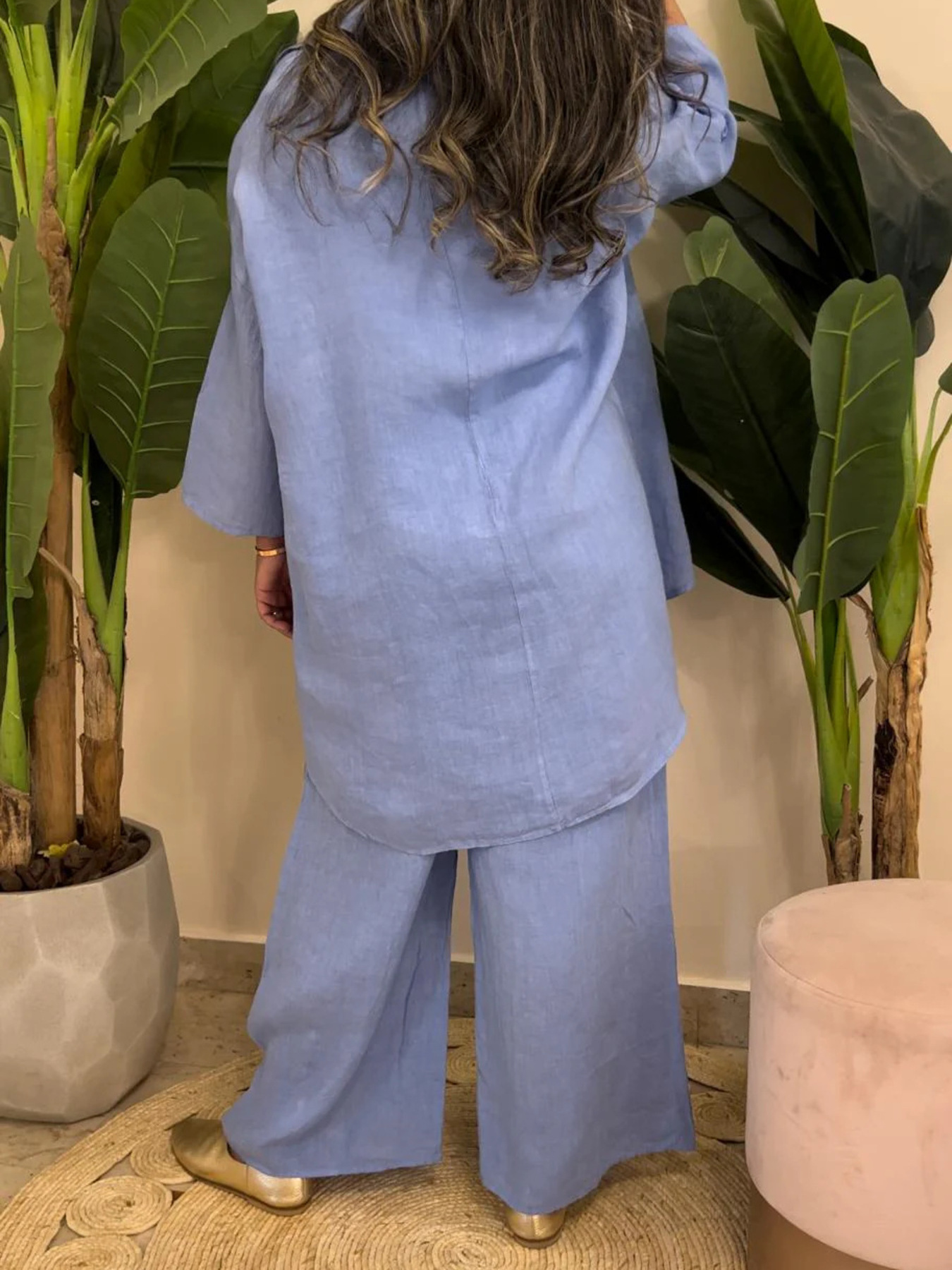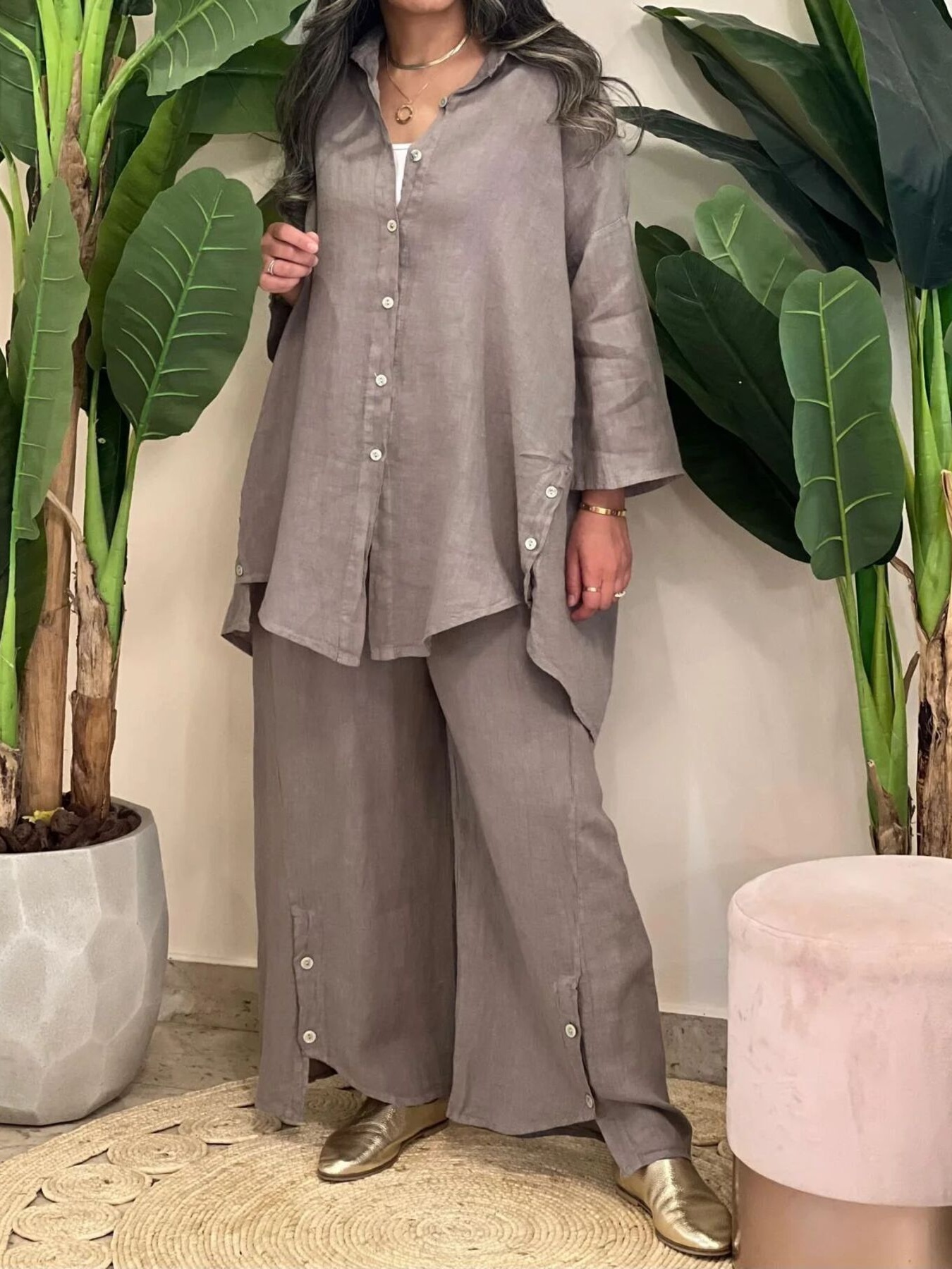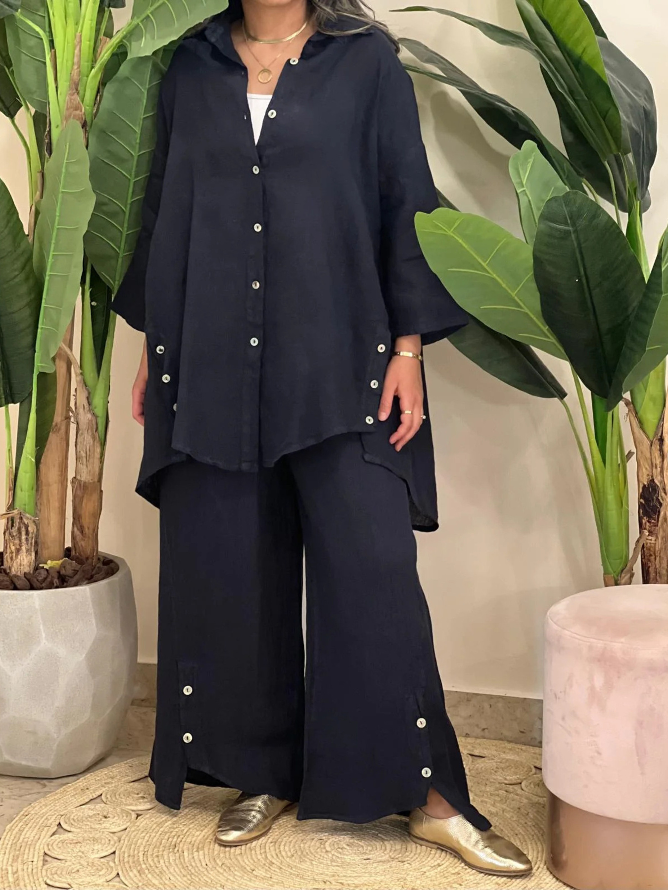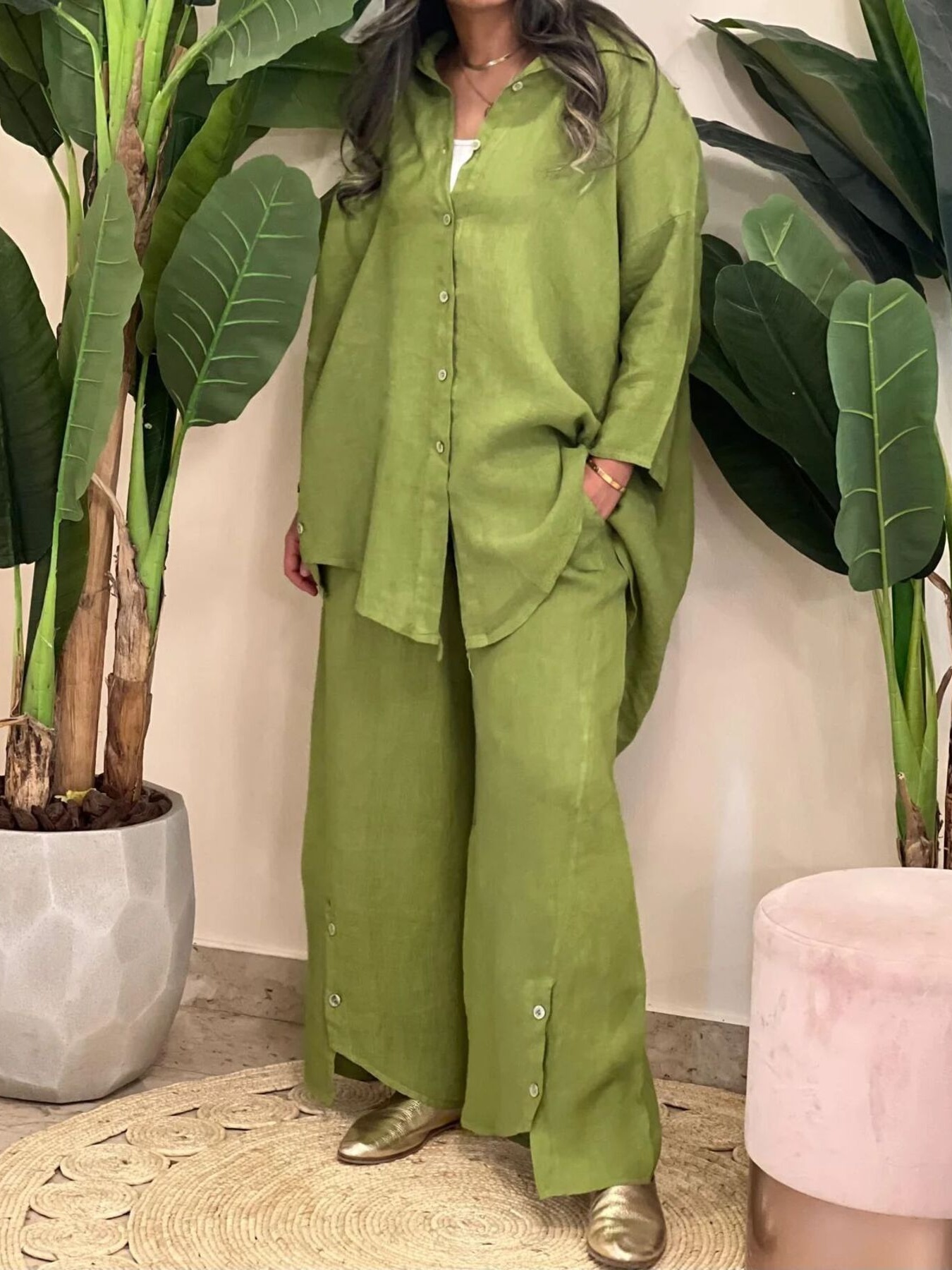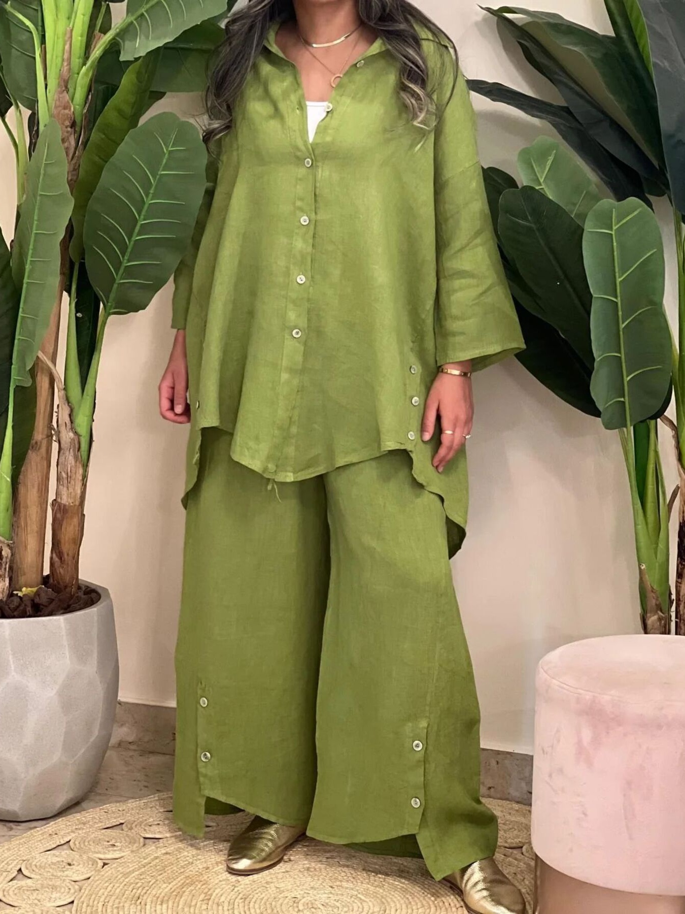 Full Size Button-Down Shirt And Wide-Leg Pants Set Plus Size