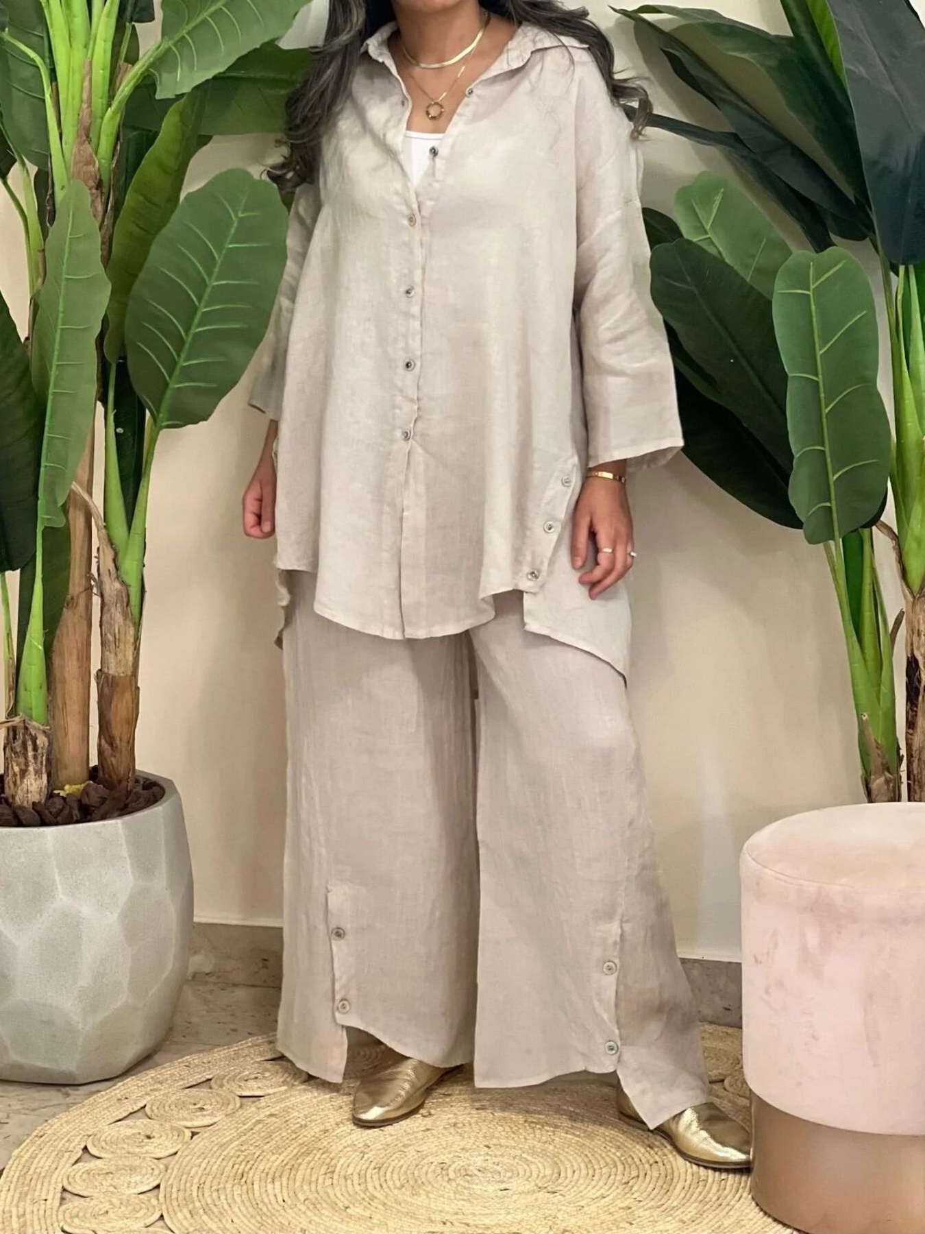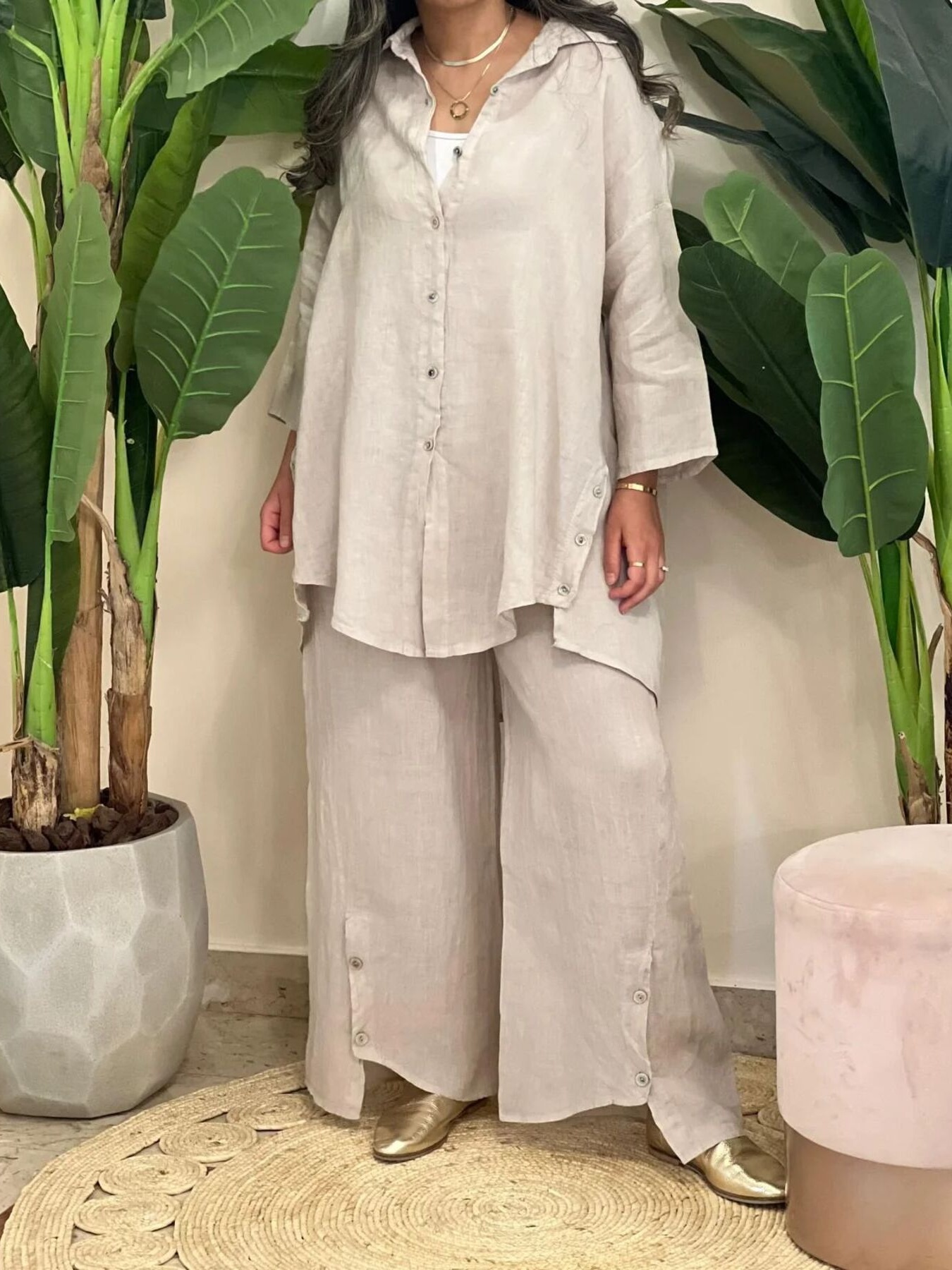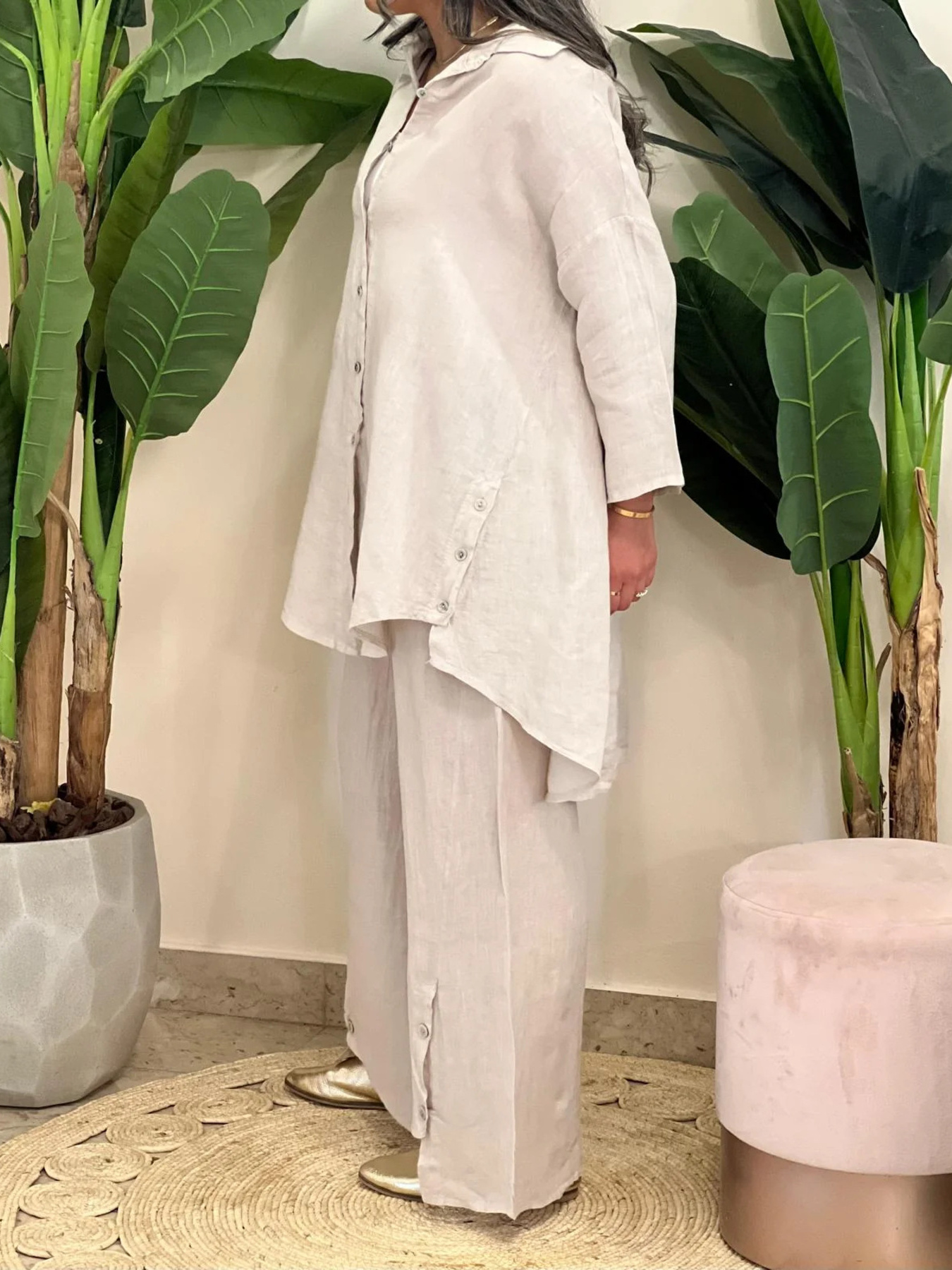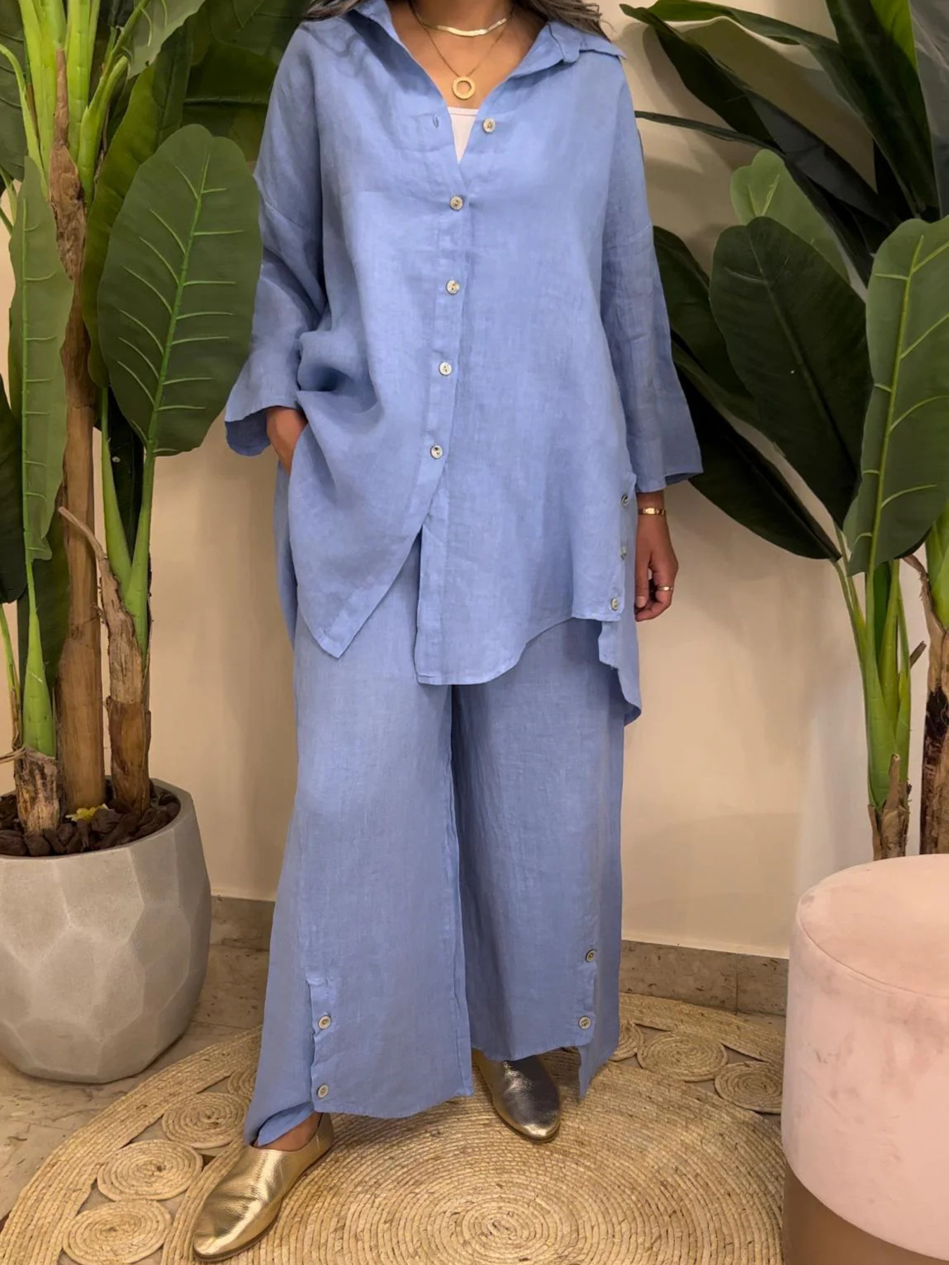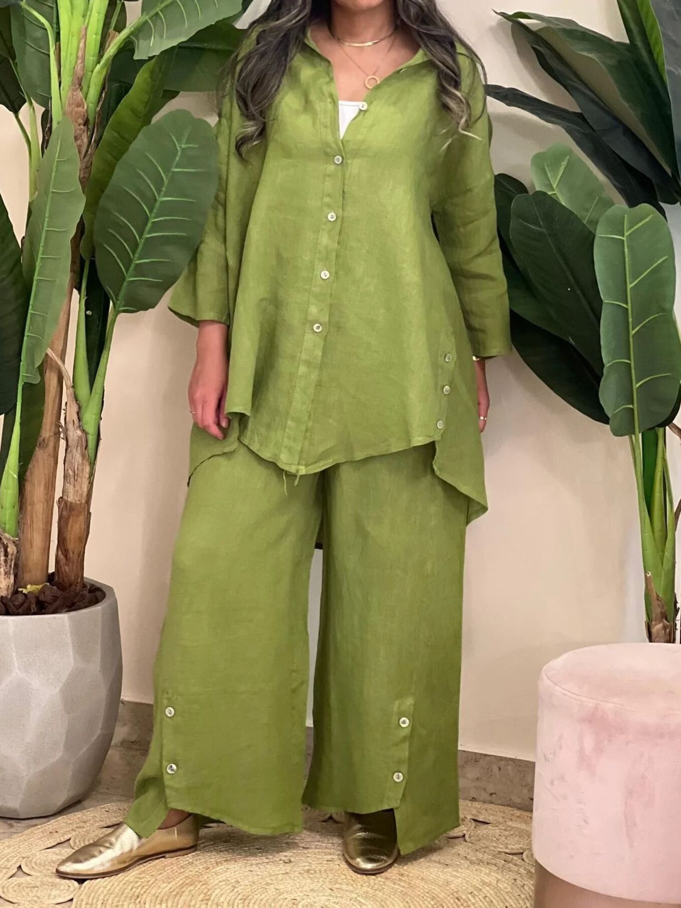 Full Size Button-Down Shirt And Wide-Leg Pants Set Plus Size