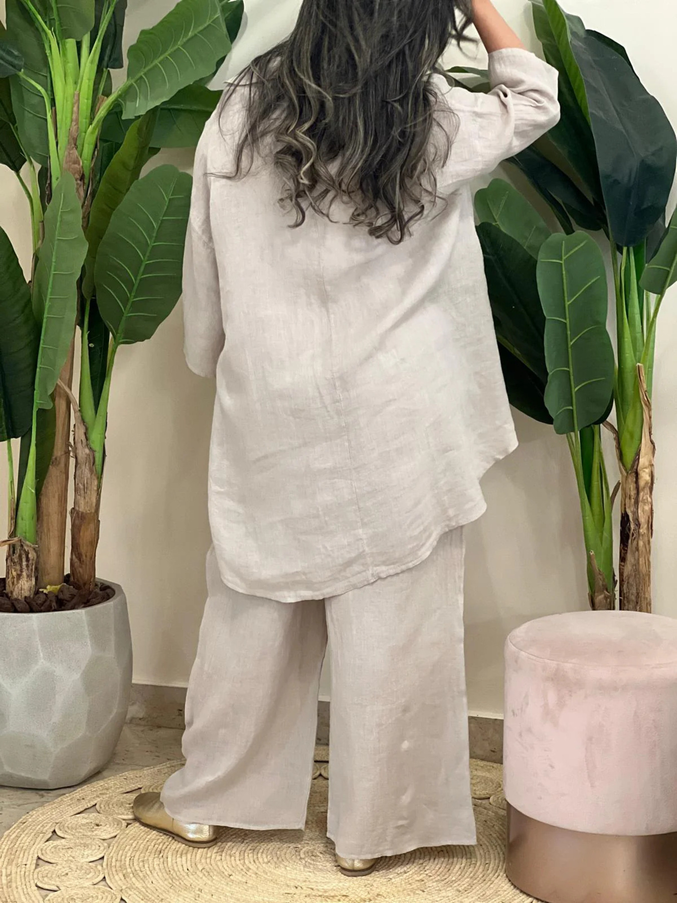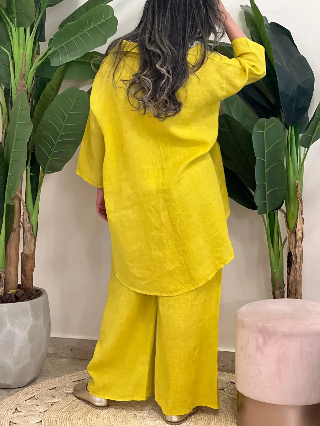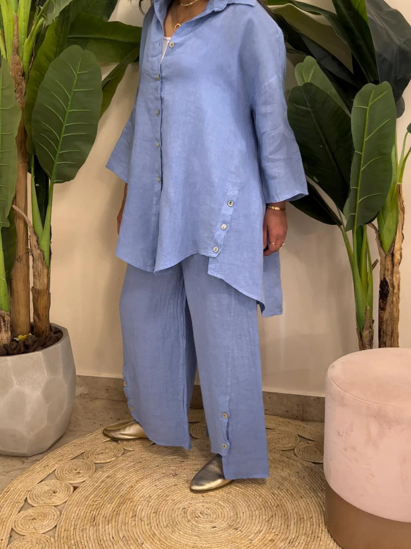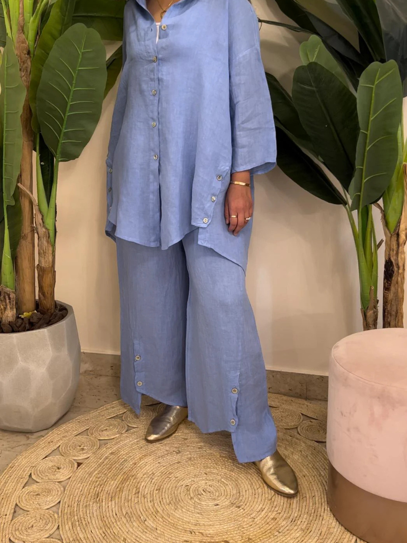 Full Size Button-Down Shirt And Wide-Leg Pants Set Plus Size