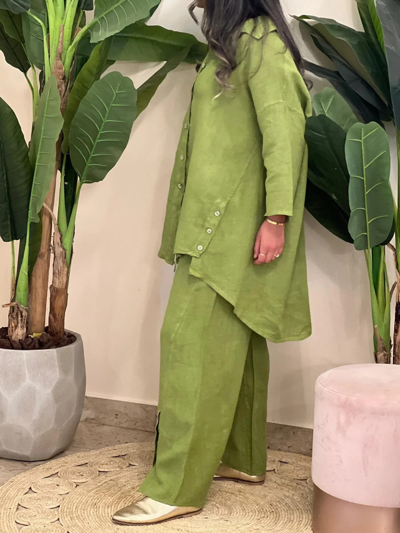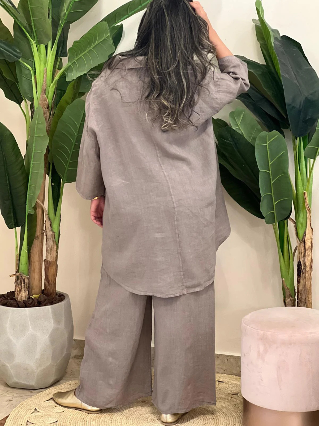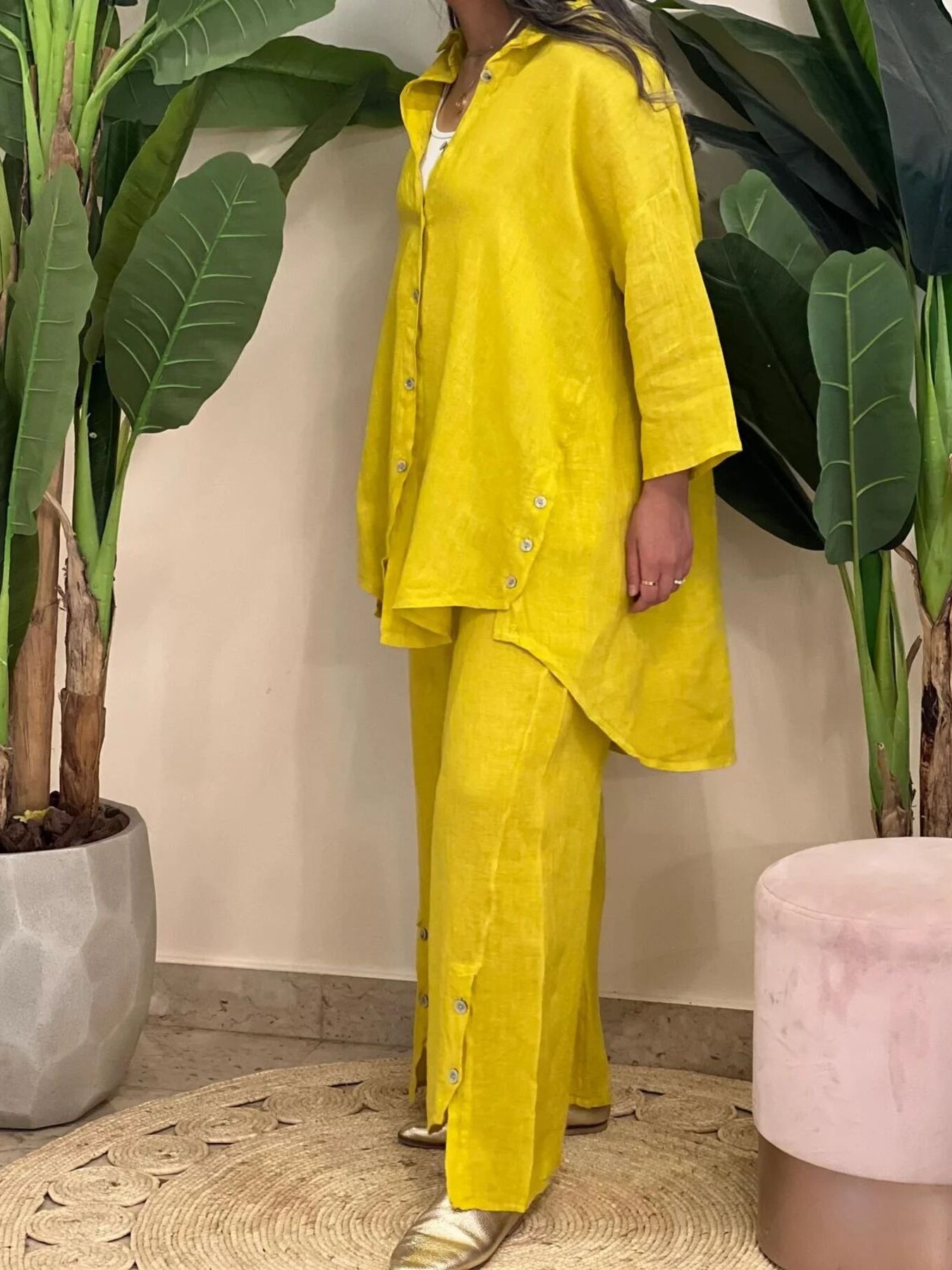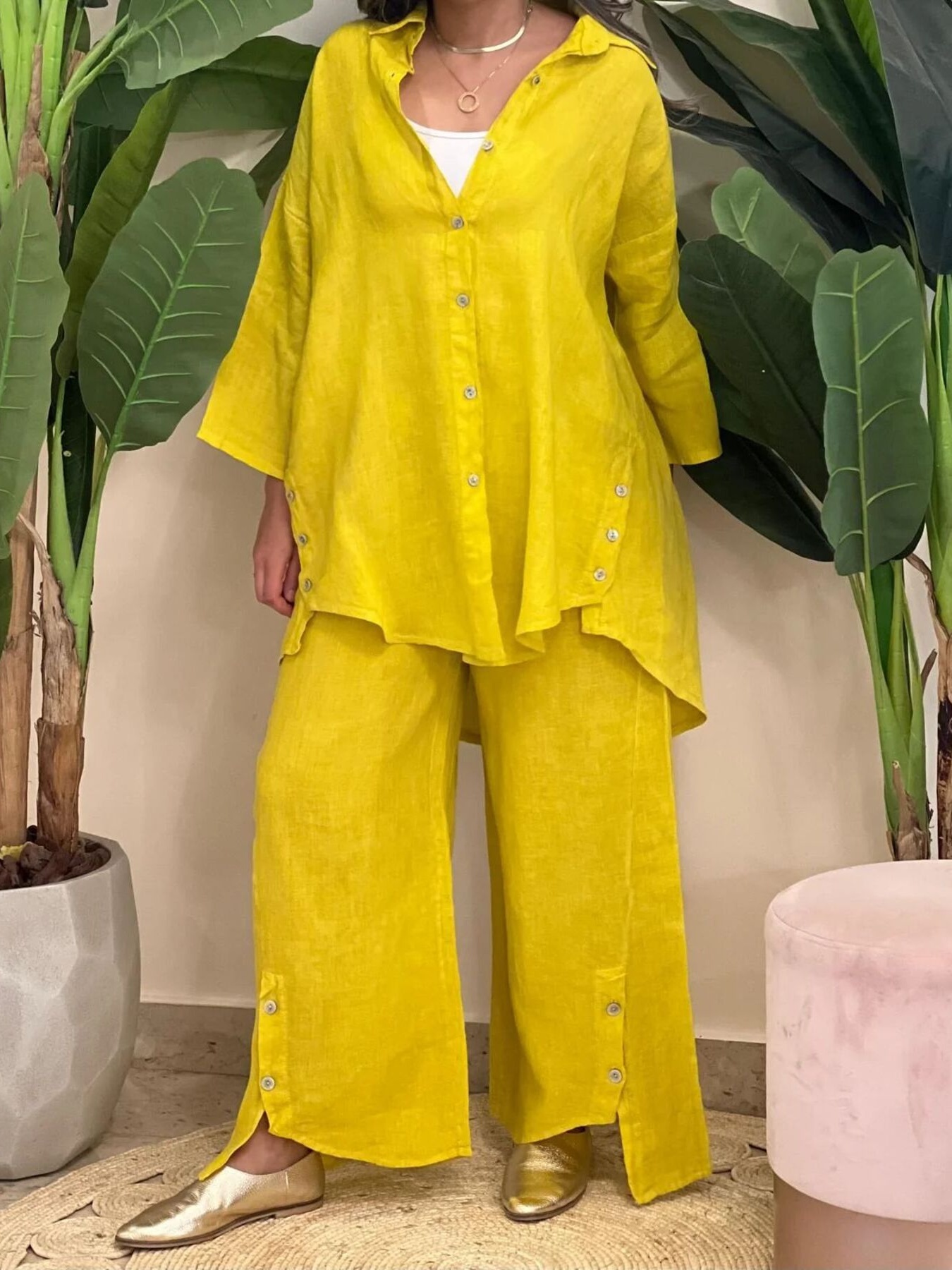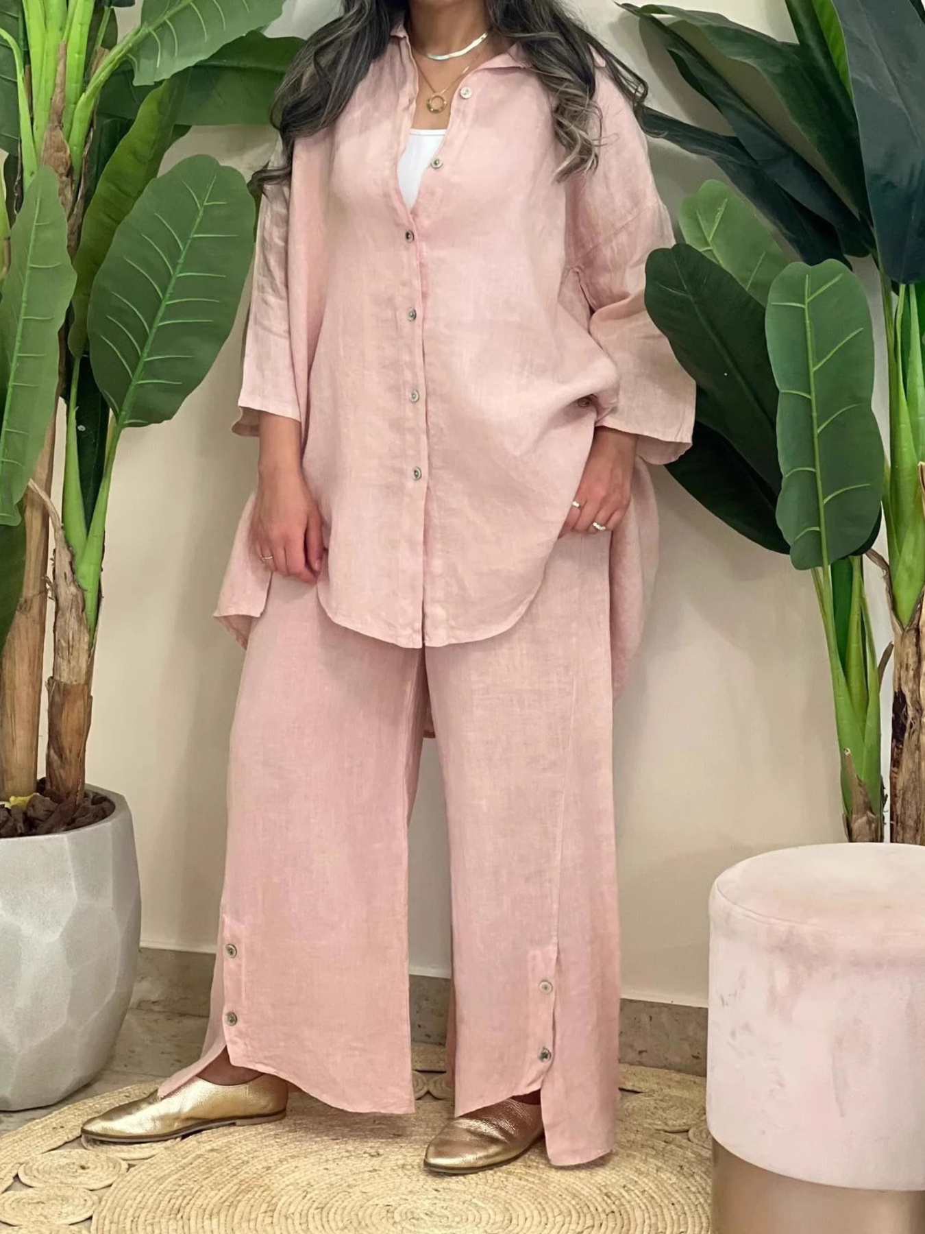 Full Size Button-Down Shirt And Wide-Leg Pants Set Plus Size