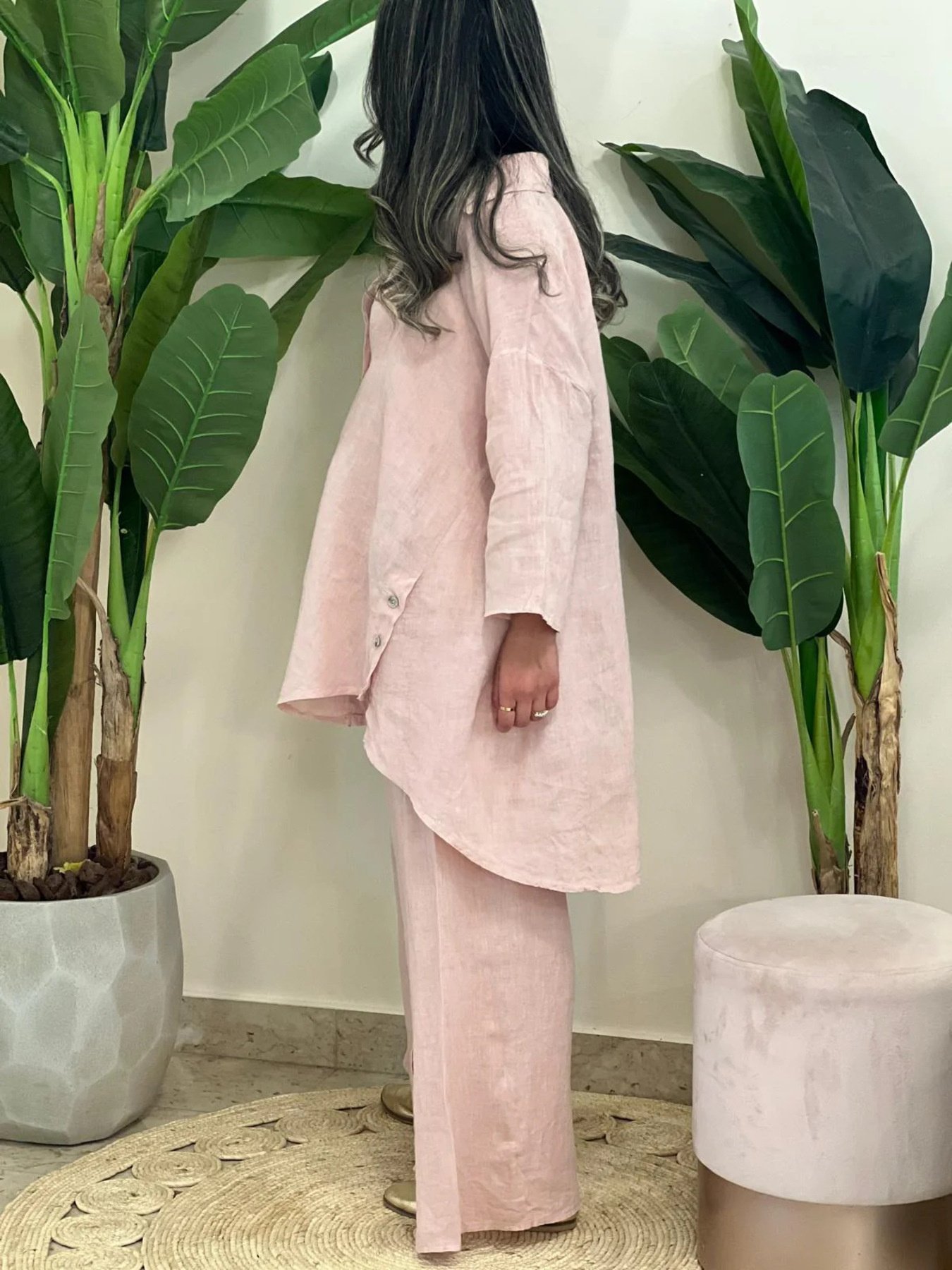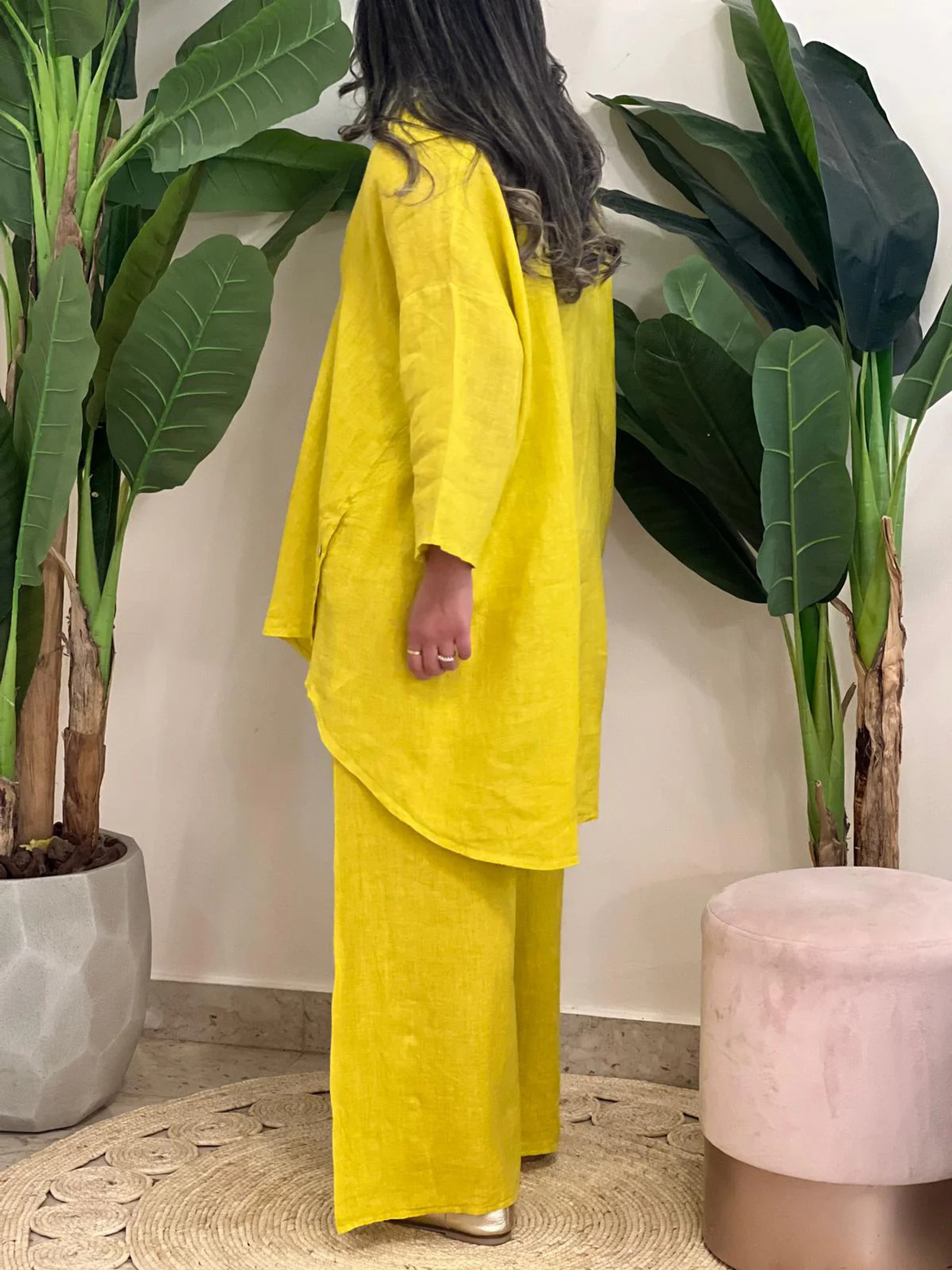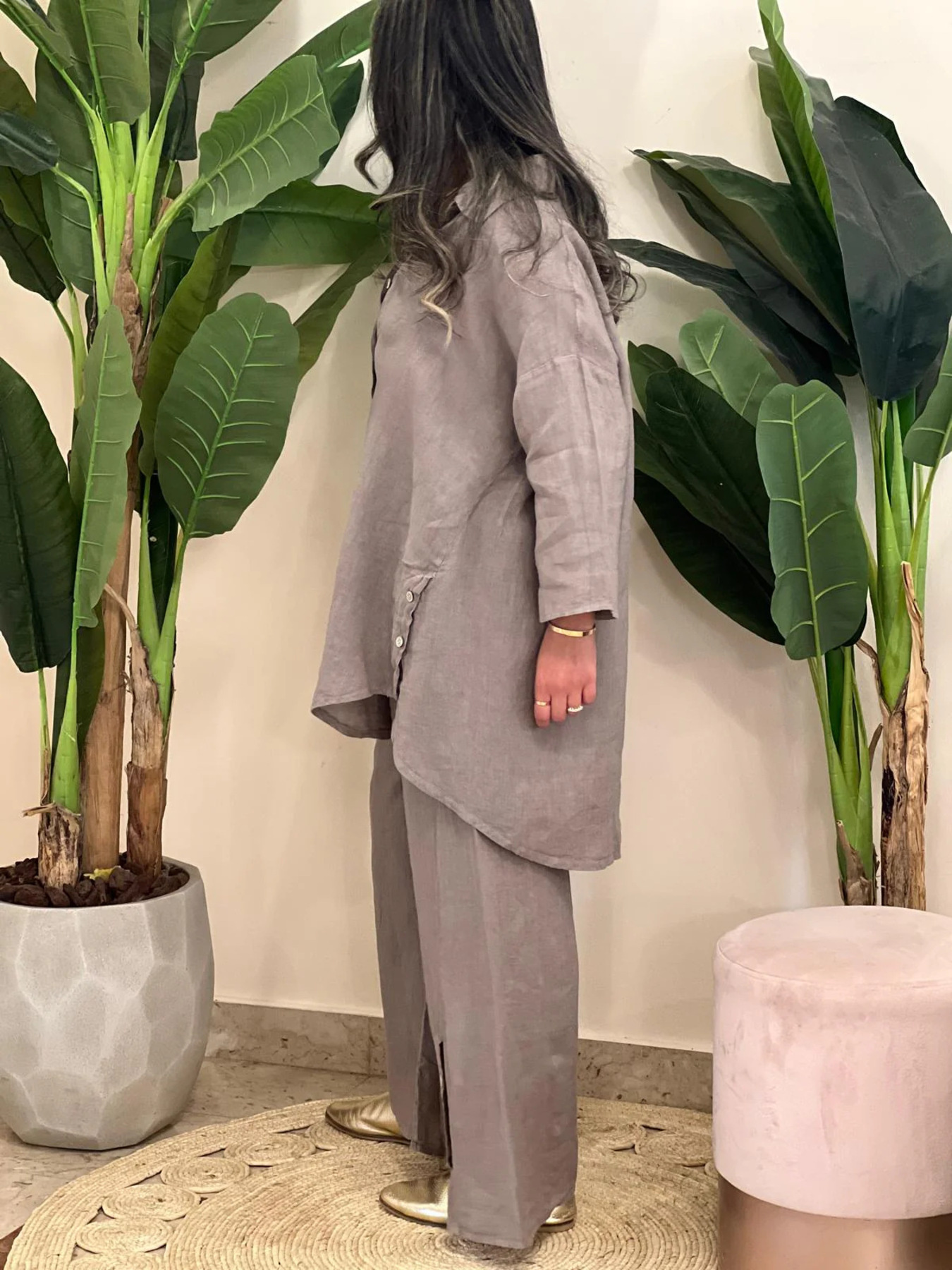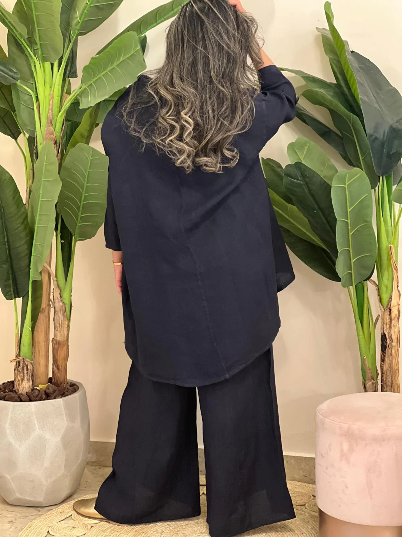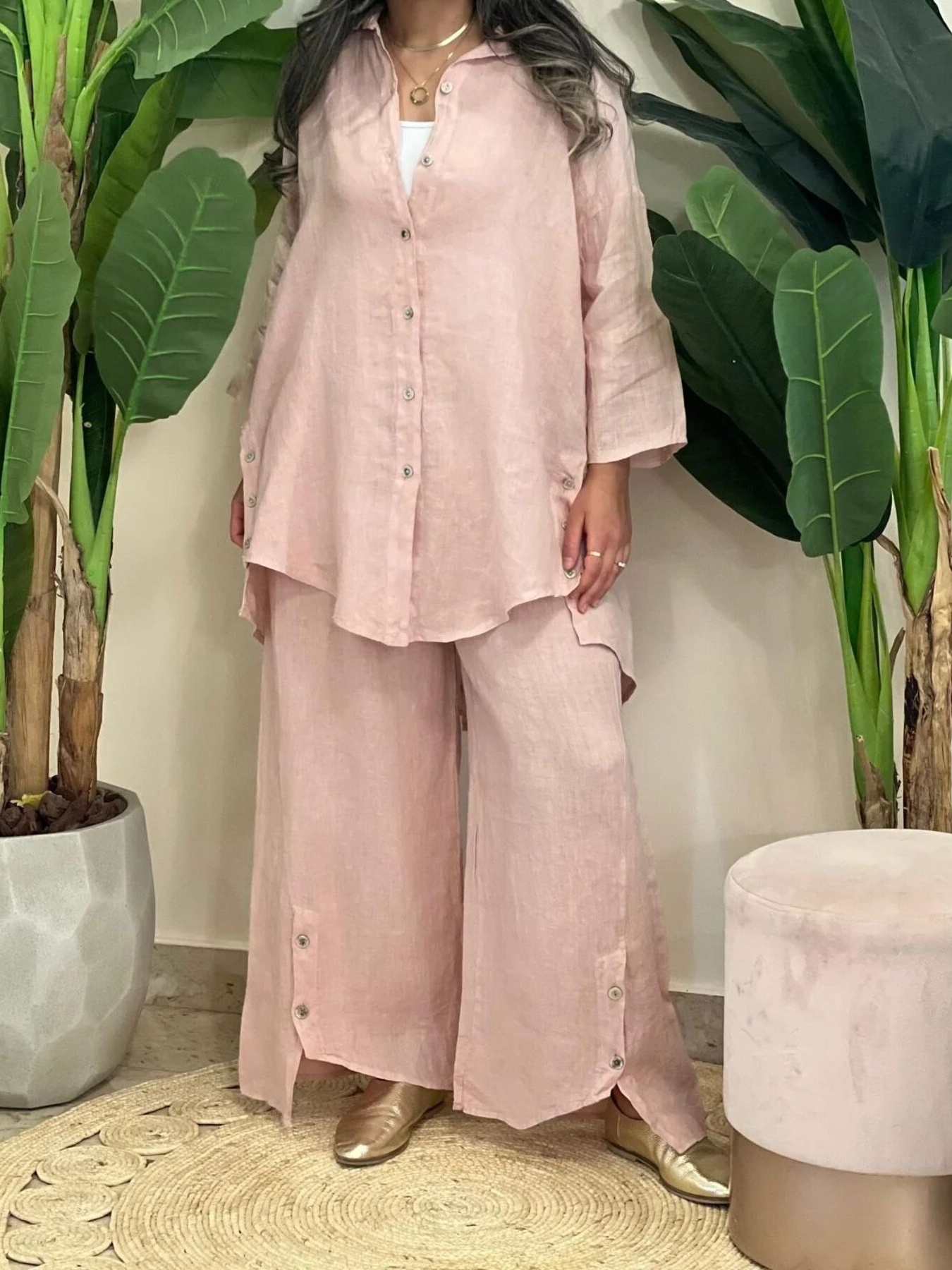 Full Size Button-Down Shirt And Wide-Leg Pants Set Plus Size