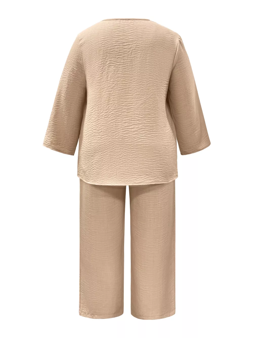 Plus Size V-Neck Long Sleeve Top And Pants Set