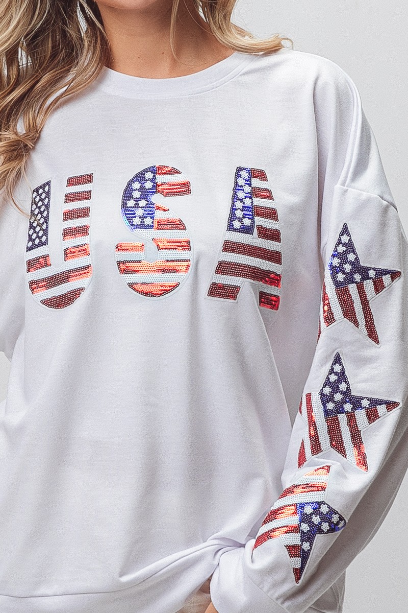 Bibi American Flag Usa And Star Sequin Sweatshirt