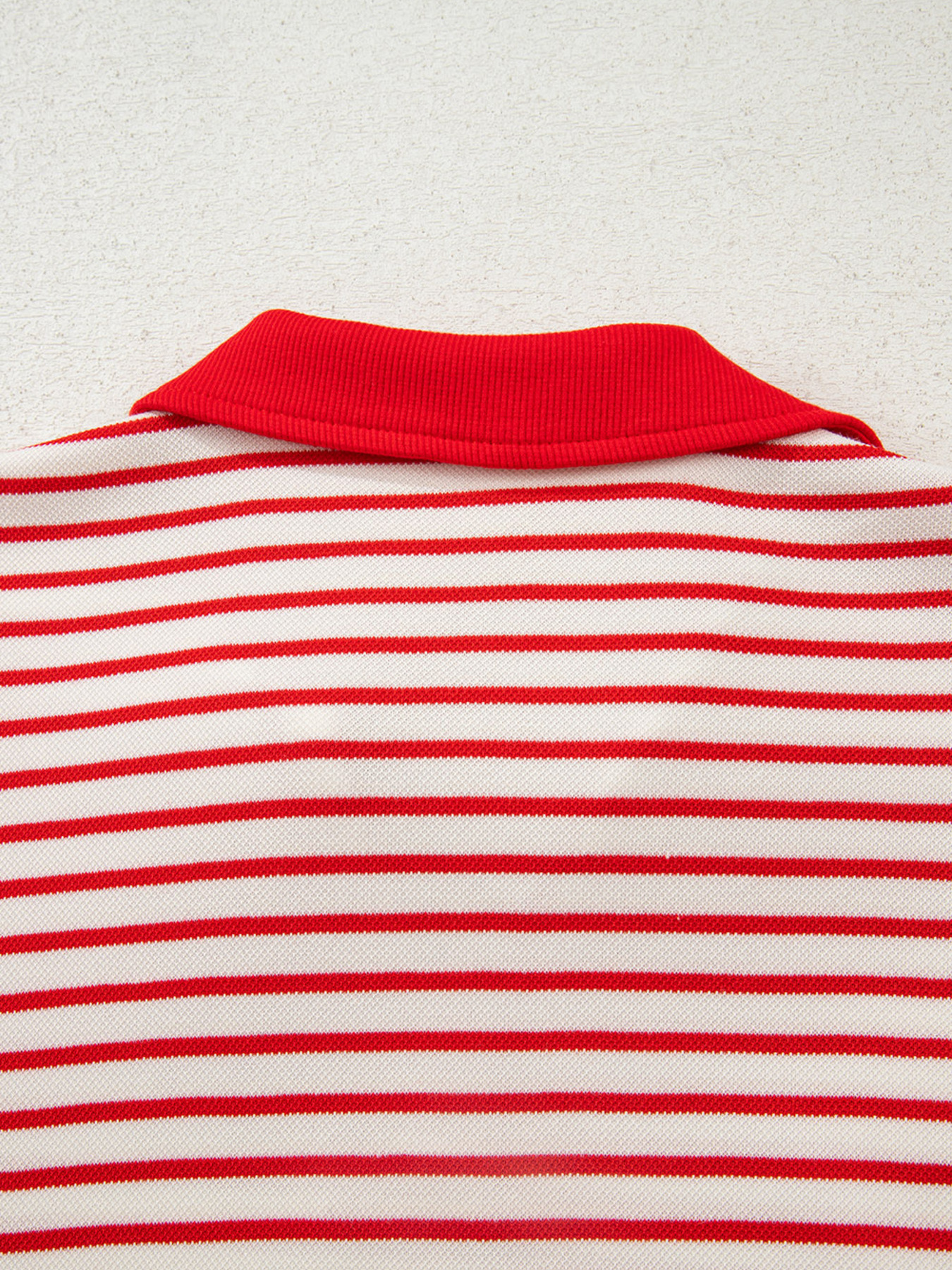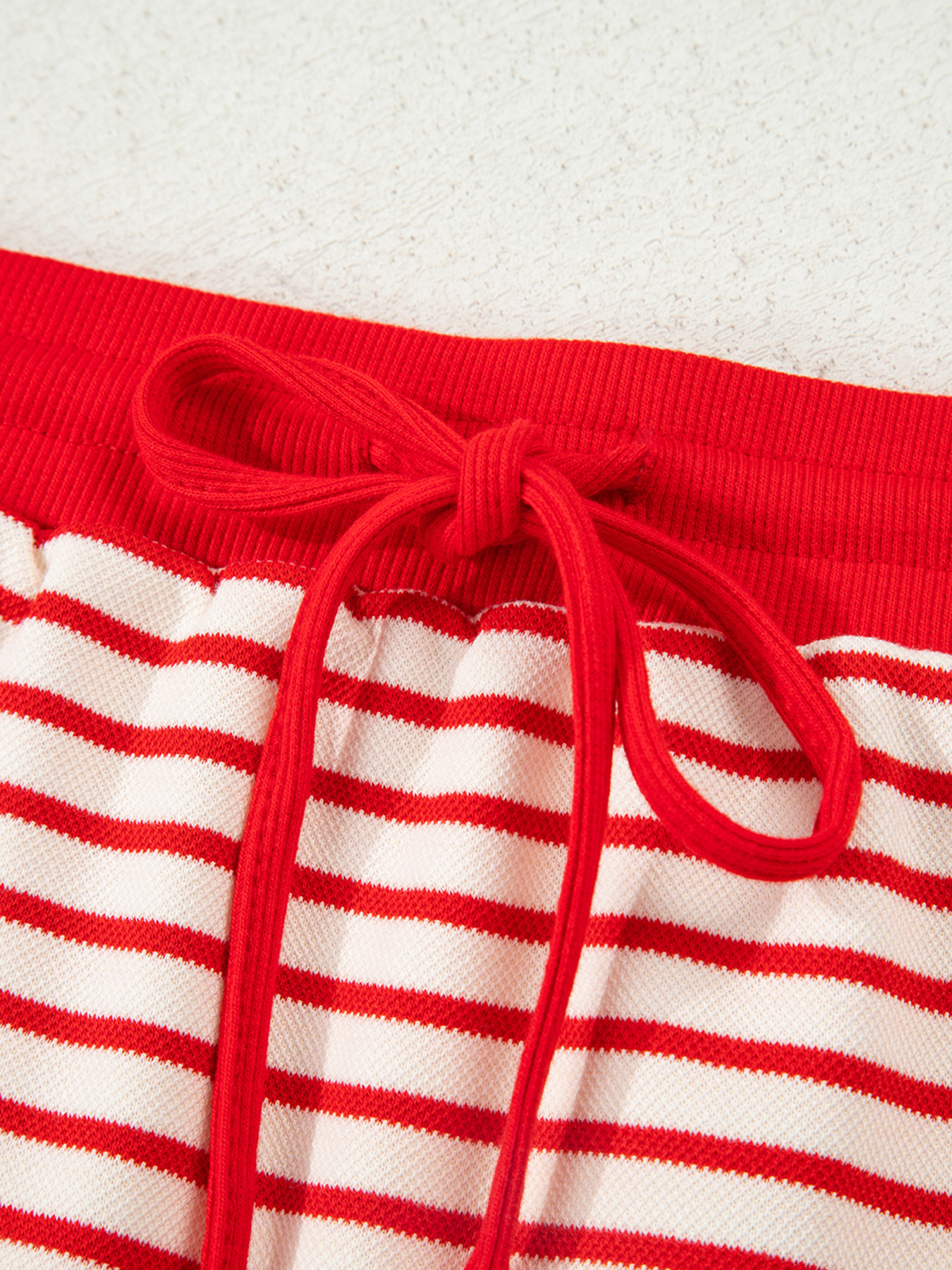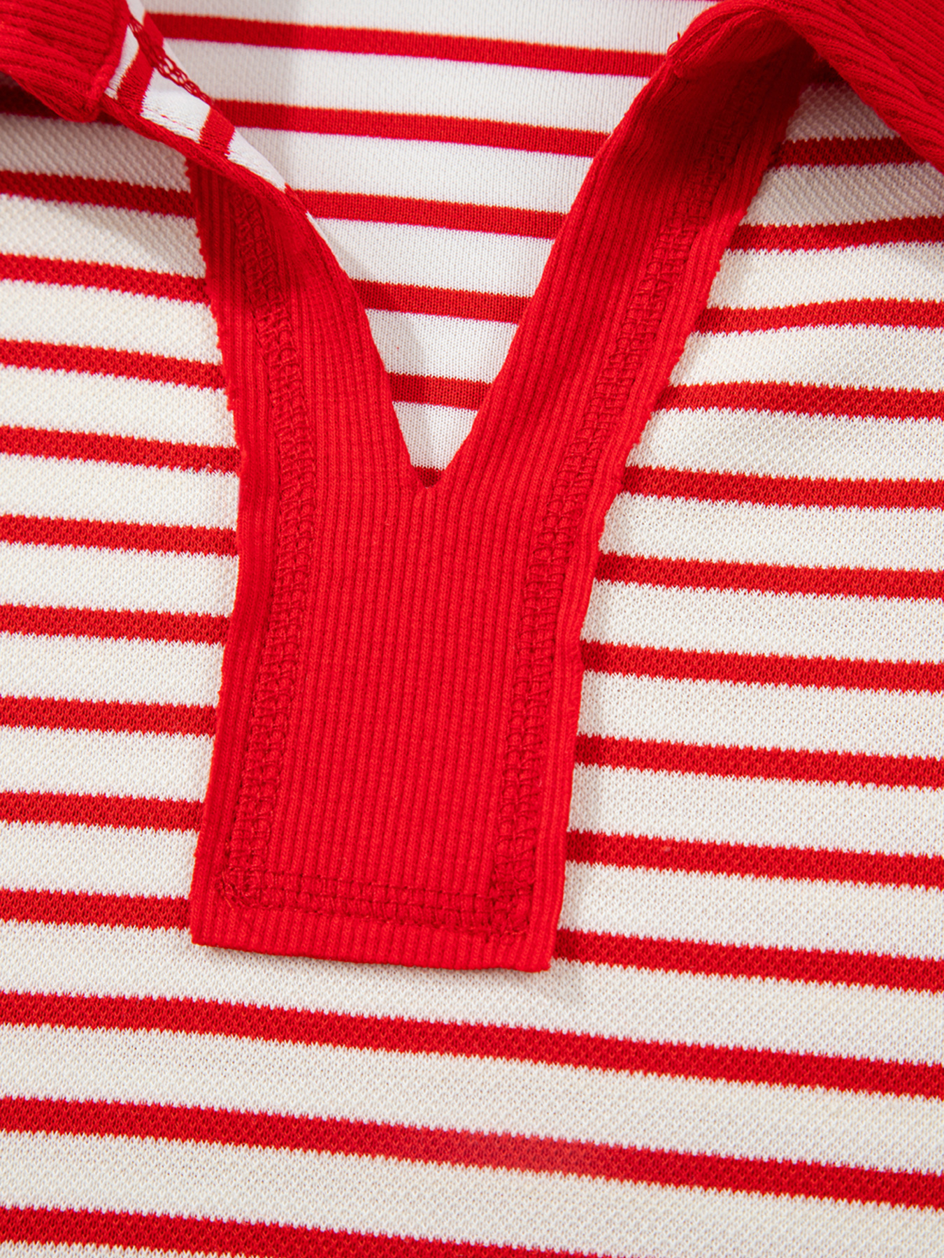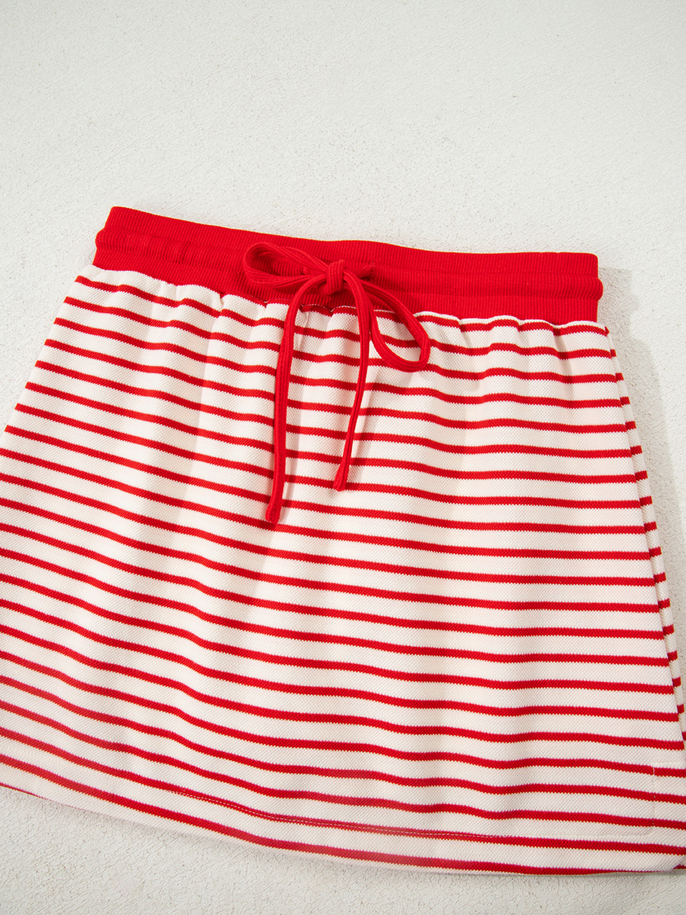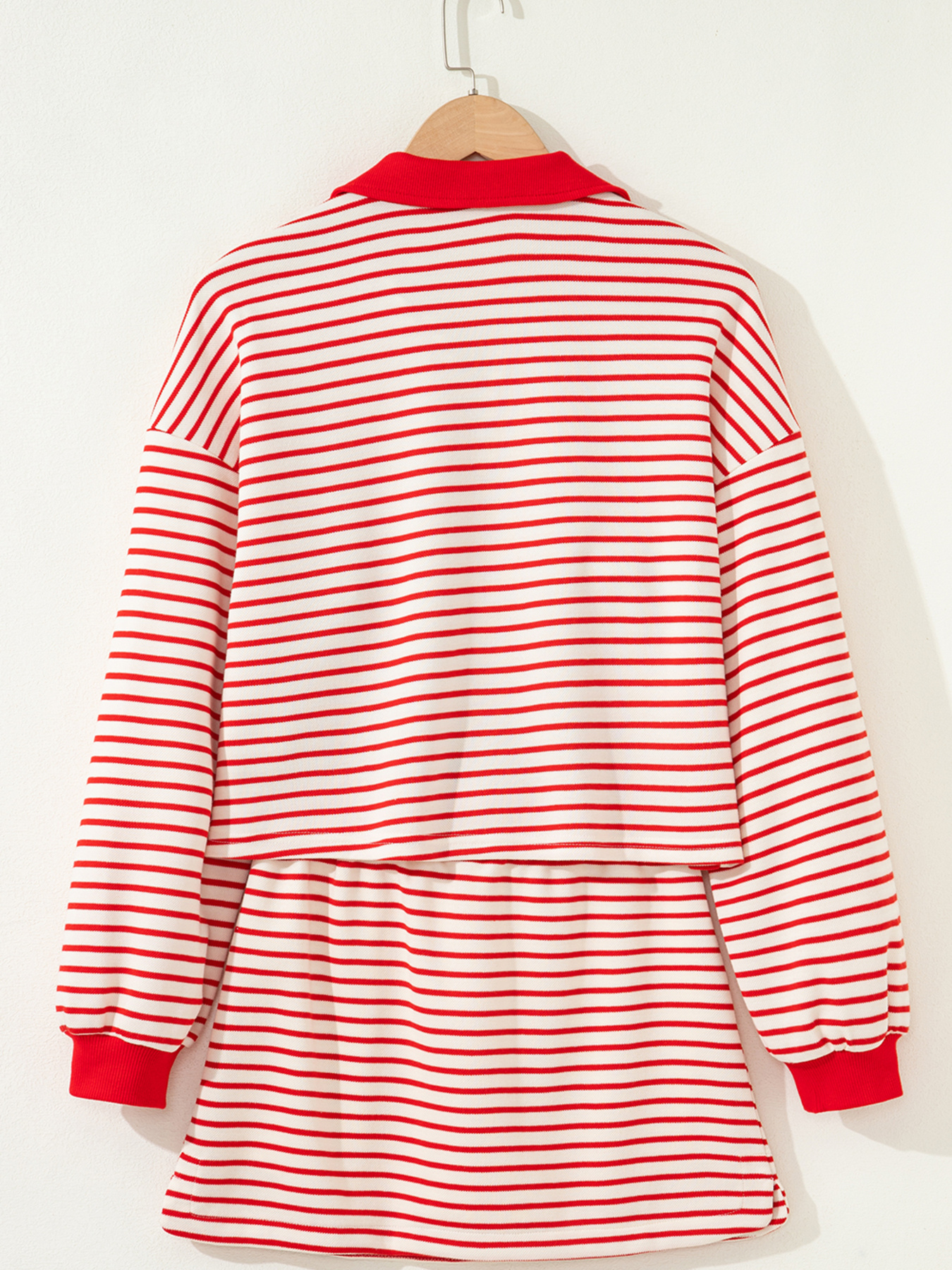 Stripe Collared V Neck Drop Shoulder Pullover And Skort 2pcs Outfit