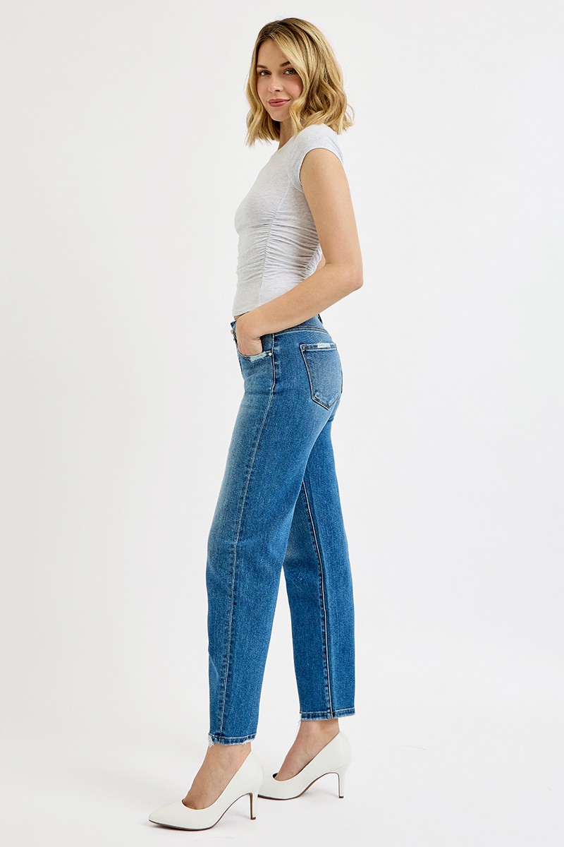Risen Tummy Control High Rise Ankle Slim Barrel Jeans
