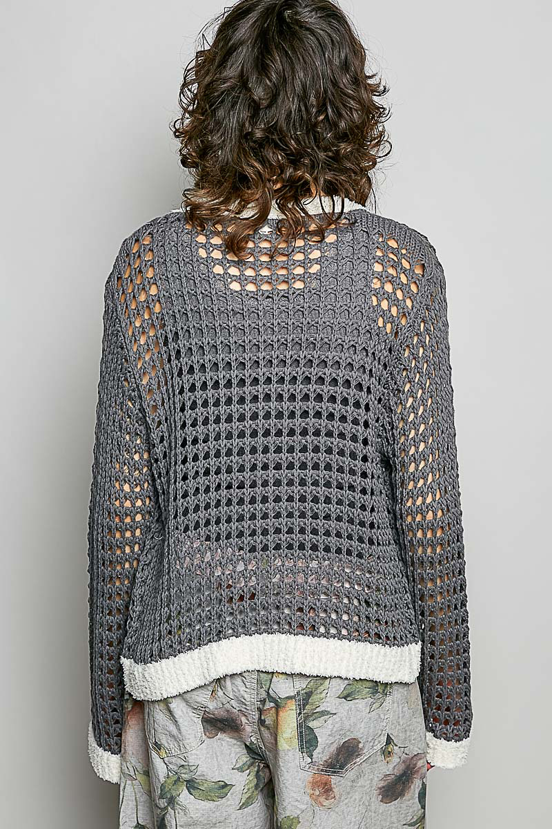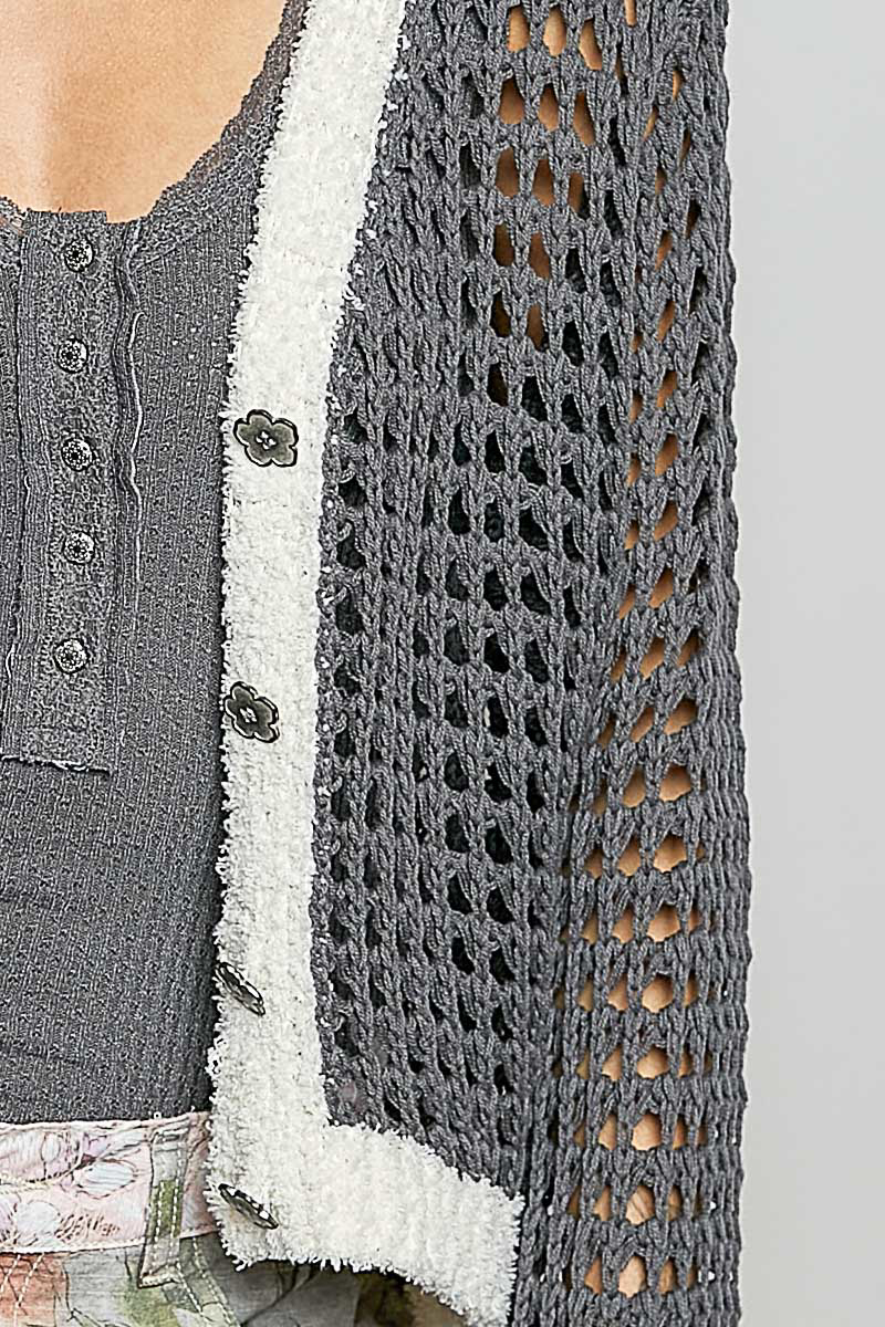 Pol Openwork Contrast Cardigan With Floral Metal Button