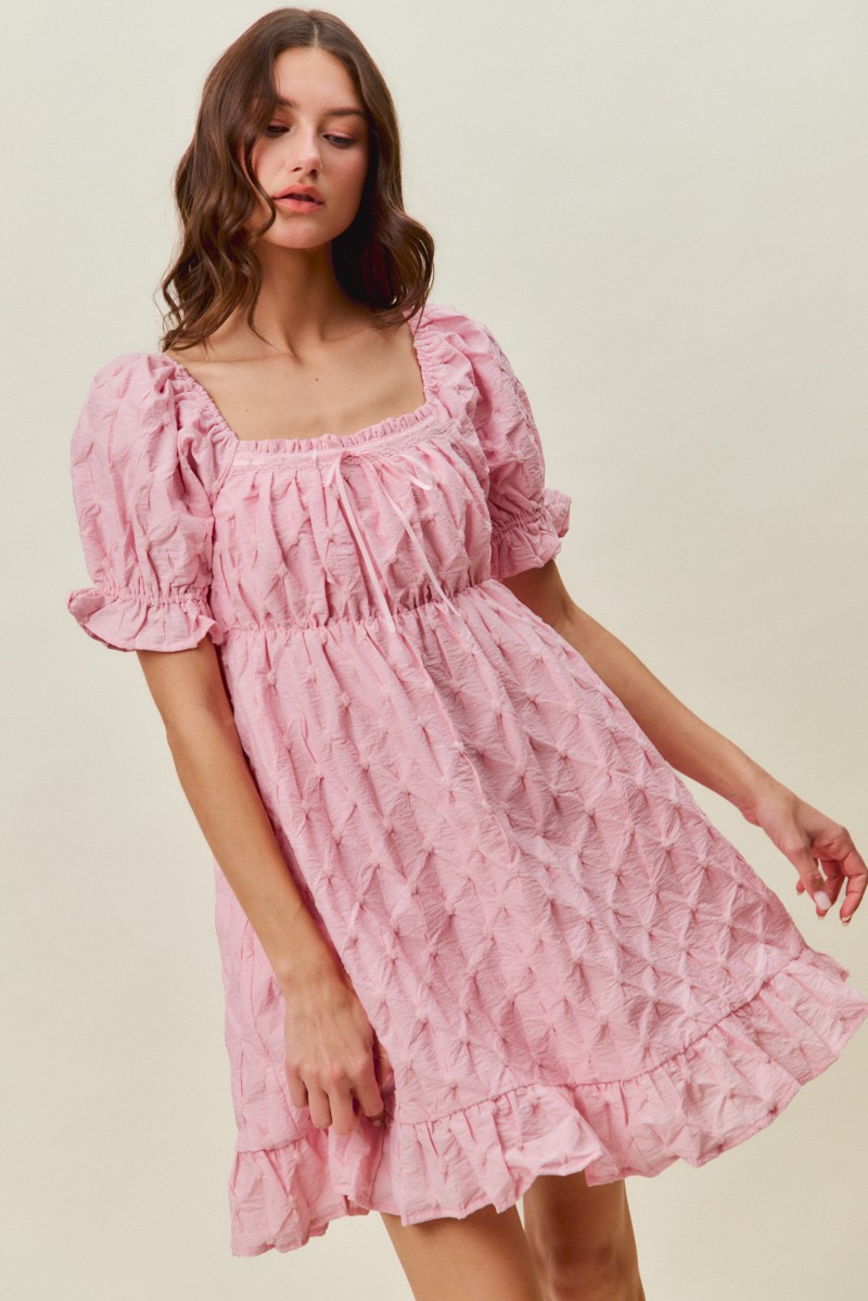 So Me Texture Woven Ruching On Bust Mini Dress