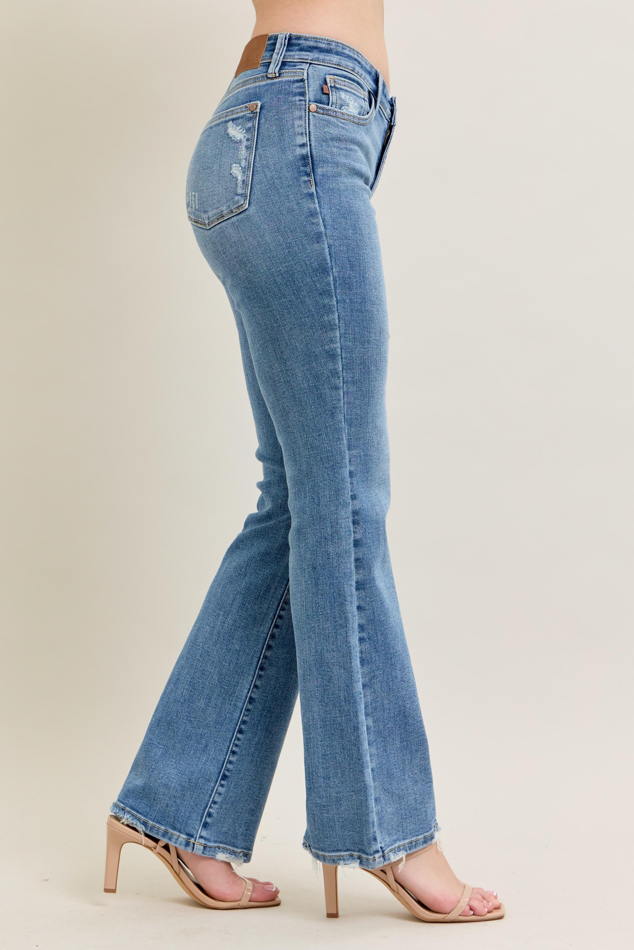 Judy Blue Full Size Mid Rise Wash Destroy Hem Bootcut Jeans Plus Size