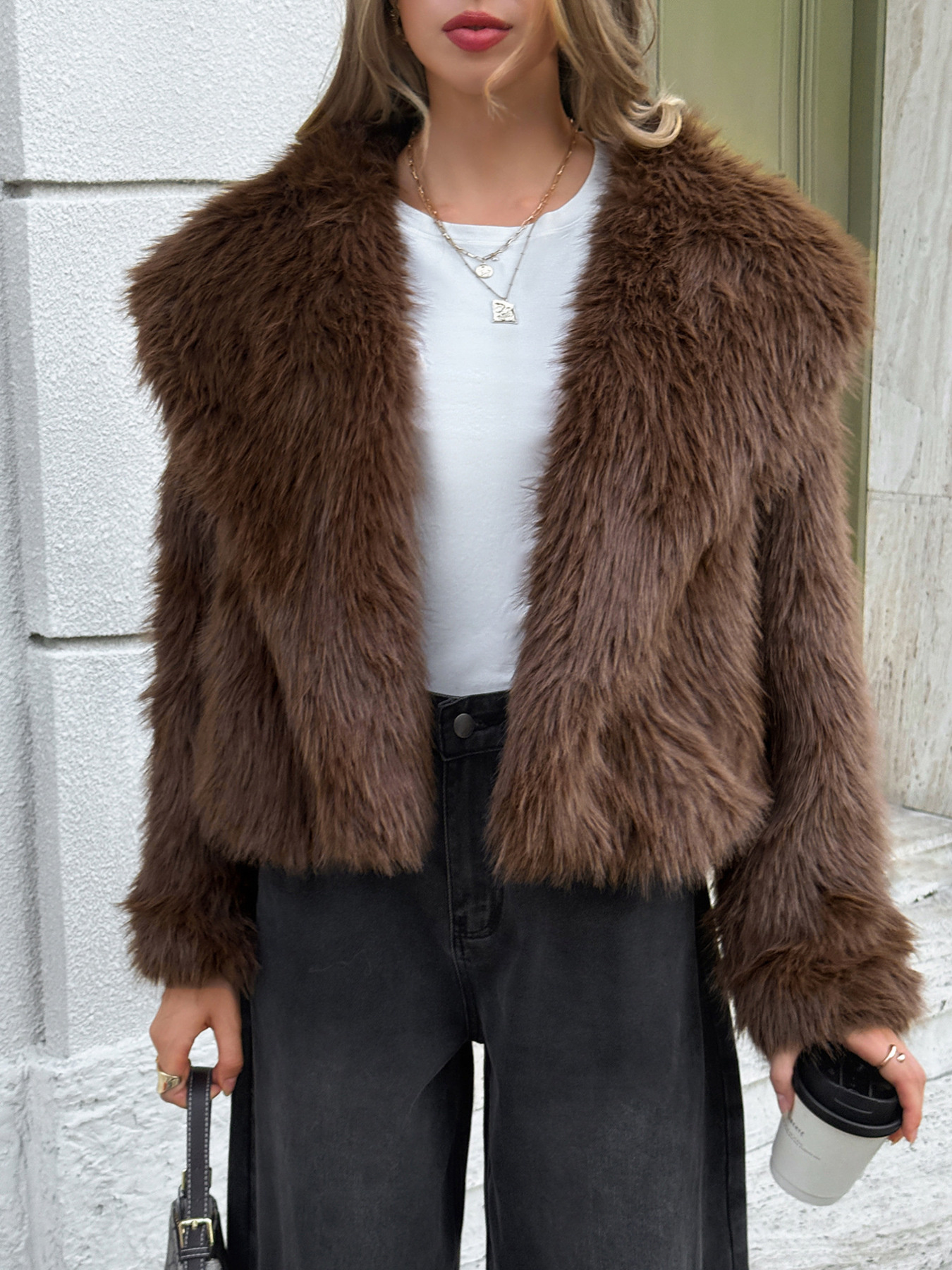 Open Front Faux Fur Cropped Jacket