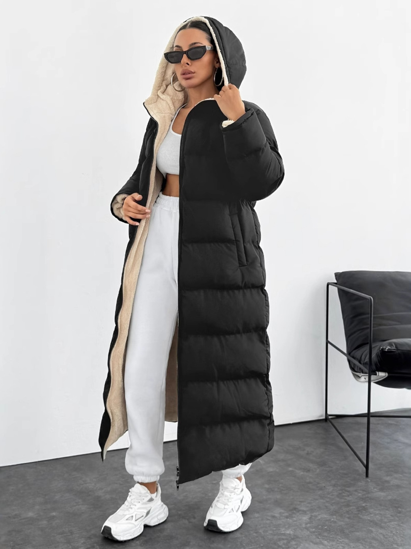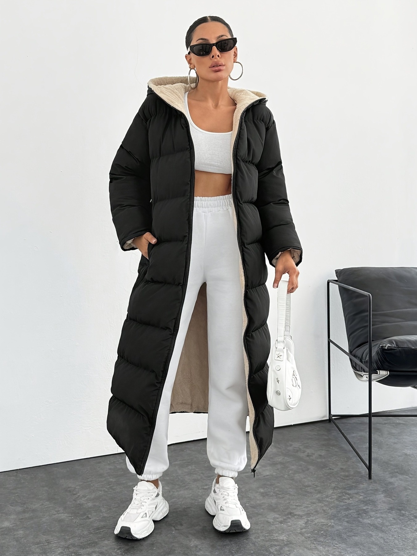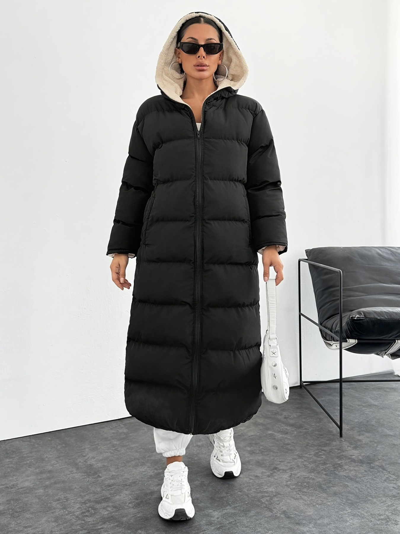 Quilted Hooded Longline Puffer Coat